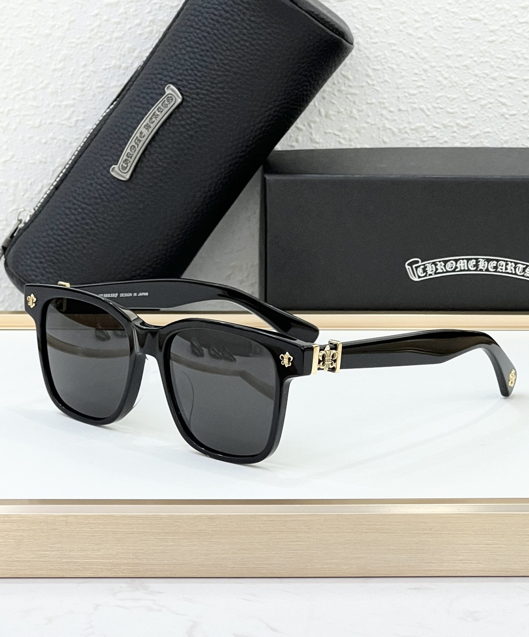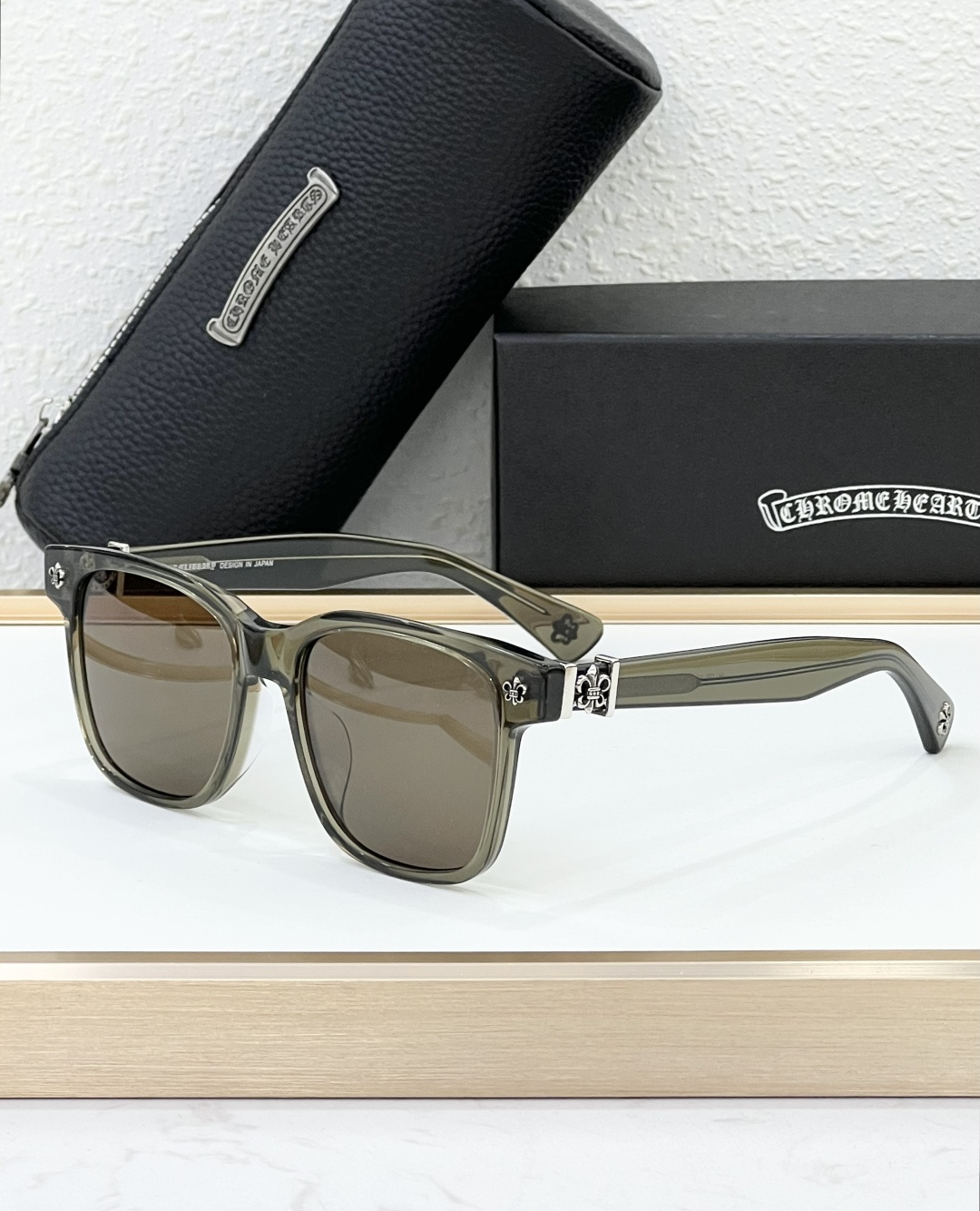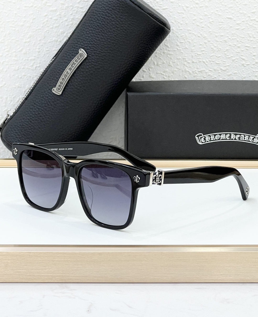 这款太阳眼镜是AAAAA 1:1 质量 (非常棒). 使用了和原版一模一样的材料. 商标部分也保持了和克罗心/Chrome Hearts一样. 图片拍摄是实物太阳眼镜拍摄, 您所收到的实物保证和我们图片一模一样.