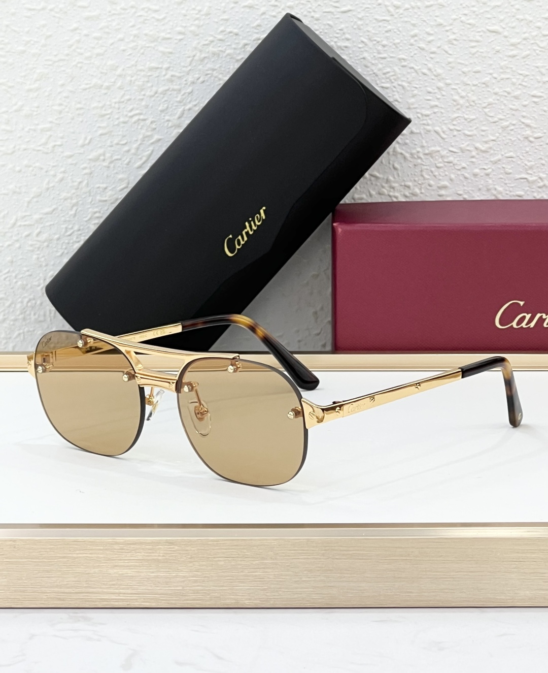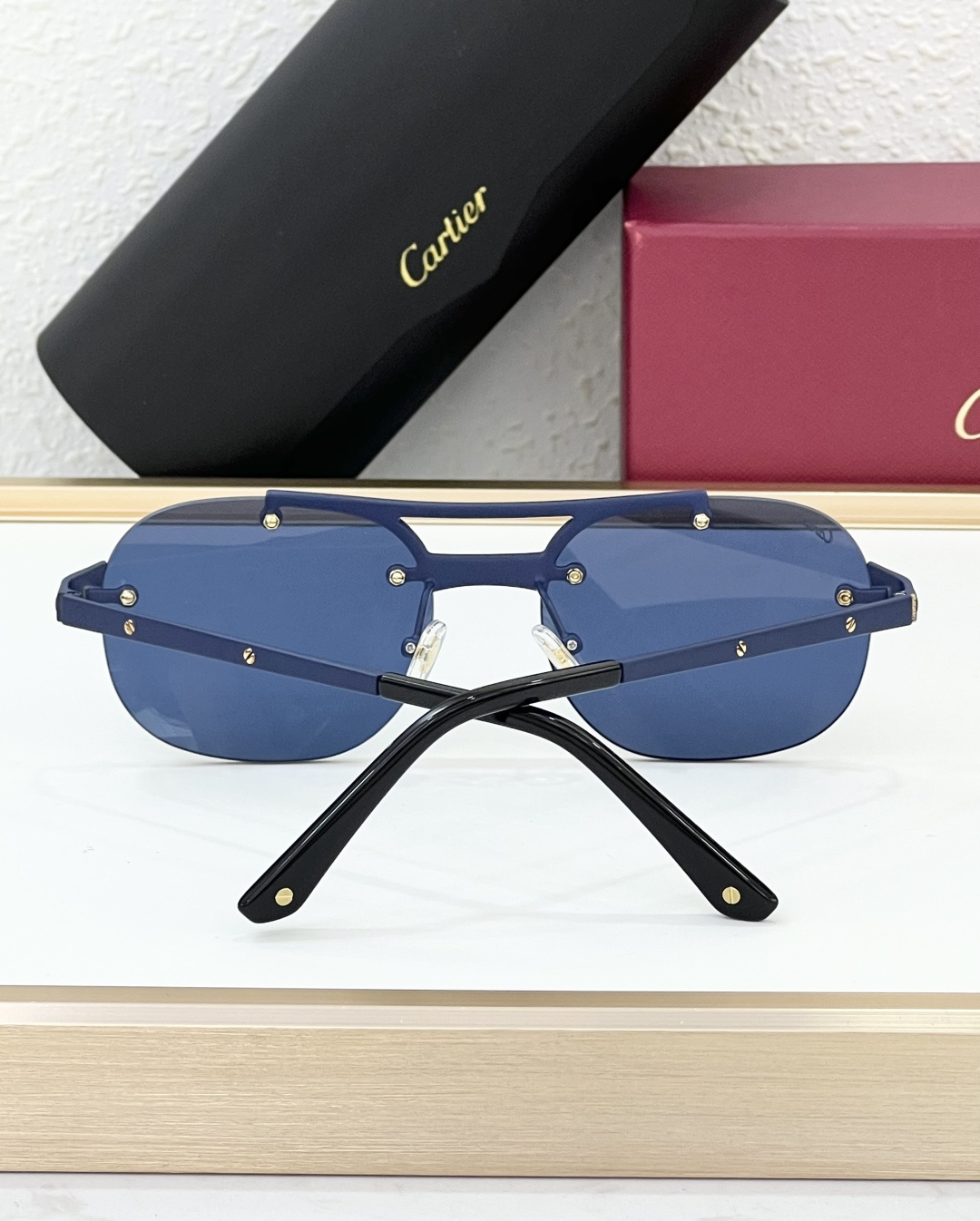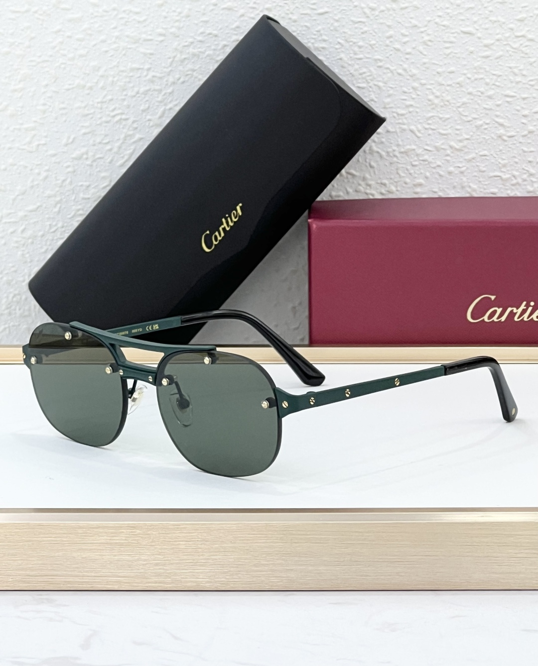 这款太阳眼镜是AAAAA 1:1 质量 (非常棒). 使用了和原版一模一样的材料. 商标部分也保持了和卡地亚/Cartier一样. 图片拍摄是实物太阳眼镜拍摄, 您所收到的实物保证和我们图片一模一样.