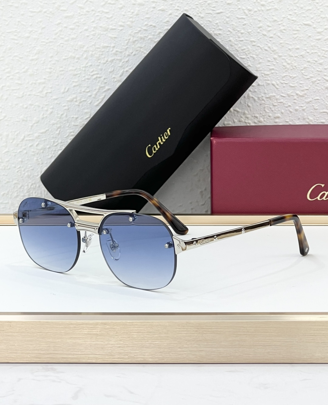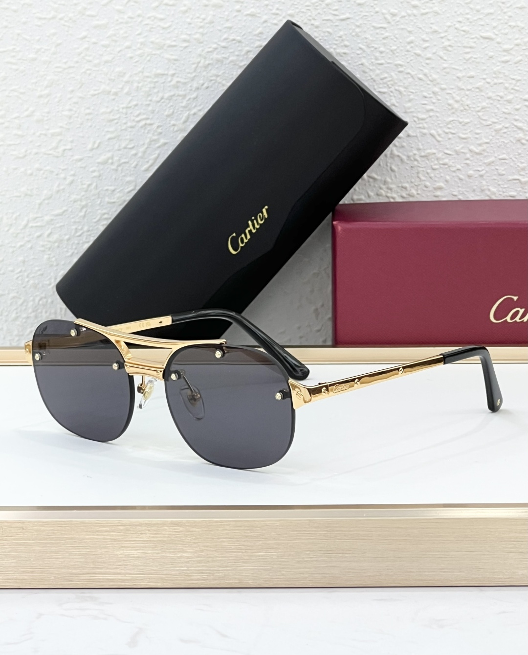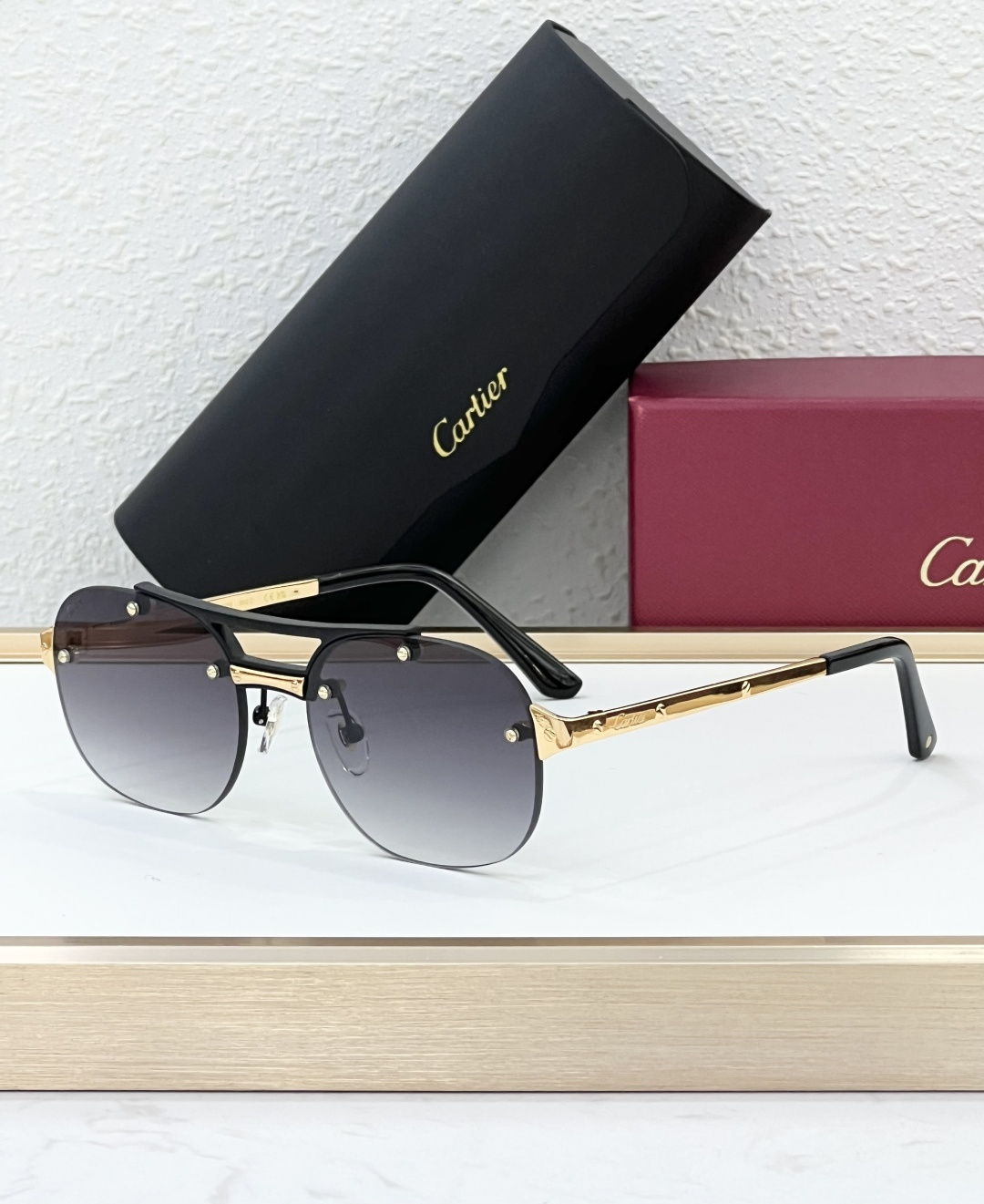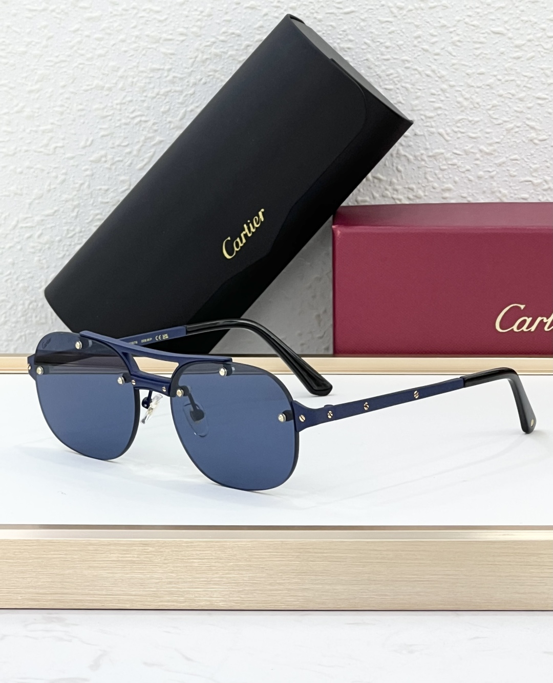 这款太阳眼镜是AAAAA 1:1 质量 (非常棒). 使用了和原版一模一样的材料. 商标部分也保持了和卡地亚/Cartier一样. 图片拍摄是实物太阳眼镜拍摄, 您所收到的实物保证和我们图片一模一样.