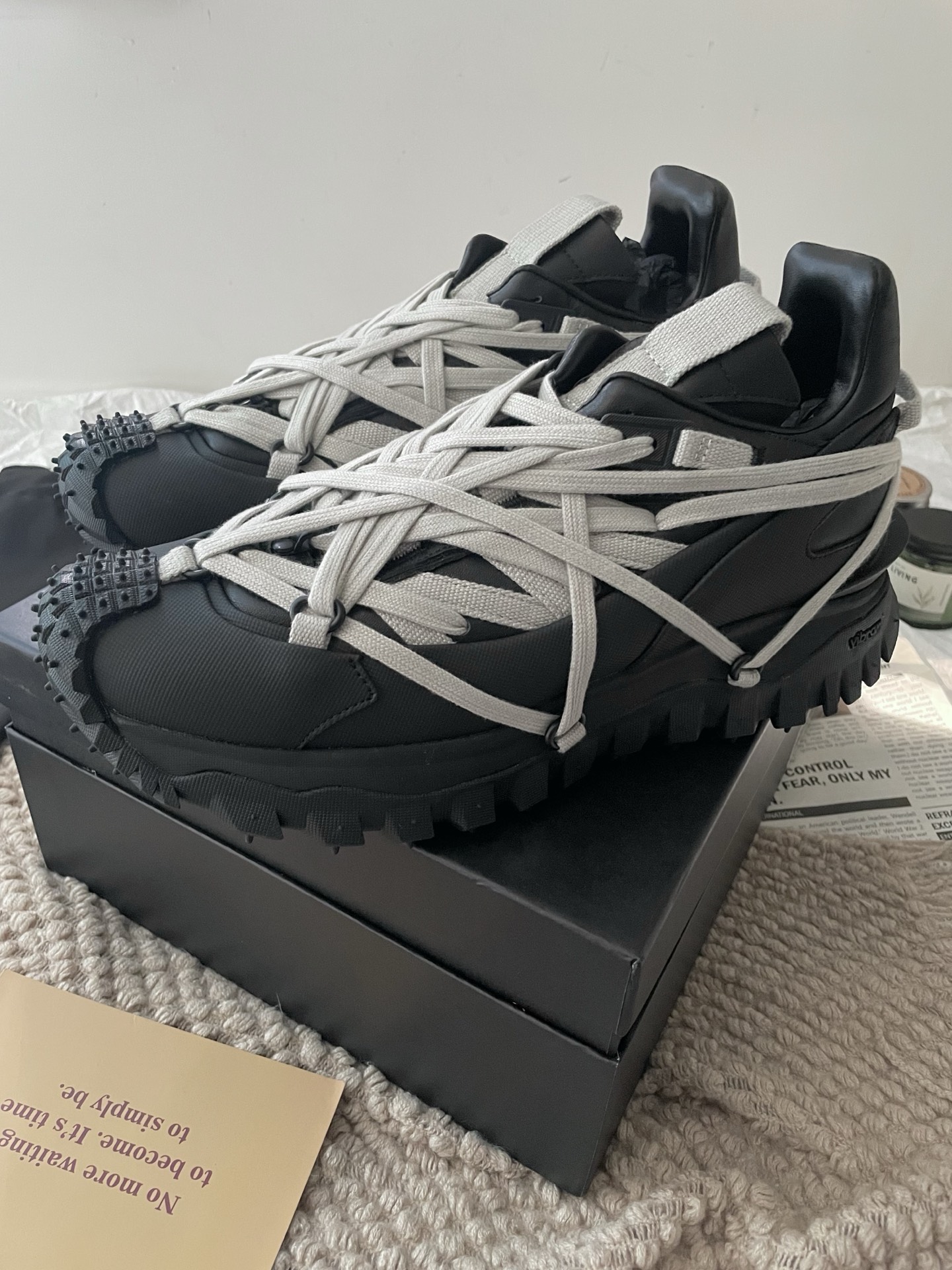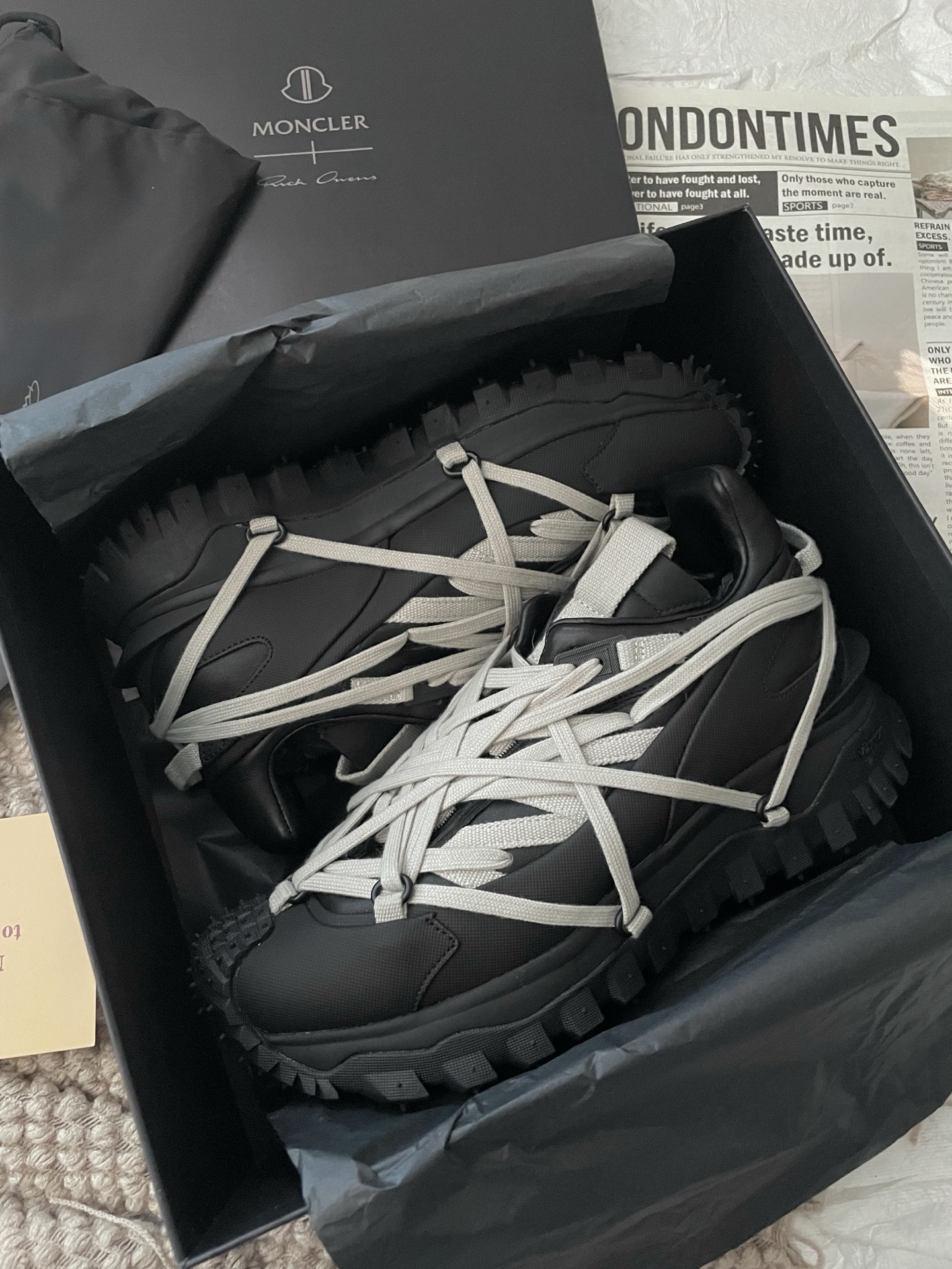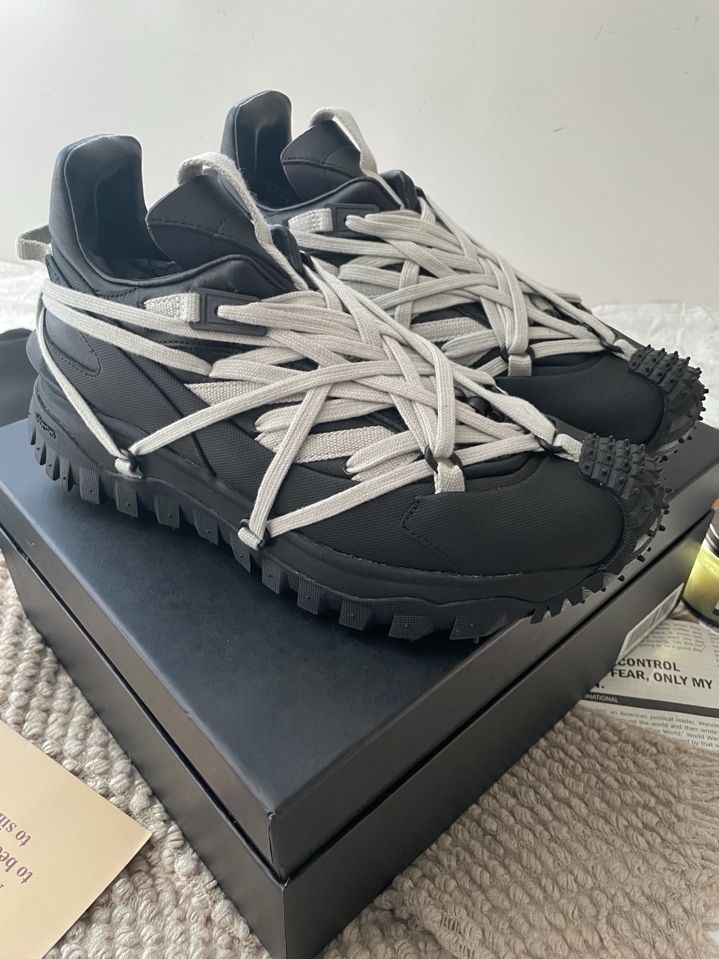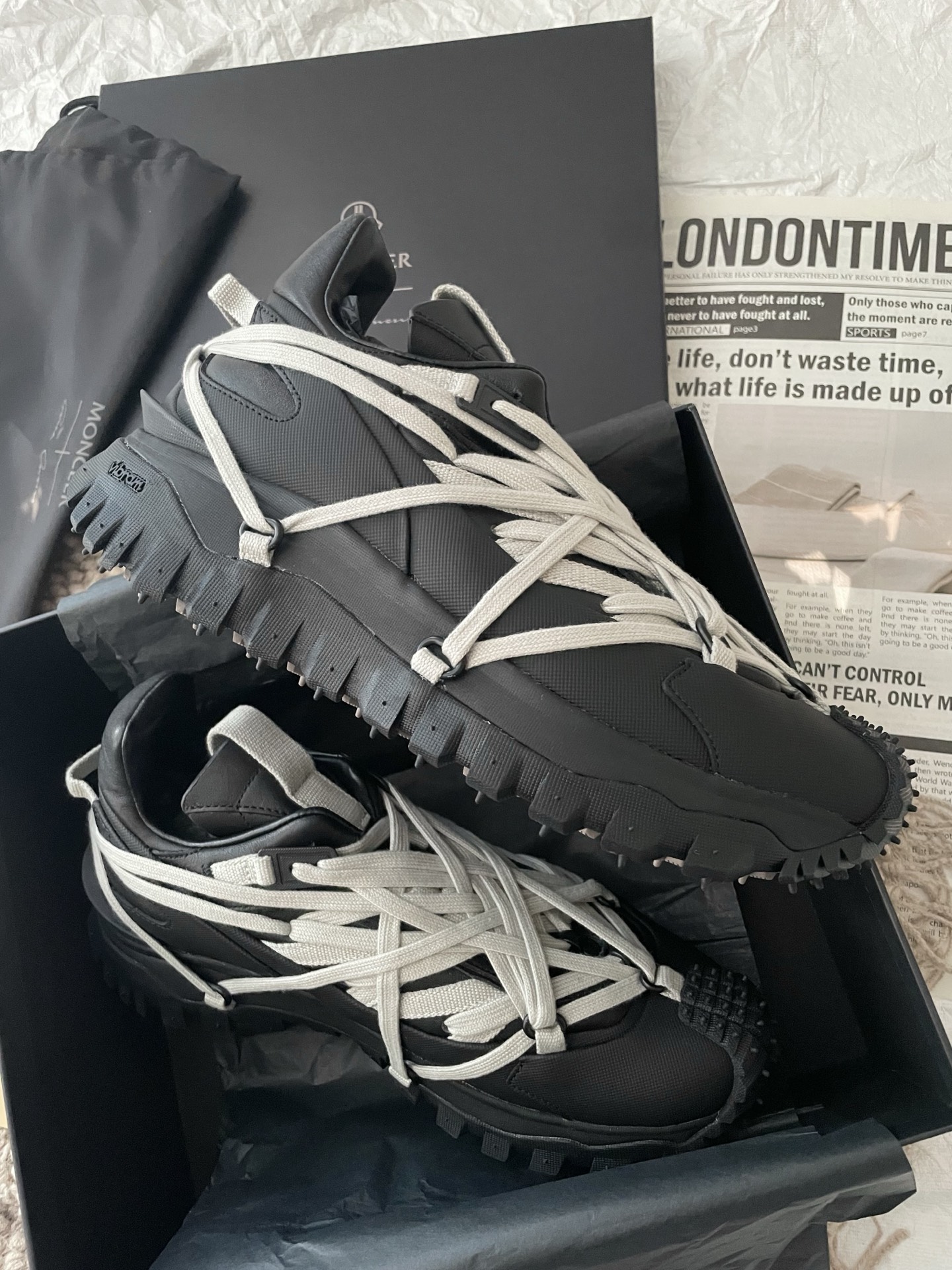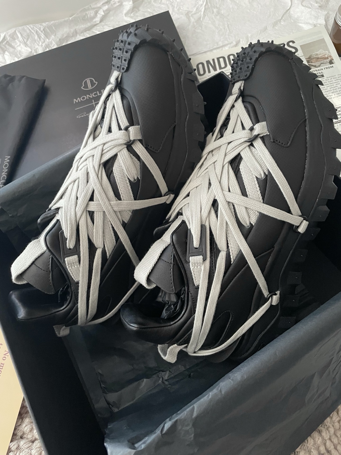 这款鞋子是AAAAA 1:1 质量 (非常棒). 使用了和原版一模一样的材料. 商标部分也保持了和盟可睐/moncler一样. 图片拍摄是实物鞋子拍摄, 您所收到的实物保证和我们图片一模一样.