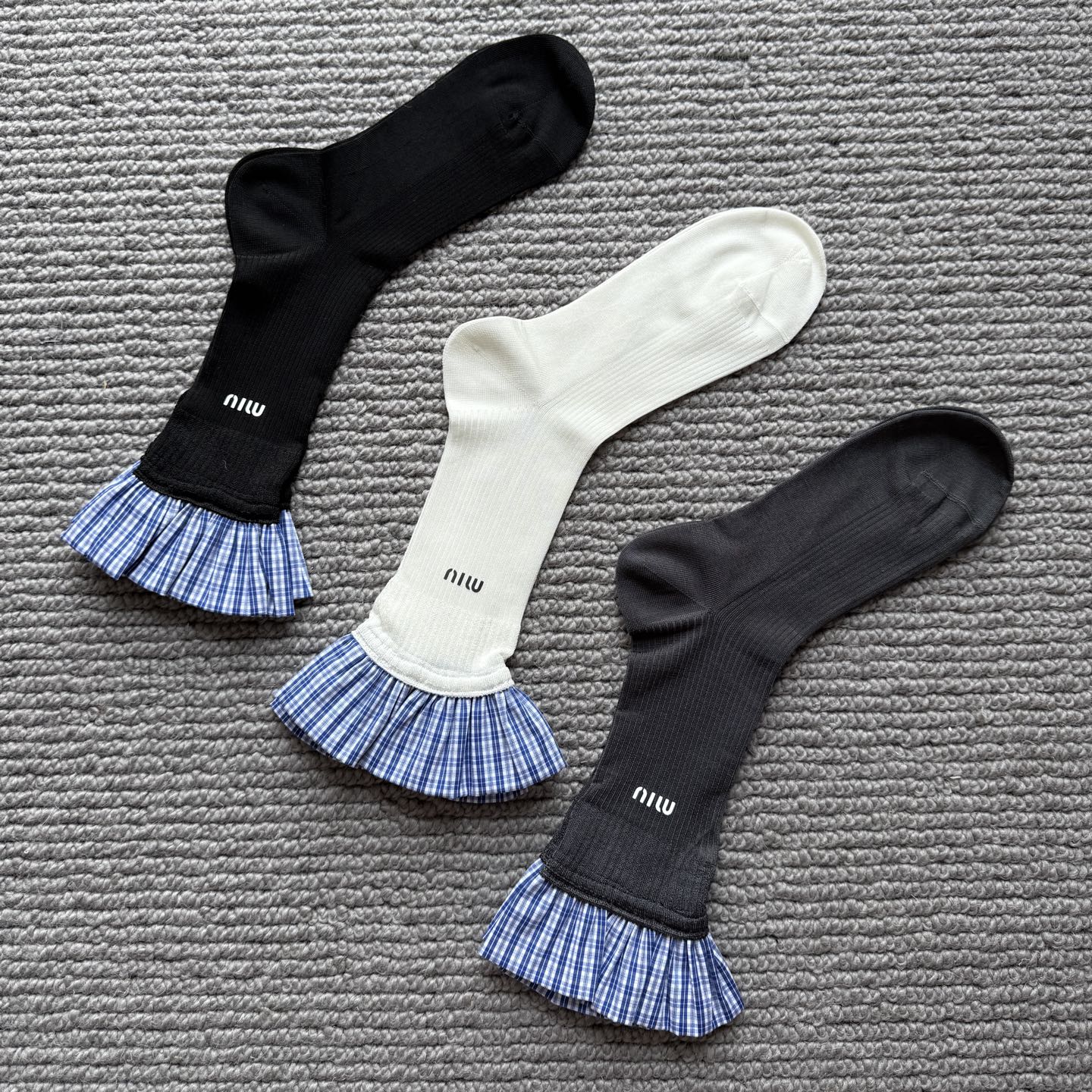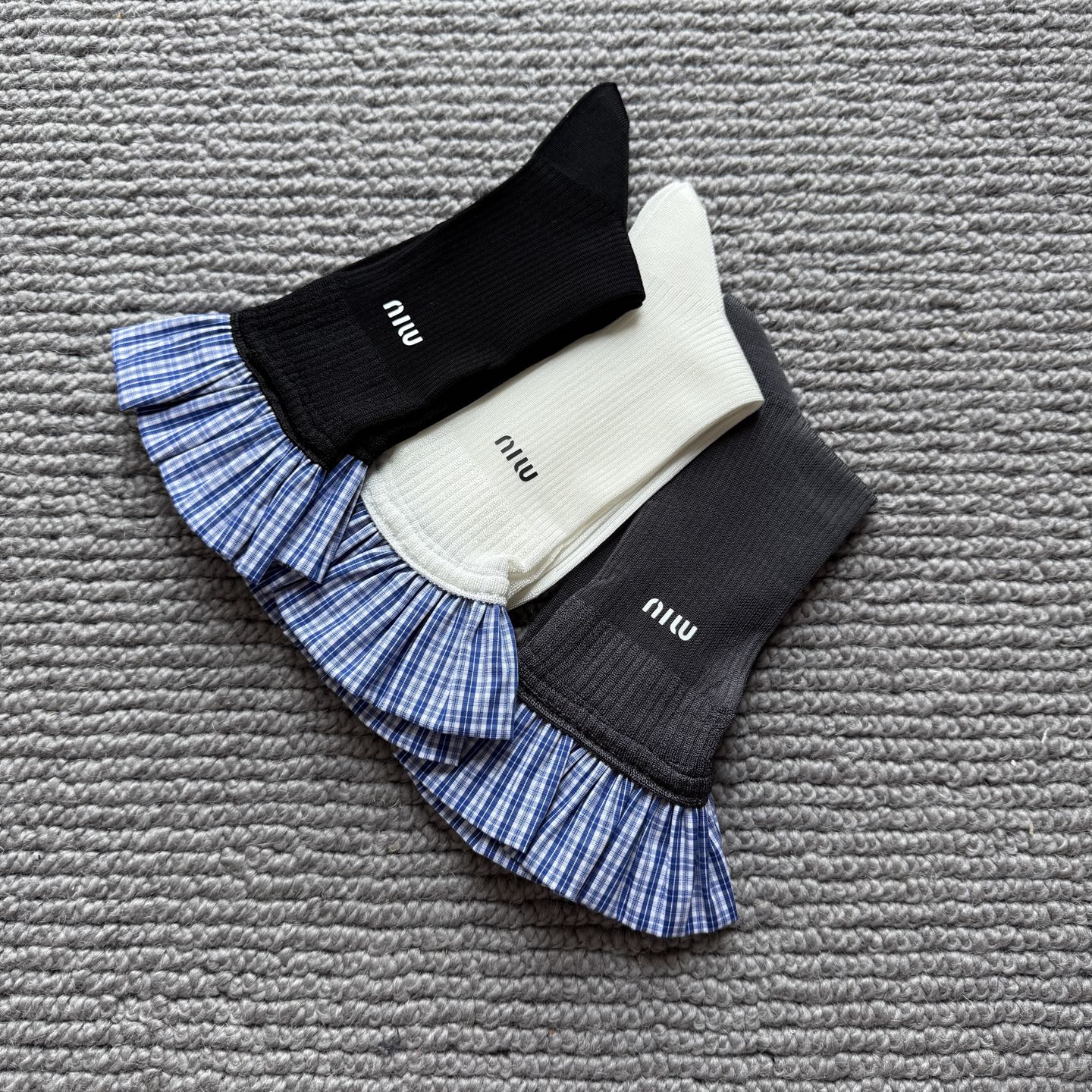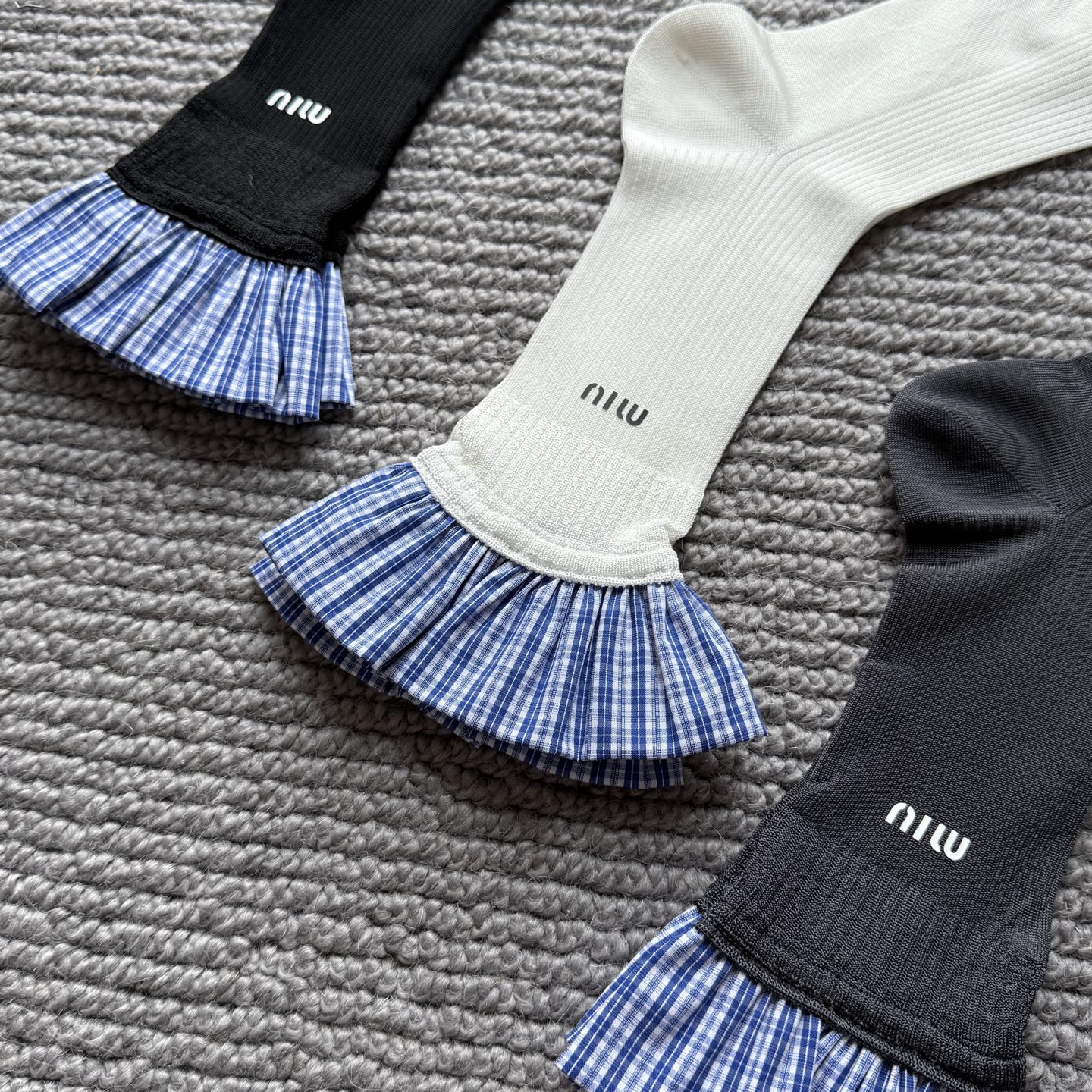 这款sock是AAAAA 1:1 质量 (非常棒). 使用了和原版一模一样的材料. 商标部分也保持了和缪缪/Miu Miu一样. 图片拍摄是实物sock拍摄, 您所收到的实物保证和我们图片一模一样.