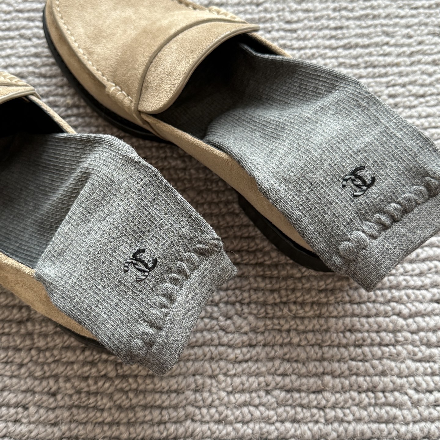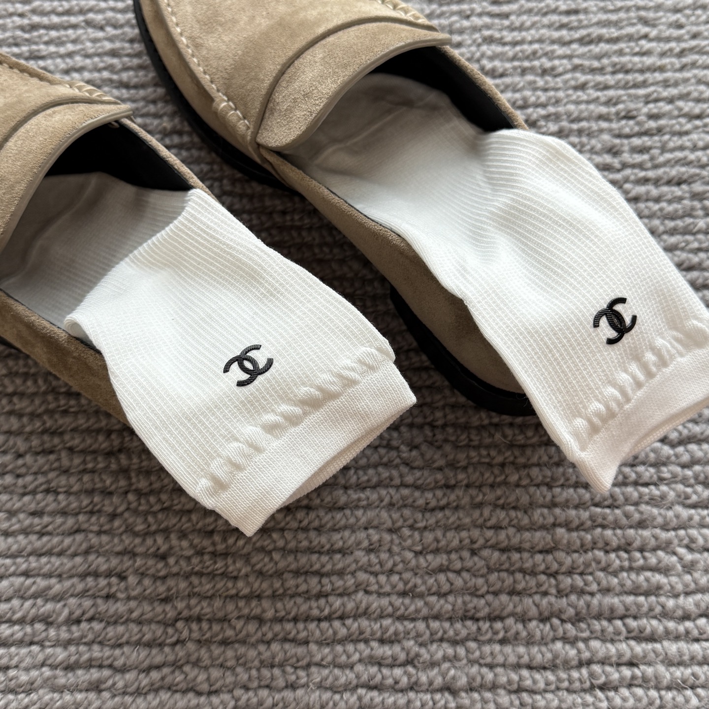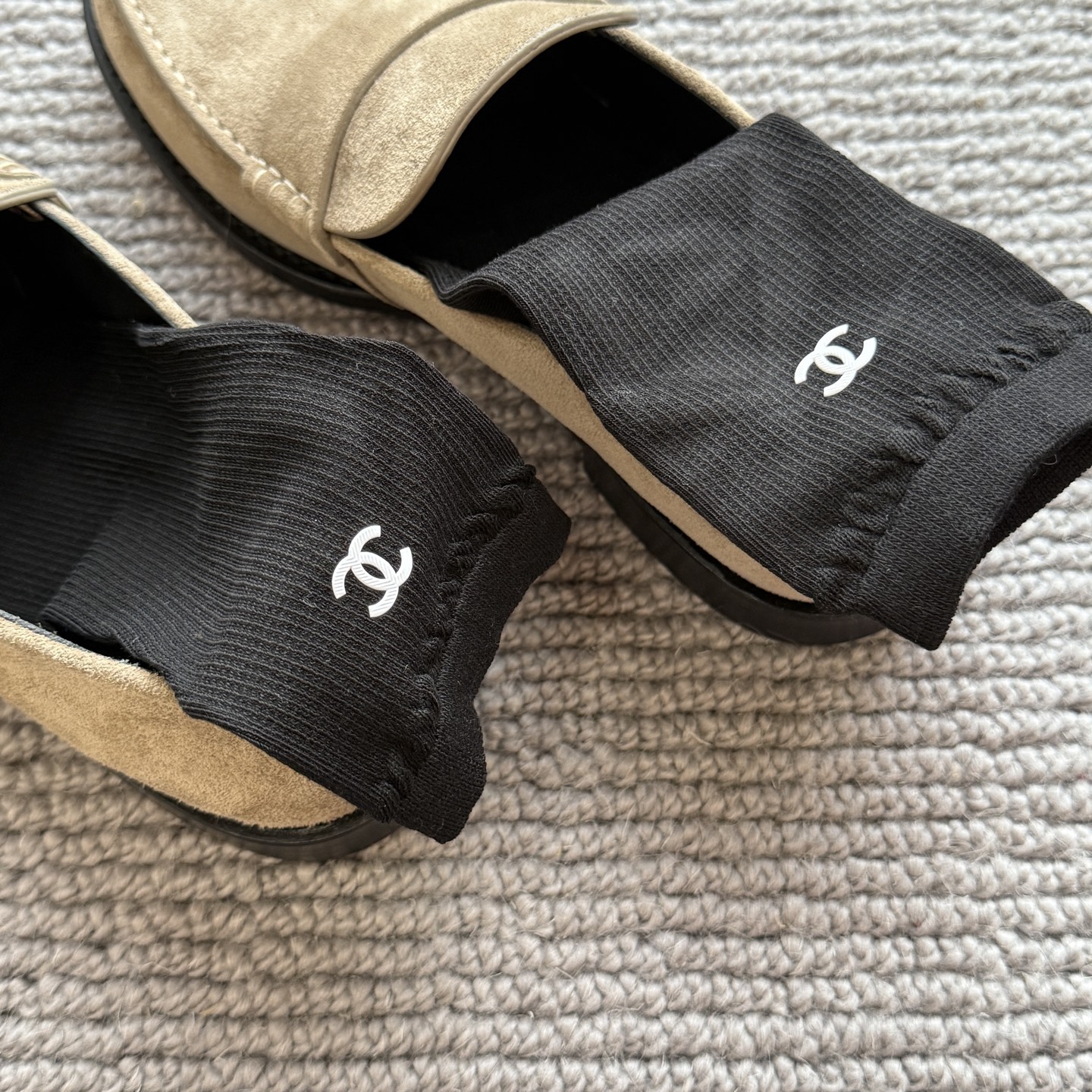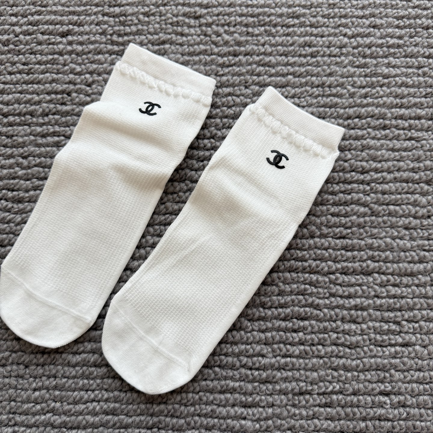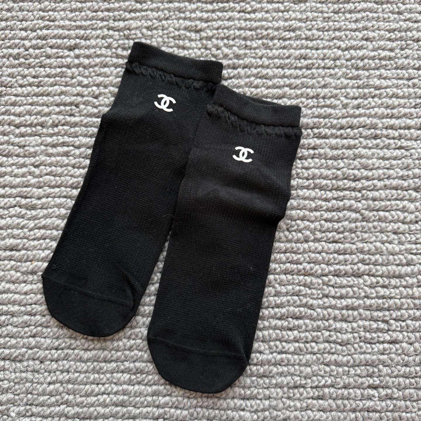 这款sock是AAAAA 1:1 质量 (非常棒). 使用了和原版一模一样的材料. 商标部分也保持了和香奈儿/Chanel一样. 图片拍摄是实物sock拍摄, 您所收到的实物保证和我们图片一模一样.