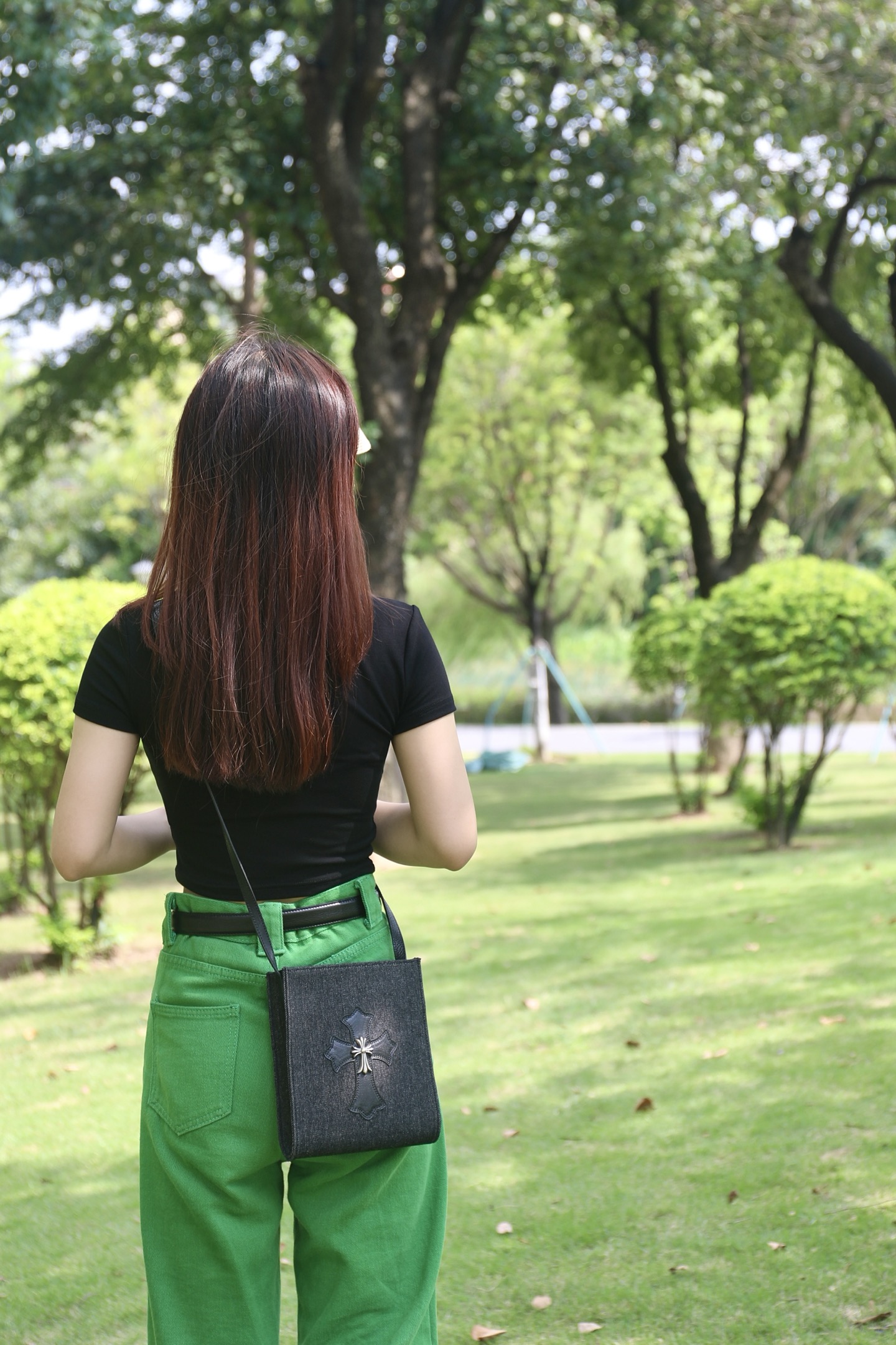 这款包包是AAAAA 1:1 质量 (非常棒). 使用了和原版一模一样的材料. 商标部分也保持了和克罗心/Chrome Hearts一样. 图片拍摄是实物包包拍摄, 您所收到的实物保证和我们图片一模一样.