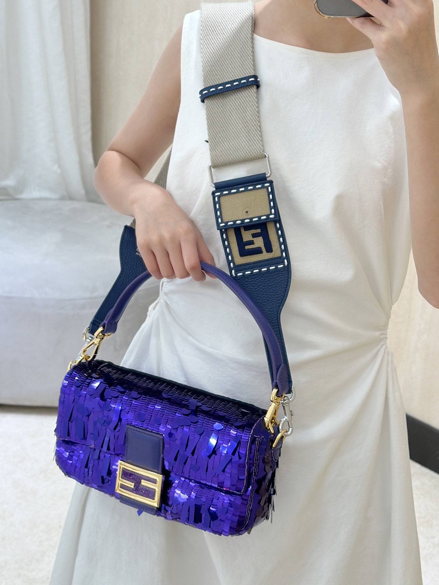 这款包包是AAAAA 1:1 质量 (非常棒). 使用了和原版一模一样的材料. 商标部分也保持了和芬迪/Fendi一样. 图片拍摄是实物包包拍摄, 您所收到的实物保证和我们图片一模一样.