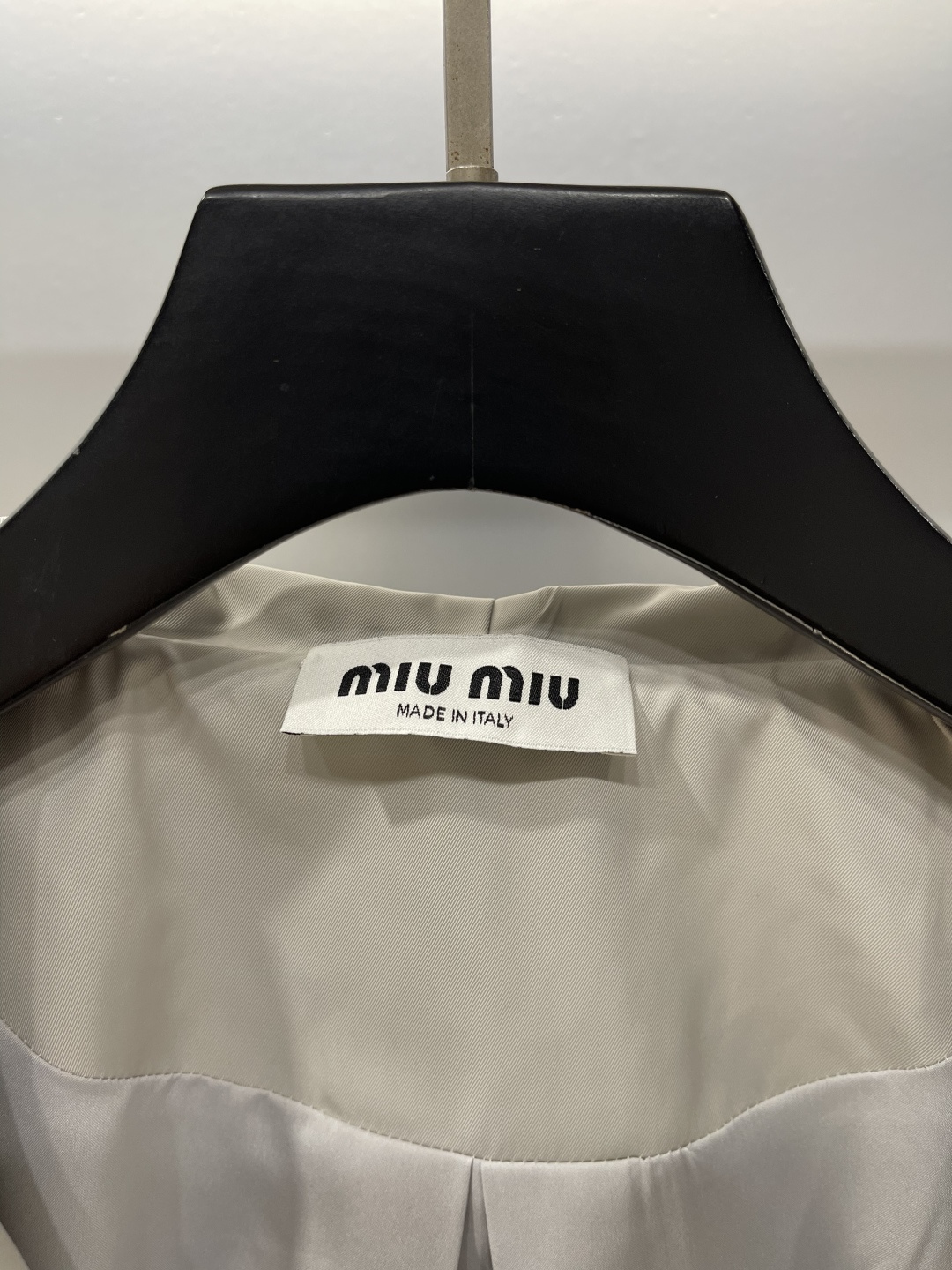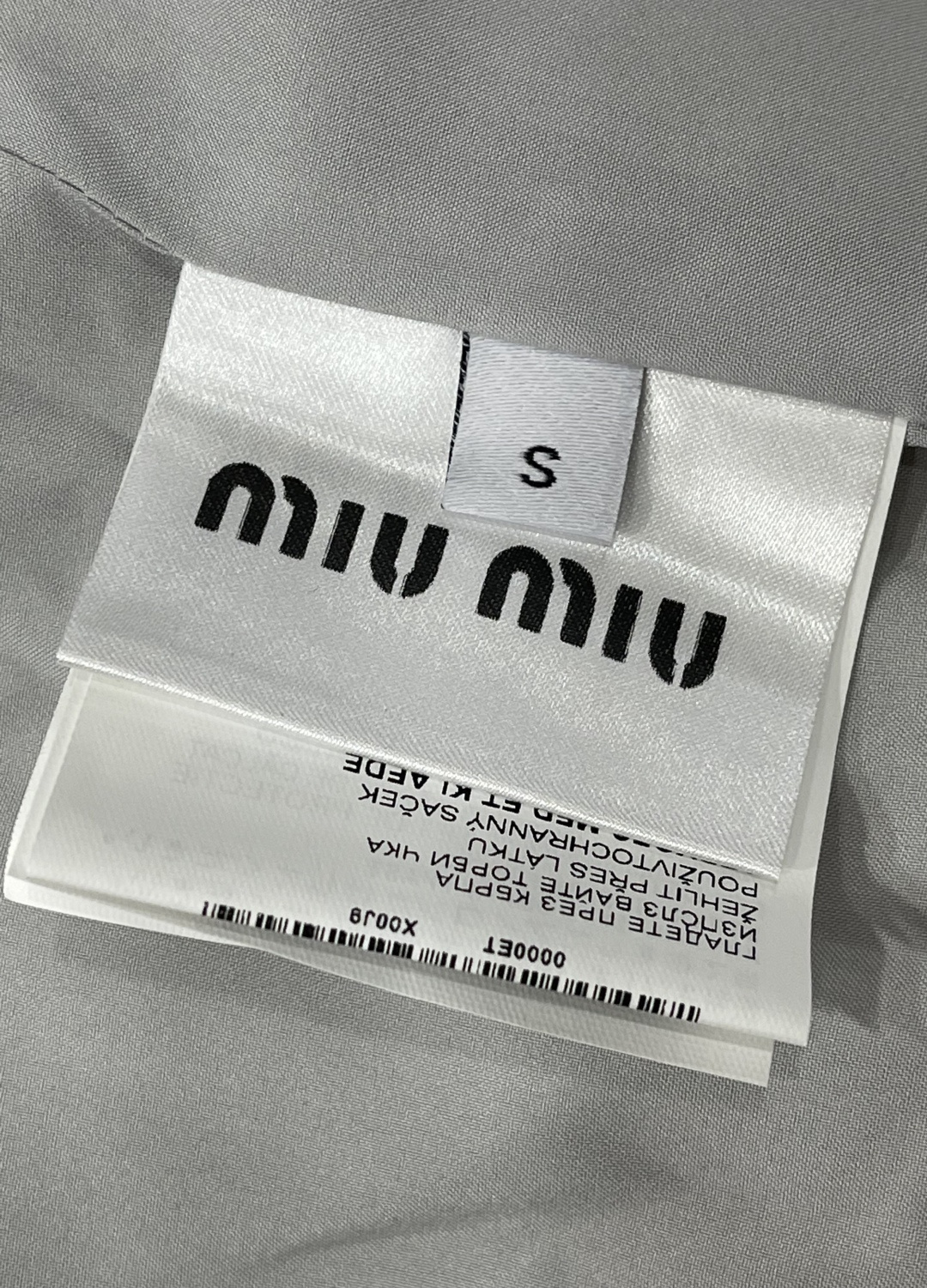 这款衣服是AAAAA 1:1 质量 (非常棒). 使用了和原版一模一样的材料. 商标部分也保持了和缪缪/Miu Miu一样. 图片拍摄是实物衣服拍摄, 您所收到的实物保证和我们图片一模一样.