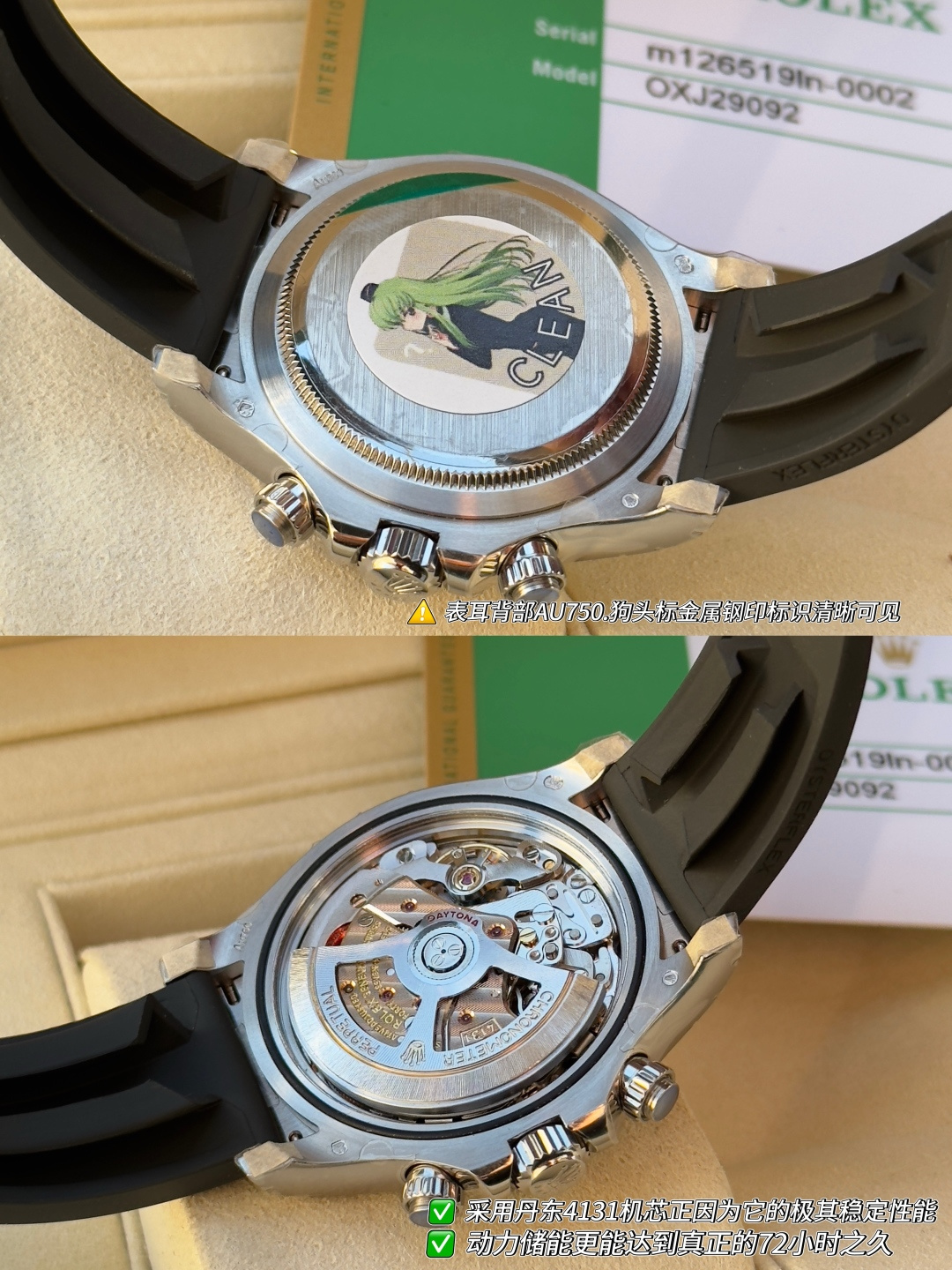 这款手表是AAAAA 1:1 质量 (非常棒). 使用了和原版一模一样的材料. 商标部分也保持了和劳力士/Rolex一样. 图片拍摄是实物手表拍摄, 您所收到的实物保证和我们图片一模一样.