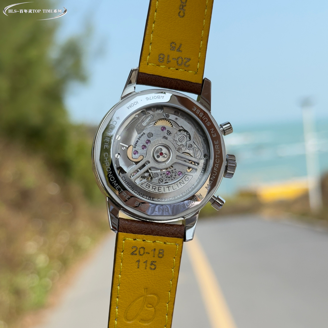 这款手表是AAAAA 1:1 质量 (非常棒). 使用了和原版一模一样的材料. 商标部分也保持了和Breitling一样. 图片拍摄是实物手表拍摄, 您所收到的实物保证和我们图片一模一样.