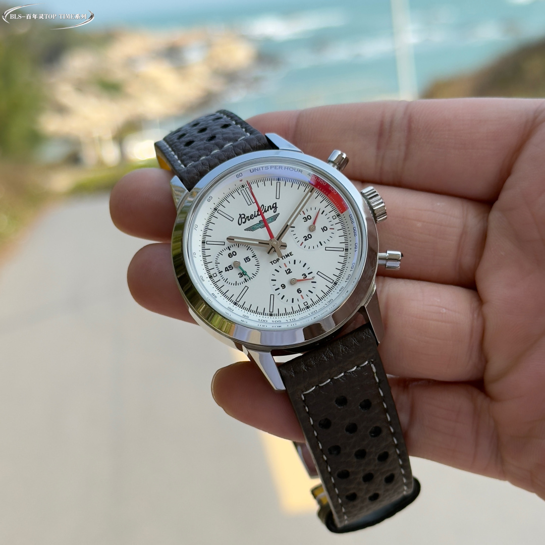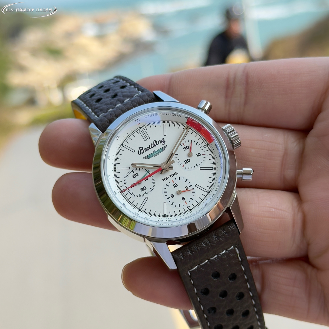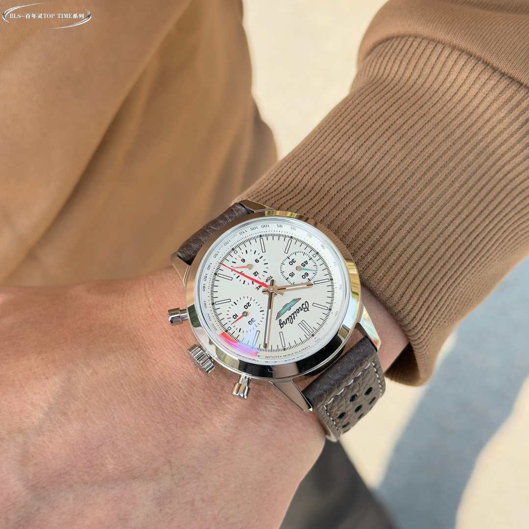 这款手表是AAAAA 1:1 质量 (非常棒). 使用了和原版一模一样的材料. 商标部分也保持了和Breitling一样. 图片拍摄是实物手表拍摄, 您所收到的实物保证和我们图片一模一样.
