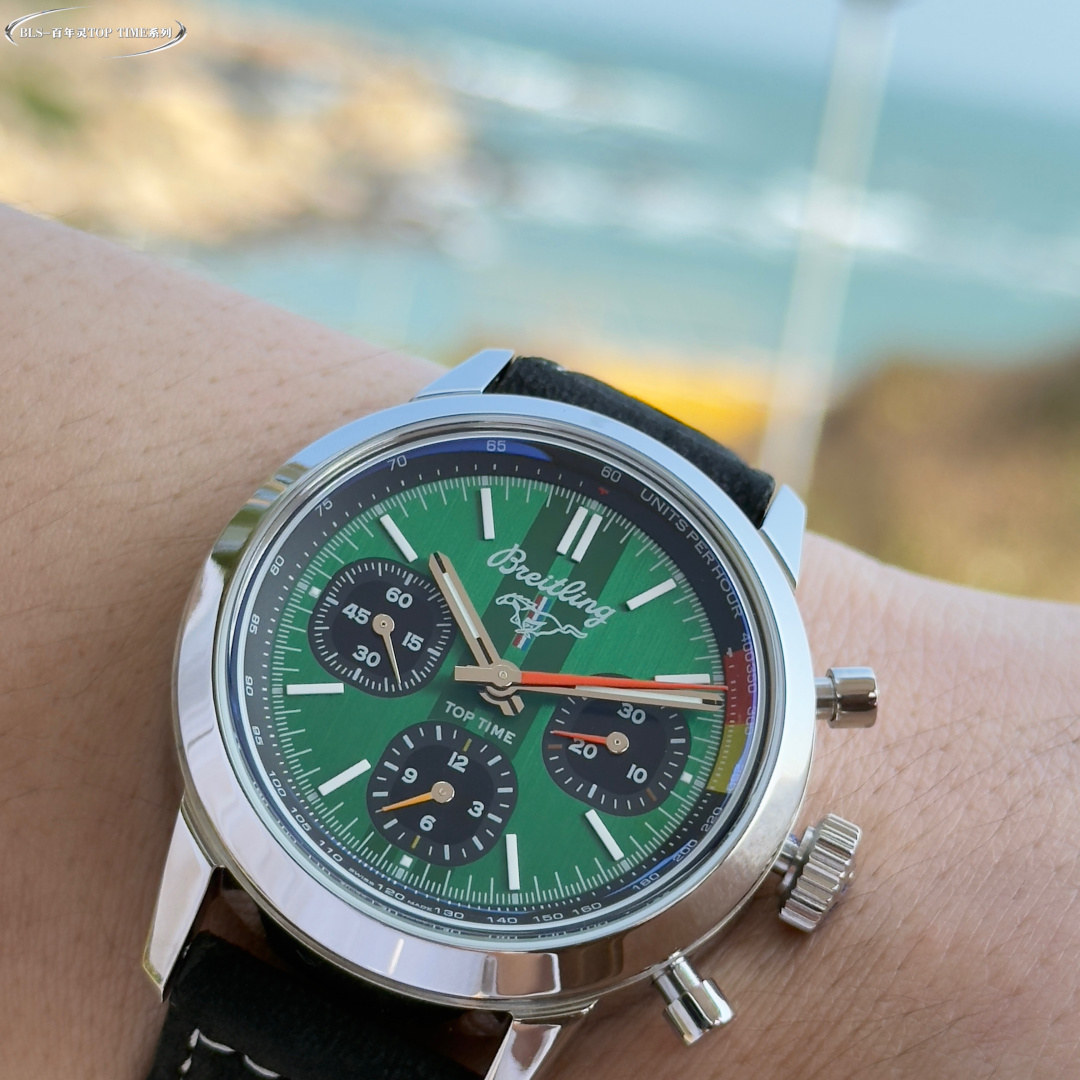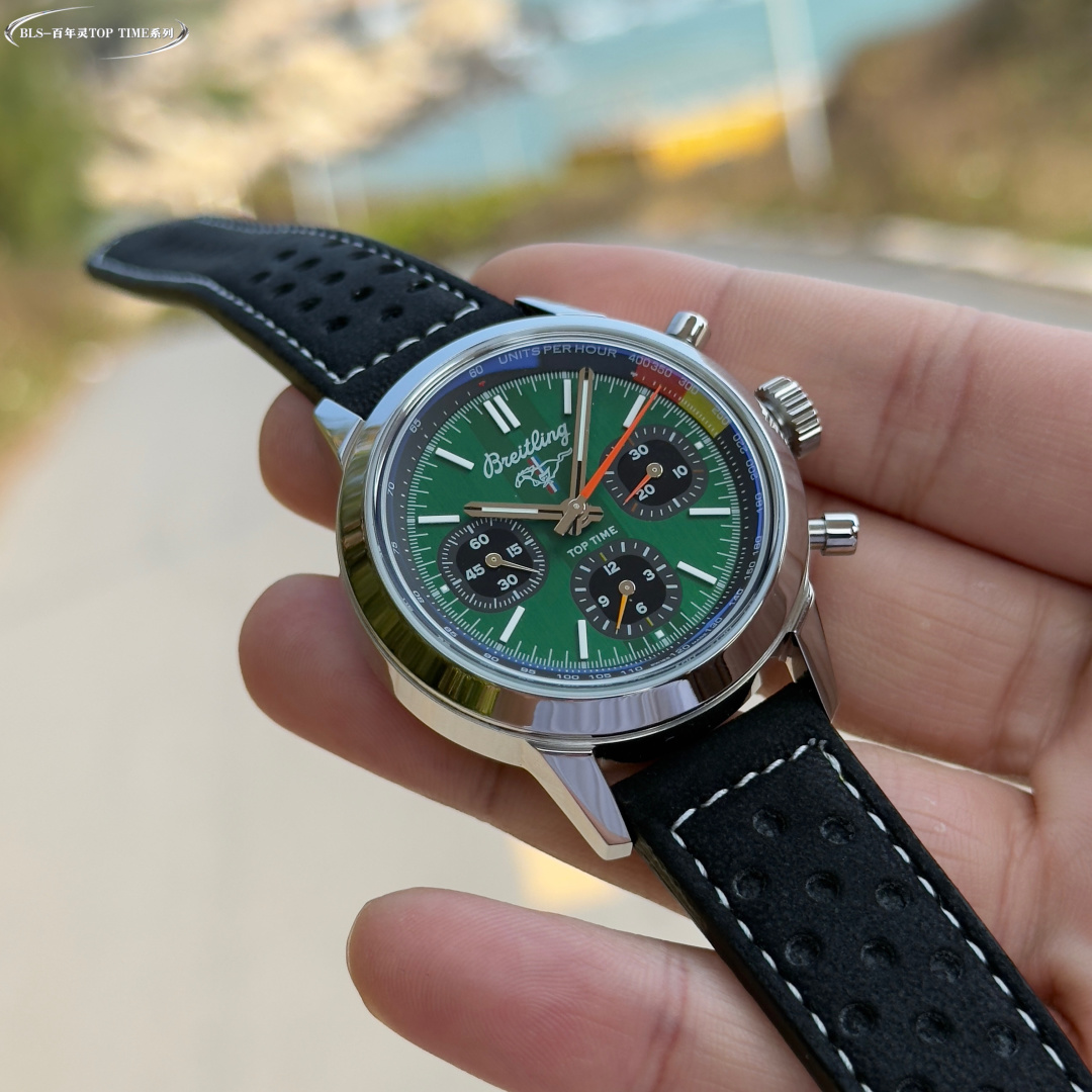 这款手表是AAAAA 1:1 质量 (非常棒). 使用了和原版一模一样的材料. 商标部分也保持了和Breitling一样. 图片拍摄是实物手表拍摄, 您所收到的实物保证和我们图片一模一样.