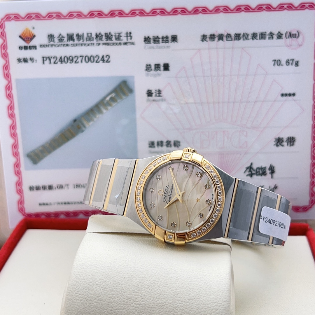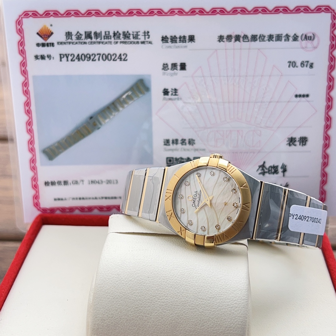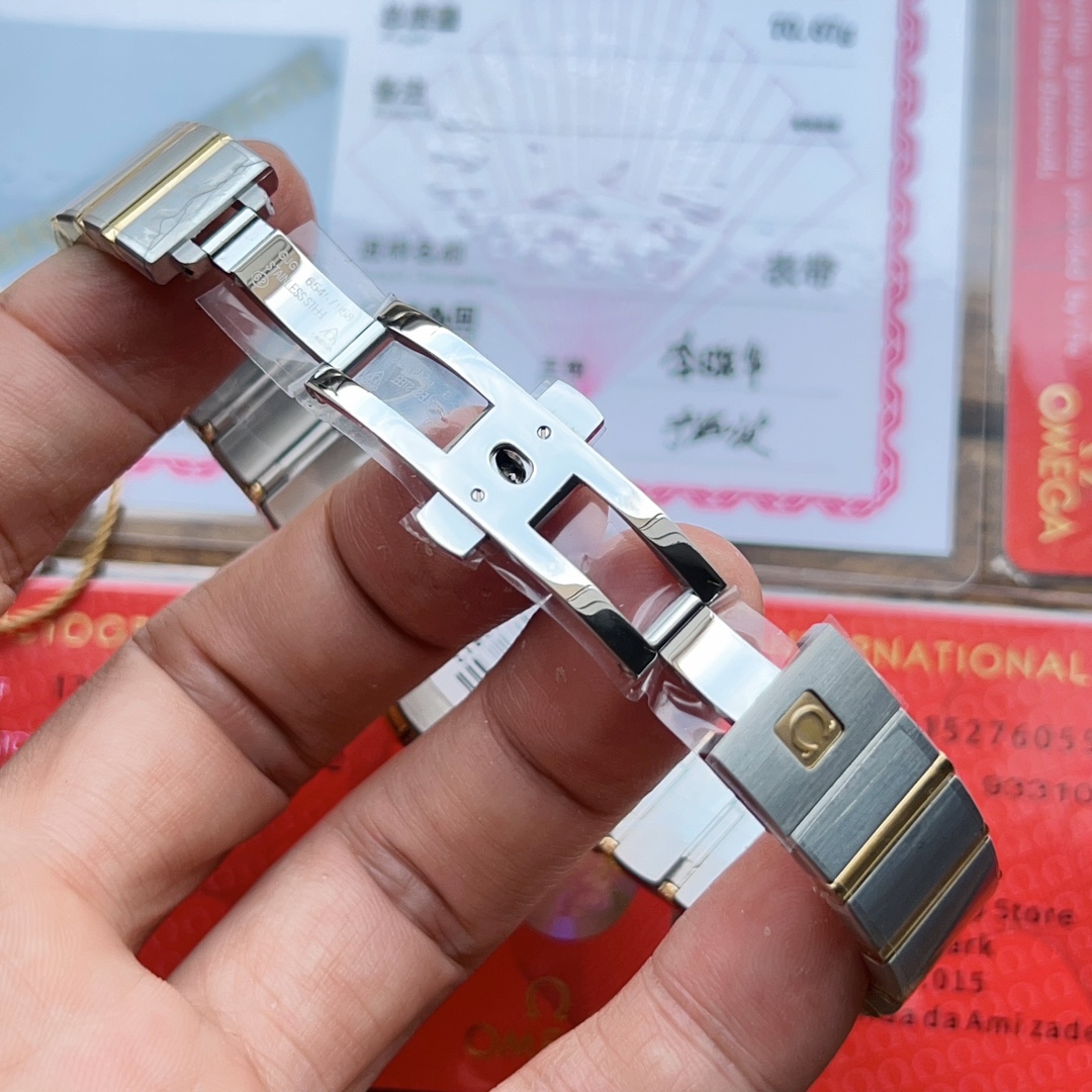 这款手表是AAAAA 1:1 质量 (非常棒). 使用了和原版一模一样的材料. 商标部分也保持了和欧米茄/Omega一样. 图片拍摄是实物手表拍摄, 您所收到的实物保证和我们图片一模一样.