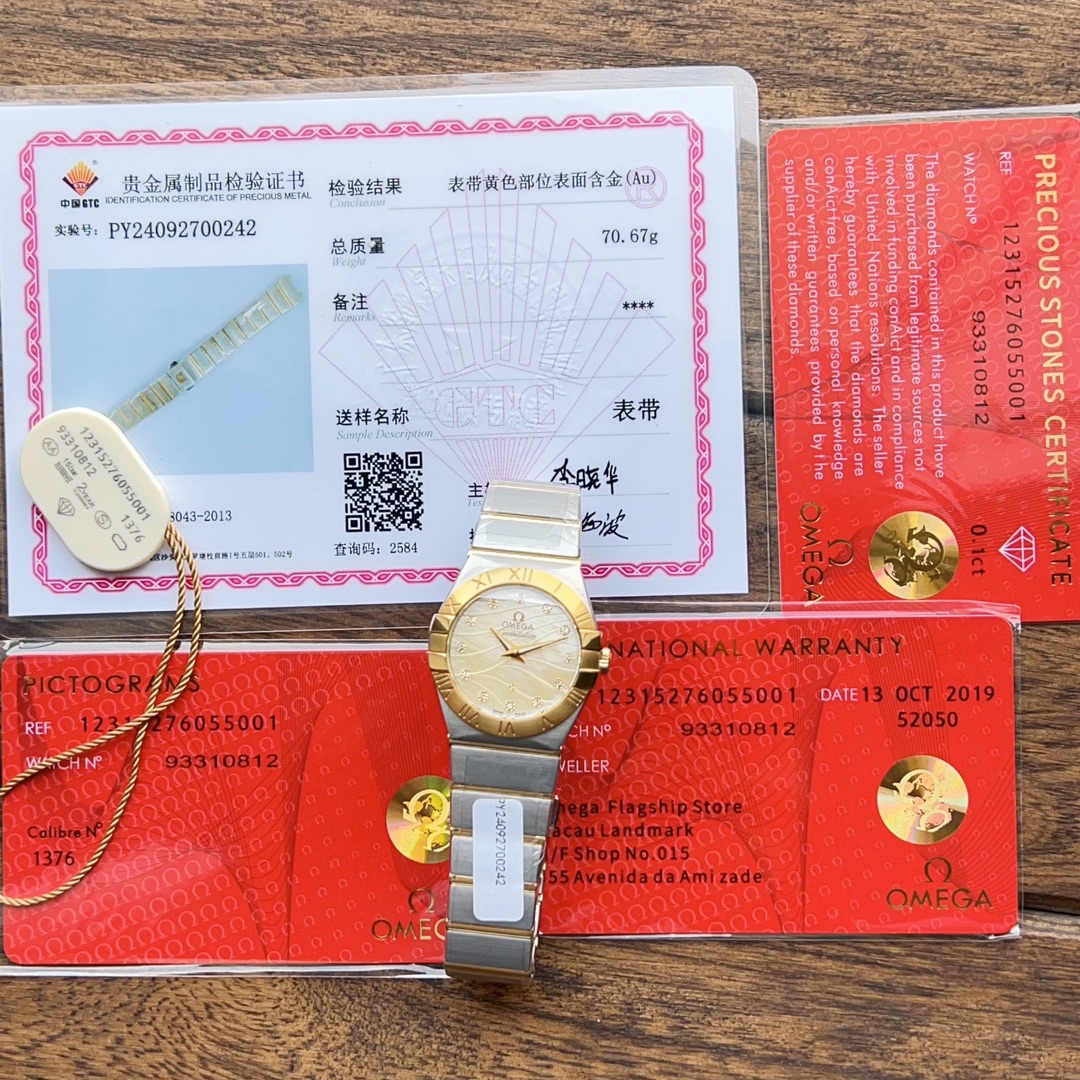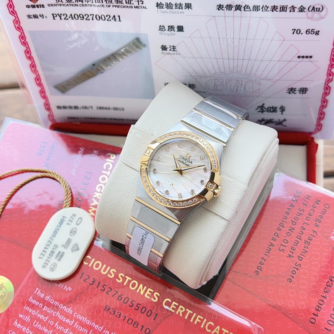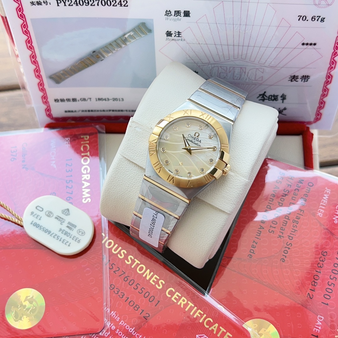 这款手表是AAAAA 1:1 质量 (非常棒). 使用了和原版一模一样的材料. 商标部分也保持了和欧米茄/Omega一样. 图片拍摄是实物手表拍摄, 您所收到的实物保证和我们图片一模一样.