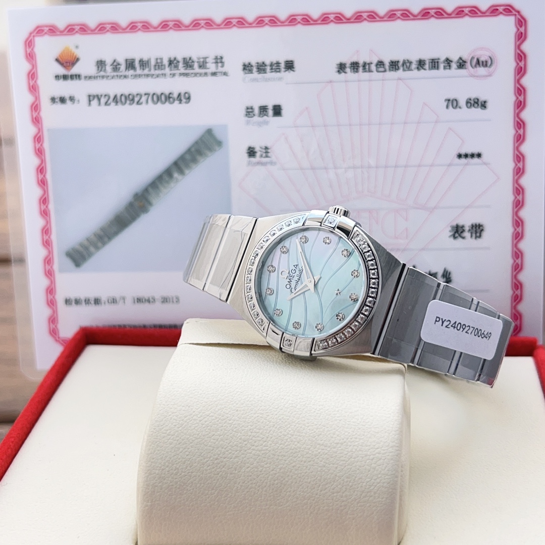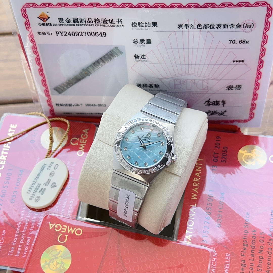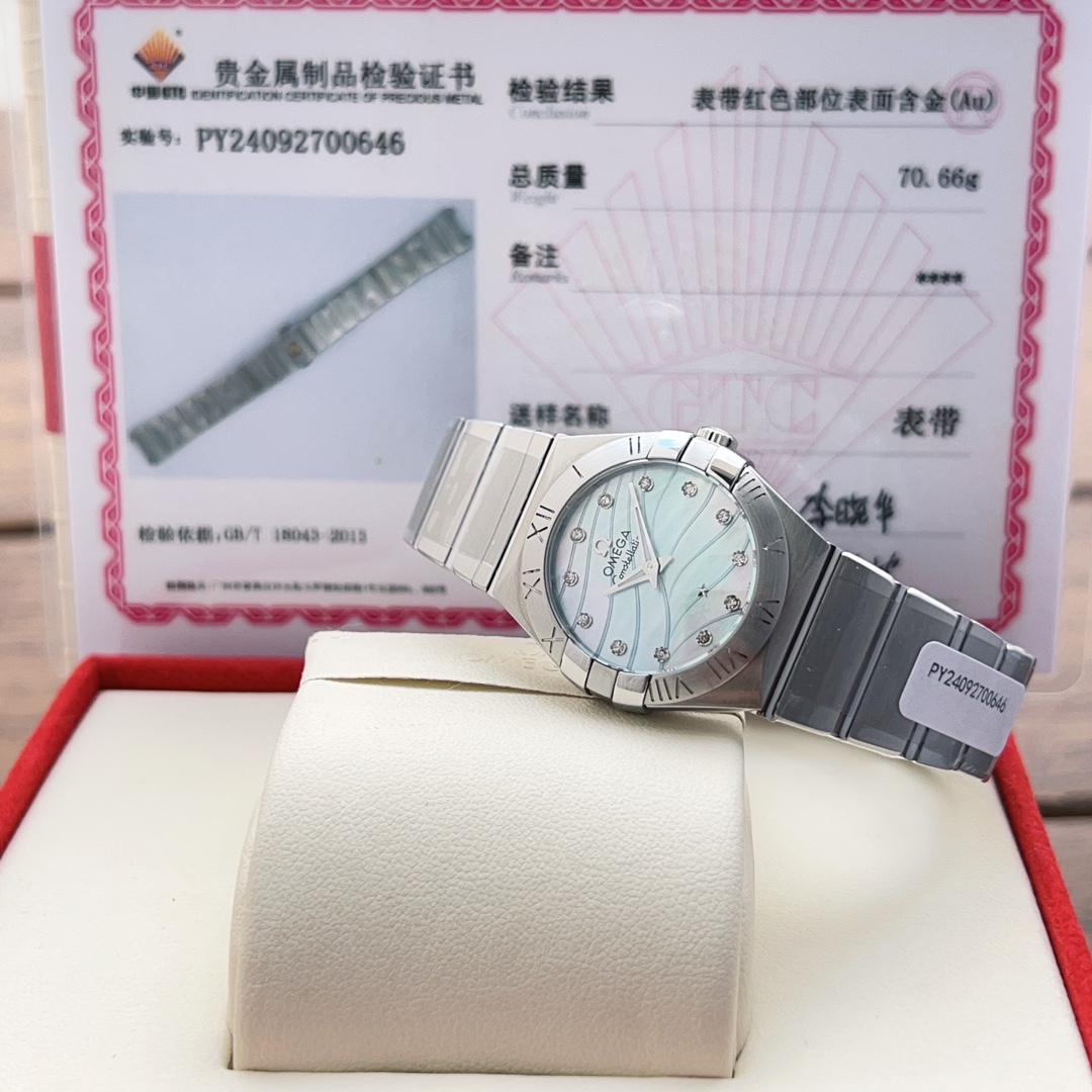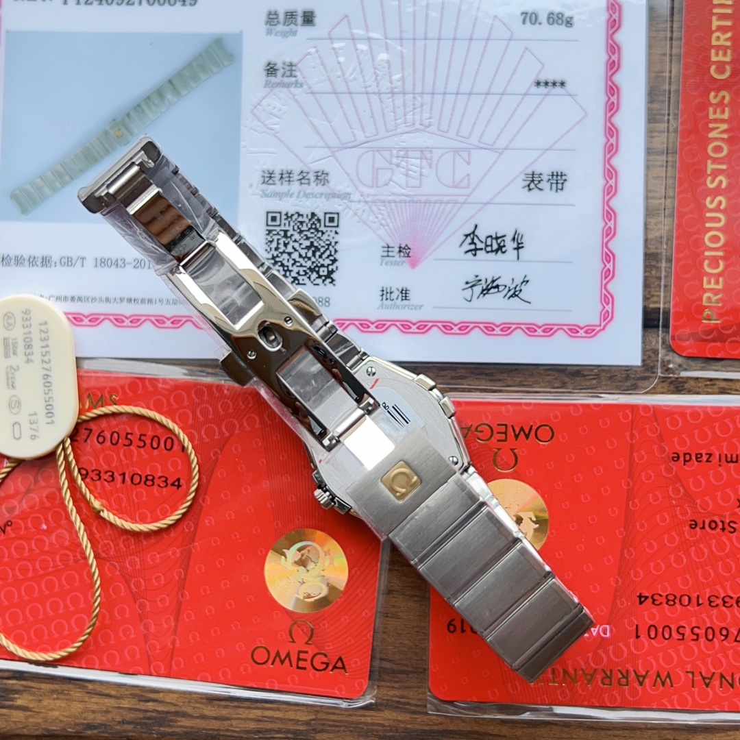 这款手表是AAAAA 1:1 质量 (非常棒). 使用了和原版一模一样的材料. 商标部分也保持了和欧米茄/Omega一样. 图片拍摄是实物手表拍摄, 您所收到的实物保证和我们图片一模一样.