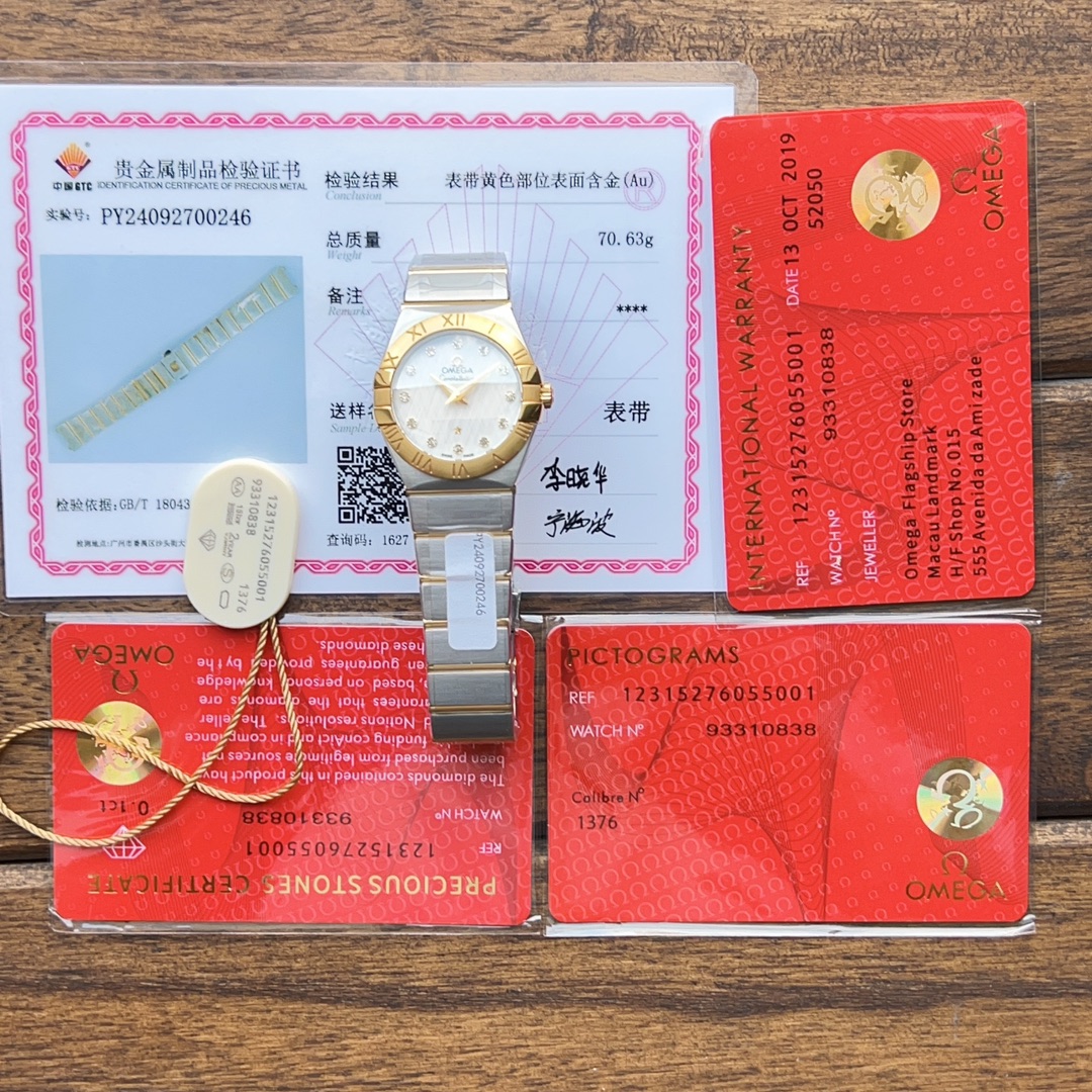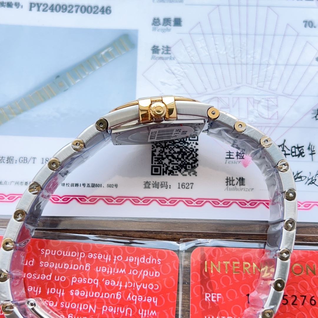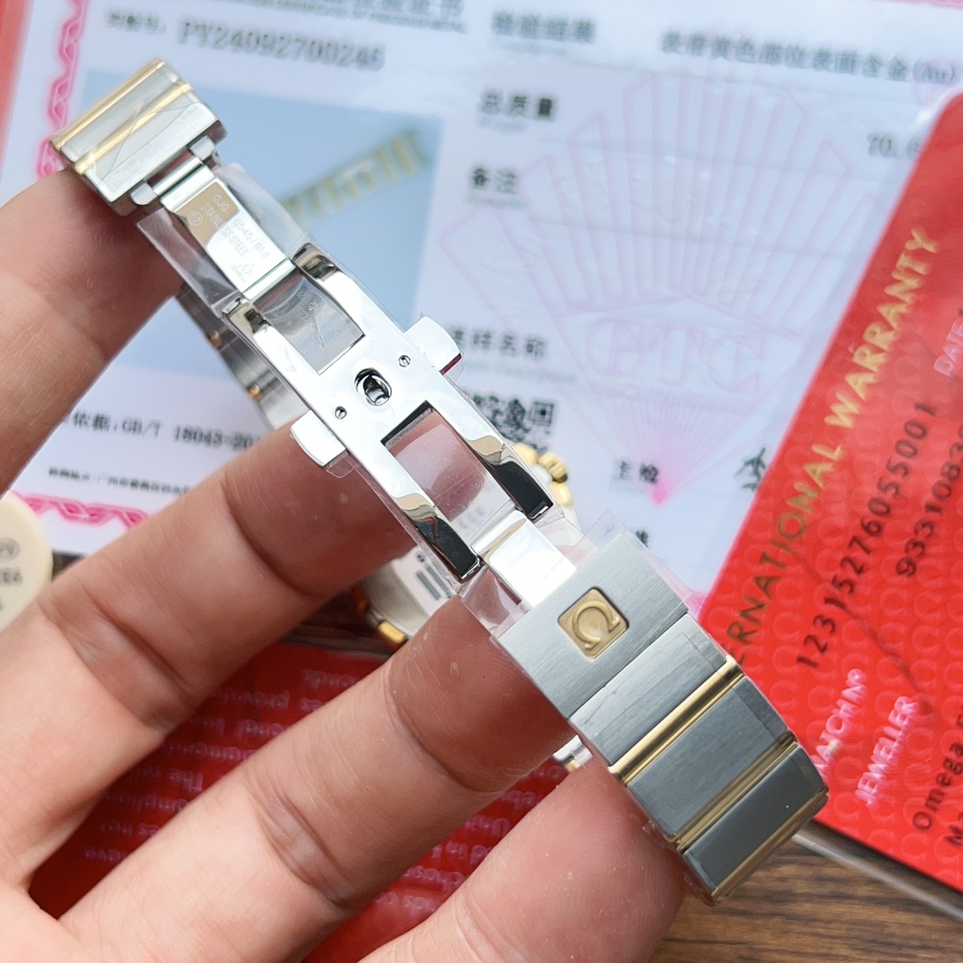 这款手表是AAAAA 1:1 质量 (非常棒). 使用了和原版一模一样的材料. 商标部分也保持了和欧米茄/Omega一样. 图片拍摄是实物手表拍摄, 您所收到的实物保证和我们图片一模一样.