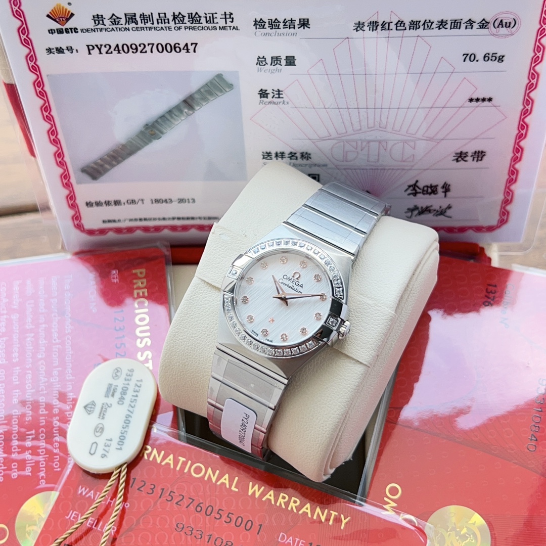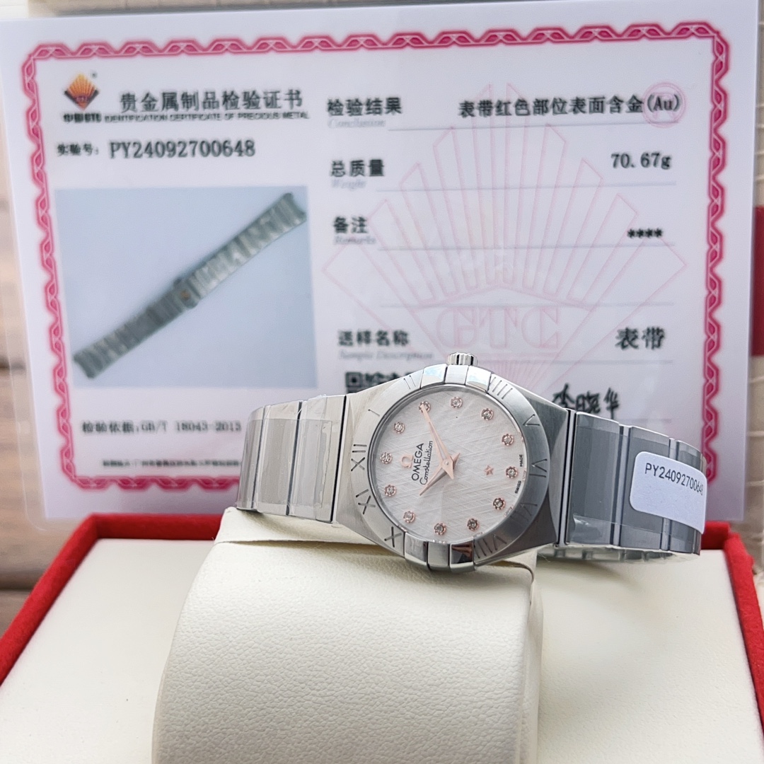 这款手表是AAAAA 1:1 质量 (非常棒). 使用了和原版一模一样的材料. 商标部分也保持了和欧米茄/Omega一样. 图片拍摄是实物手表拍摄, 您所收到的实物保证和我们图片一模一样.