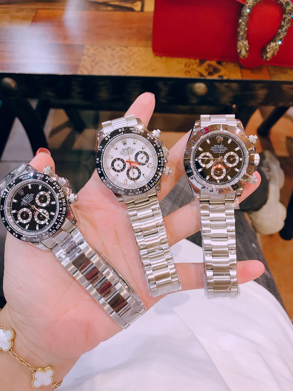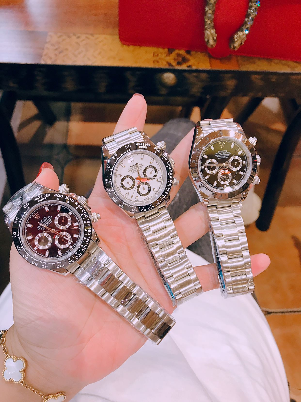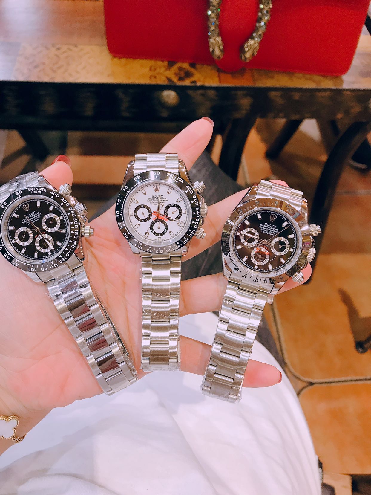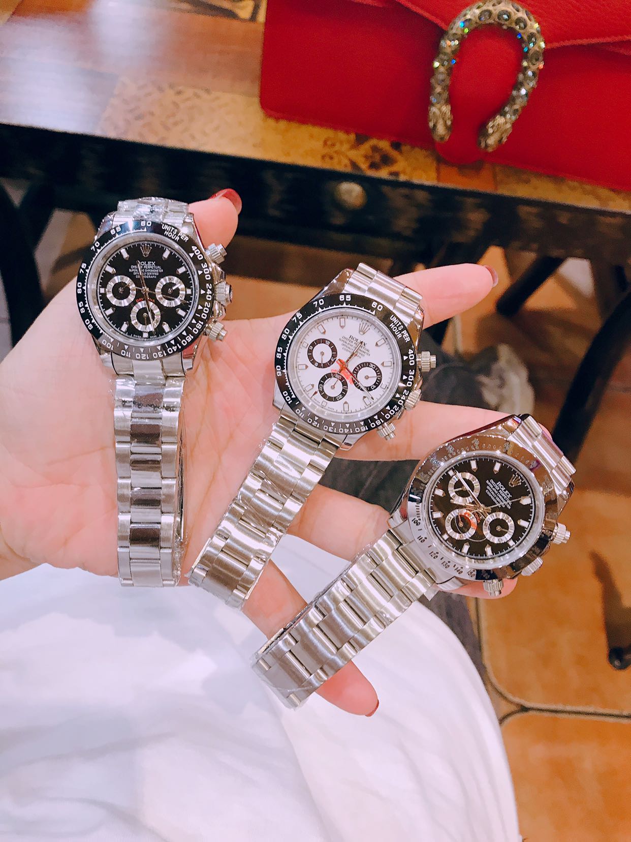 这款手表是AAAAA 1:1 质量 (非常棒). 使用了和原版一模一样的材料. 商标部分也保持了和劳力士/Rolex一样. 图片拍摄是实物手表拍摄, 您所收到的实物保证和我们图片一模一样.