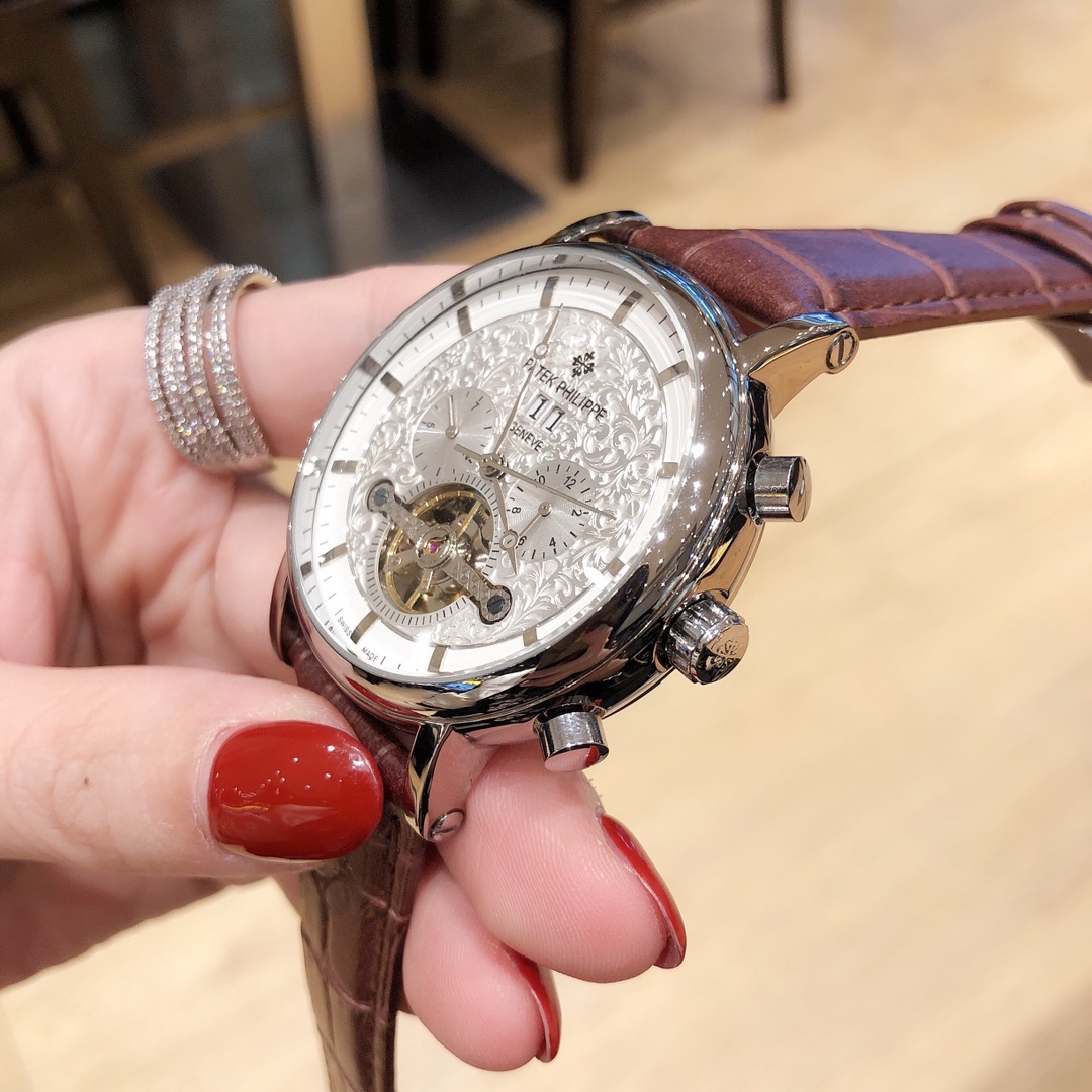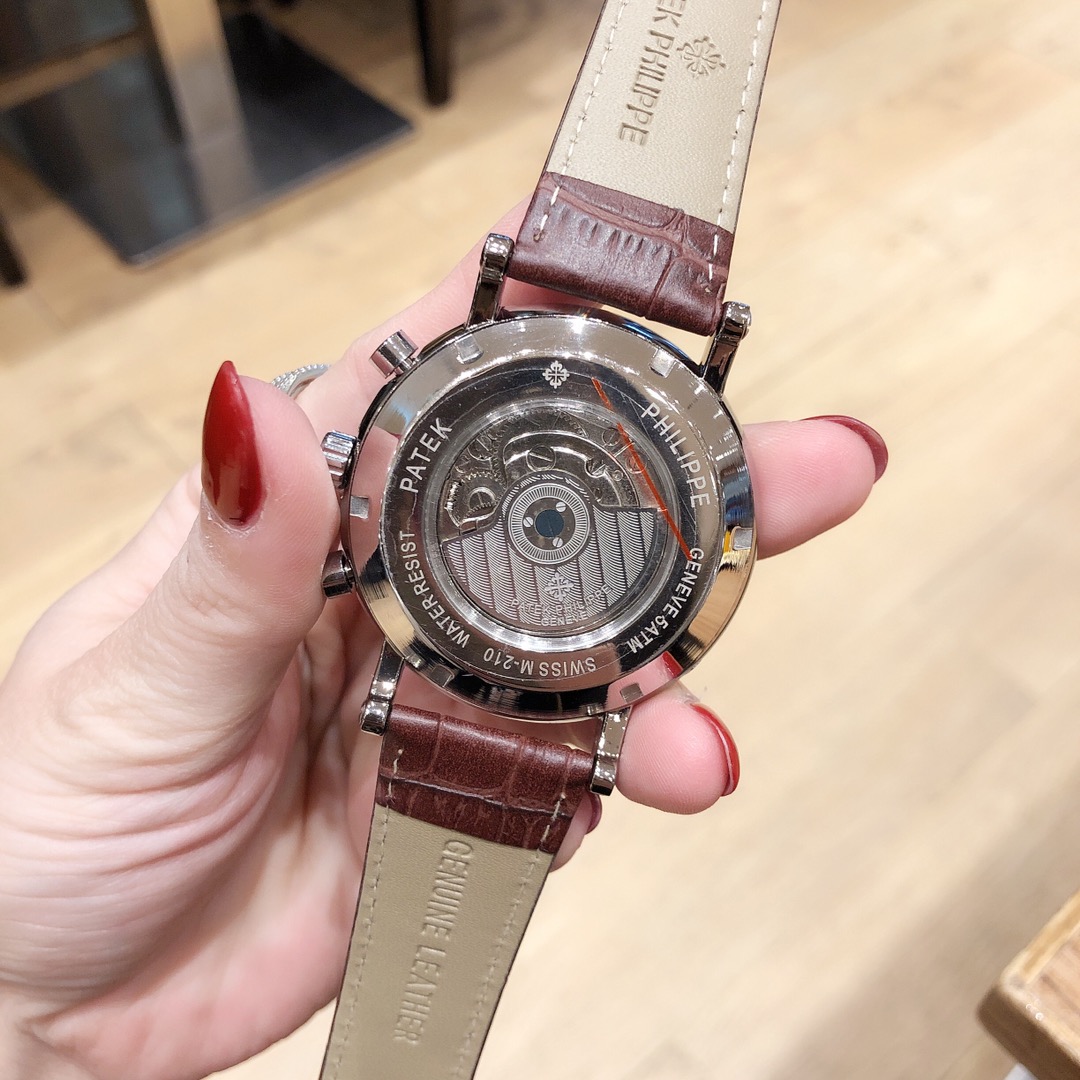 这款手表是AAAAA 1:1 质量 (非常棒). 使用了和原版一模一样的材料. 商标部分也保持了和百达翡丽/Patek Philippe一样. 图片拍摄是实物手表拍摄, 您所收到的实物保证和我们图片一模一样.