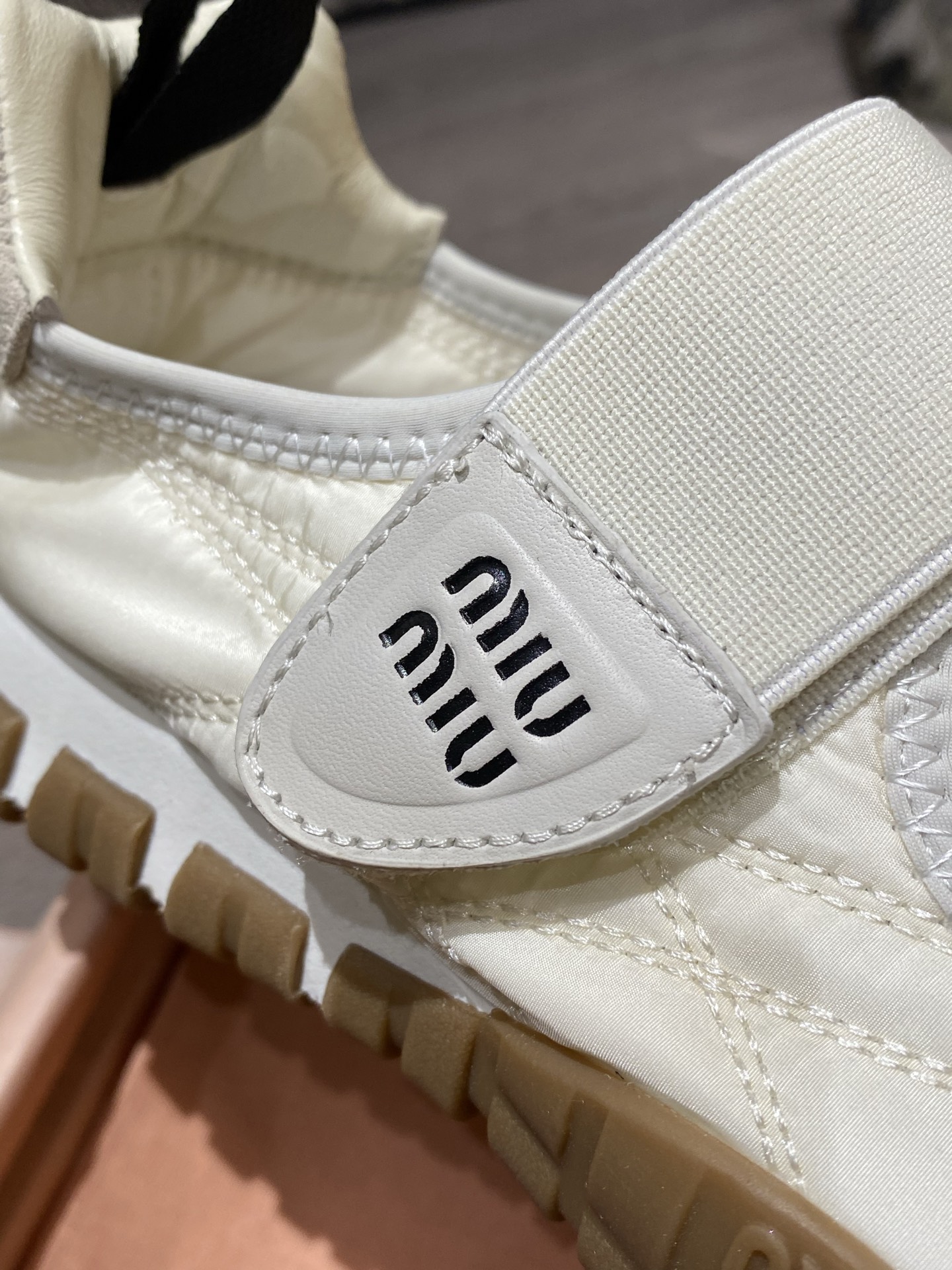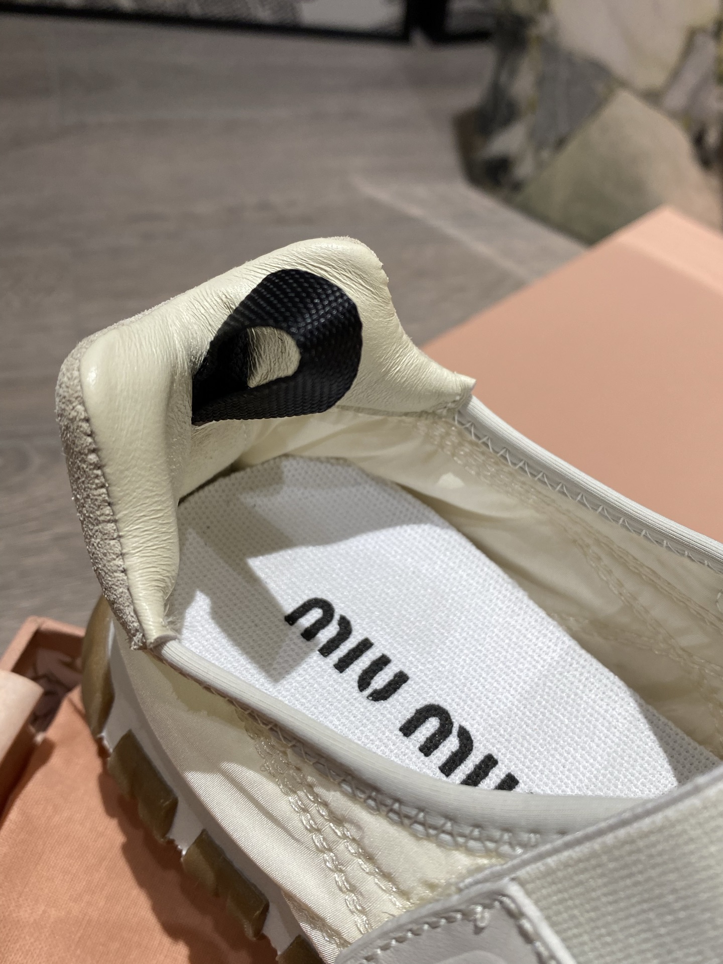 这款鞋子是AAAAA 1:1 质量 (非常棒). 使用了和原版一模一样的材料. 商标部分也保持了和缪缪/Miu Miu一样. 图片拍摄是实物鞋子拍摄, 您所收到的实物保证和我们图片一模一样.