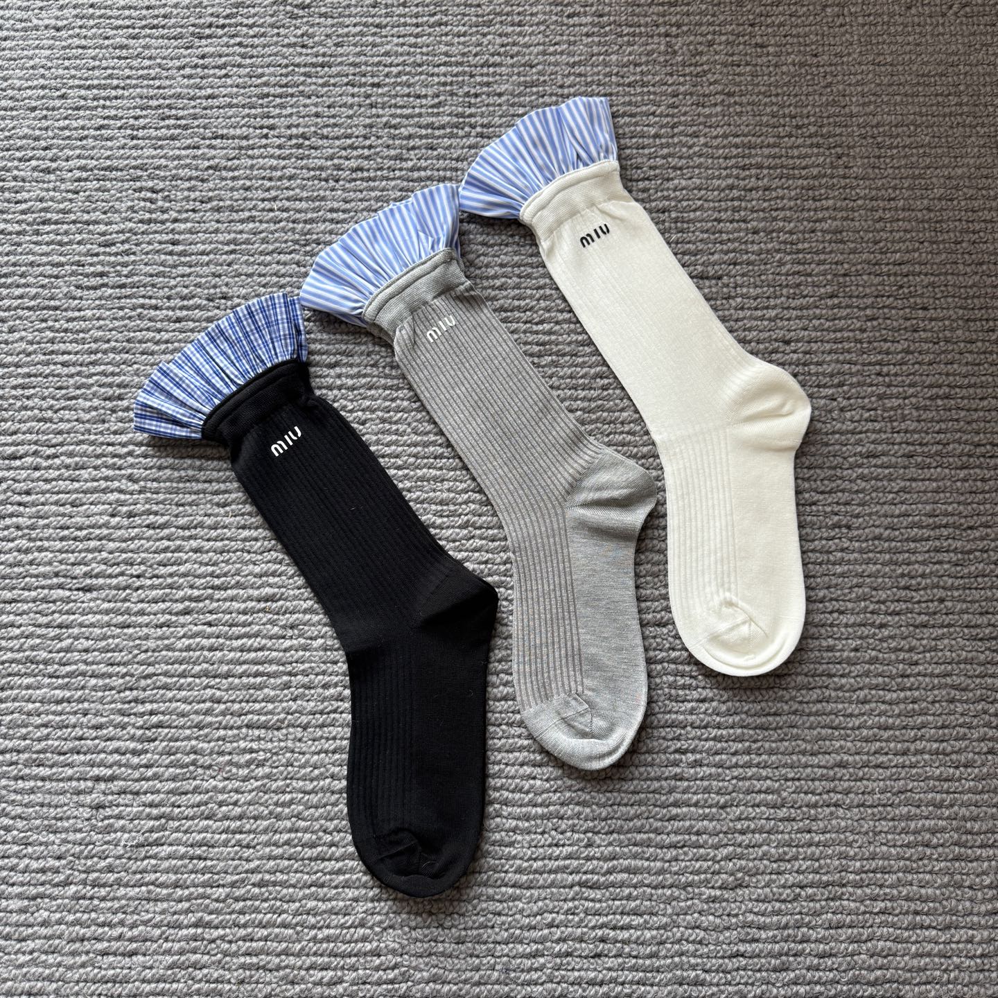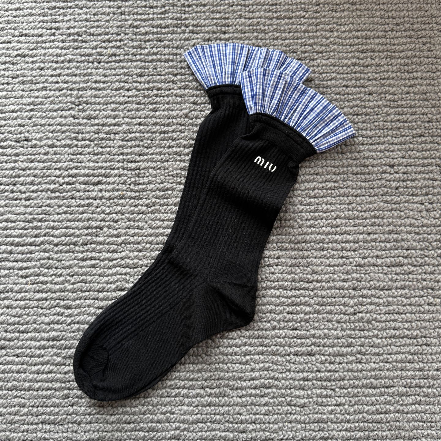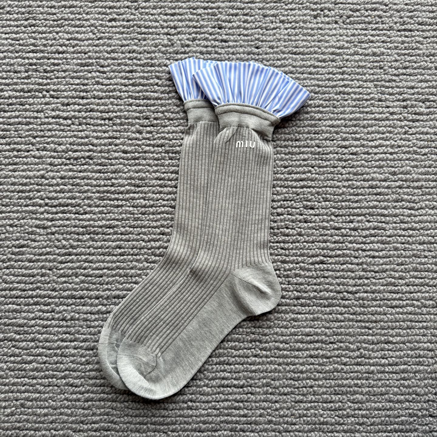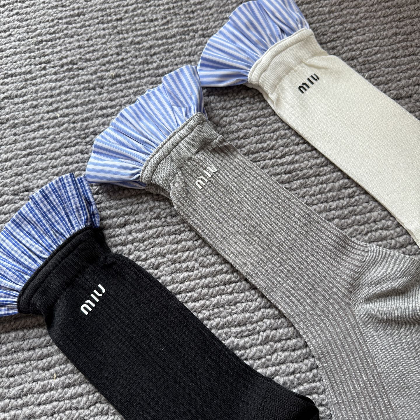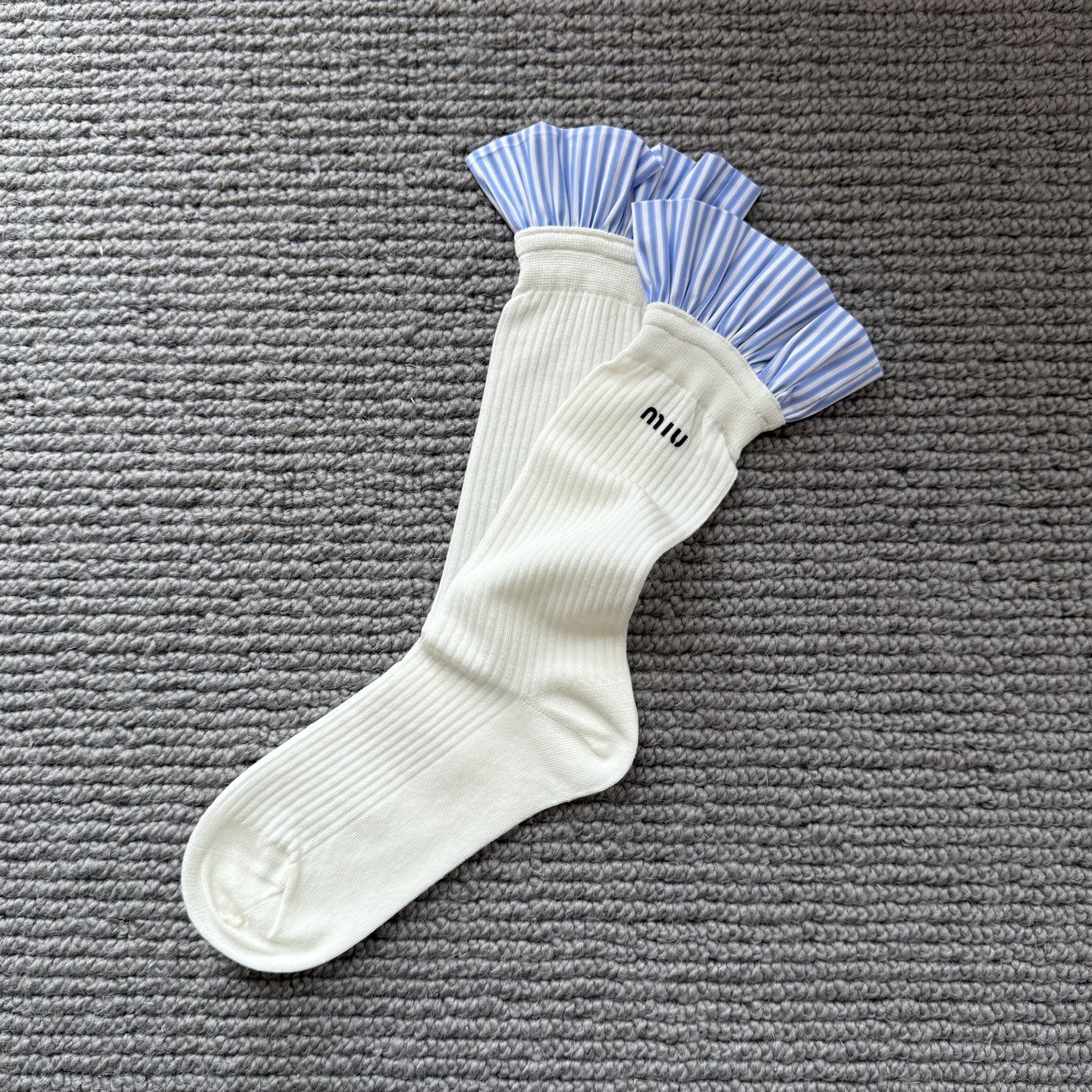 这款sock是AAAAA 1:1 质量 (非常棒). 使用了和原版一模一样的材料. 商标部分也保持了和缪缪/Miu Miu一样. 图片拍摄是实物sock拍摄, 您所收到的实物保证和我们图片一模一样.