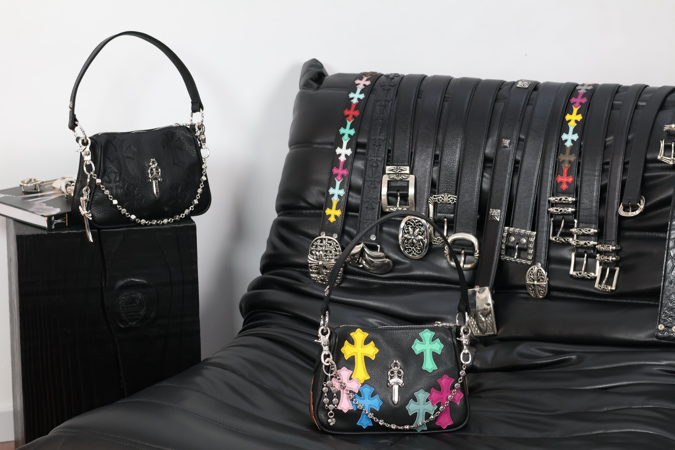 这款包包是AAAAA 1:1 质量 (非常棒). 使用了和原版一模一样的材料. 商标部分也保持了和克罗心/Chrome Hearts一样. 图片拍摄是实物包包拍摄, 您所收到的实物保证和我们图片一模一样.