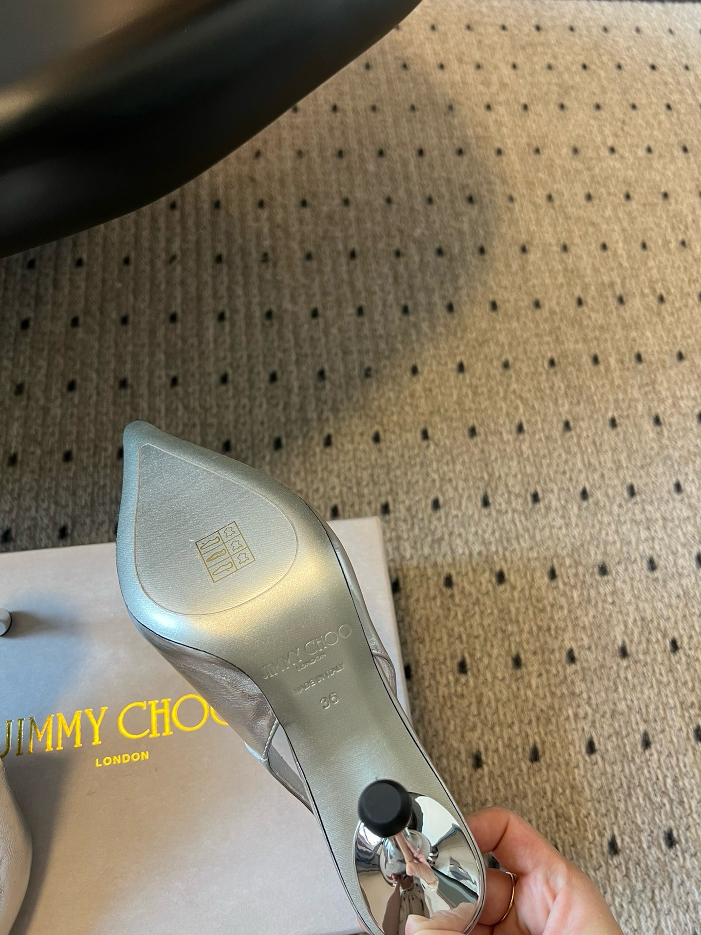 这款鞋子是AAAAA 1:1 质量 (非常棒). 使用了和原版一模一样的材料. 商标部分也保持了和吉米乔/JIMMY CHOO一样. 图片拍摄是实物鞋子拍摄, 您所收到的实物保证和我们图片一模一样.