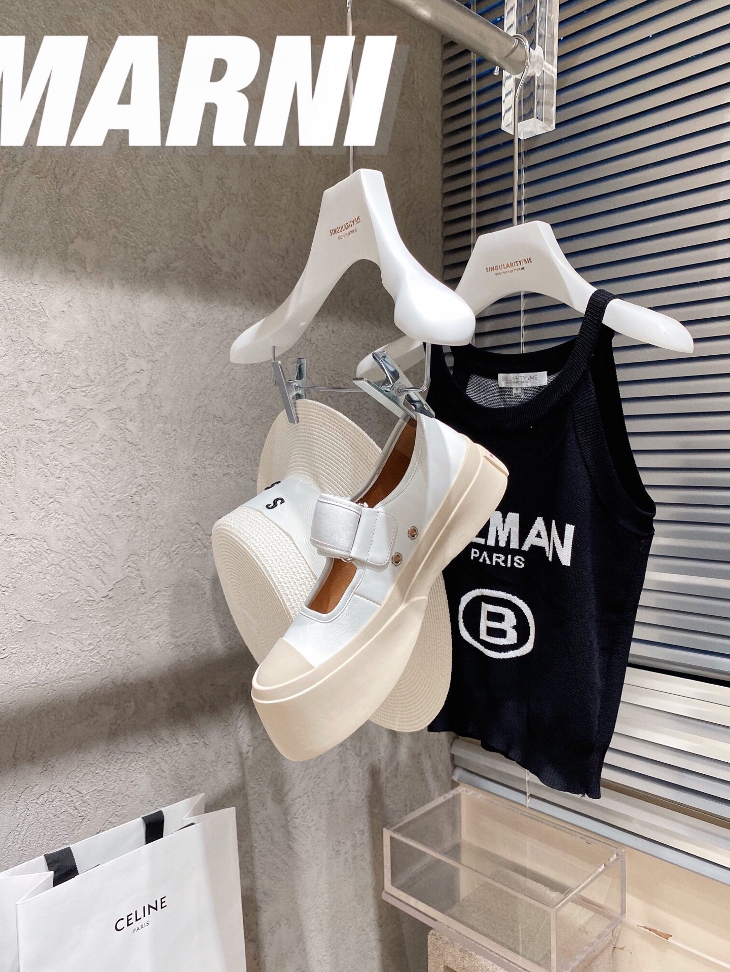 这款鞋子是AAAAA 1:1 质量 (非常棒). 使用了和原版一模一样的材料. 商标部分也保持了和马尔尼/Marni一样. 图片拍摄是实物鞋子拍摄, 您所收到的实物保证和我们图片一模一样.