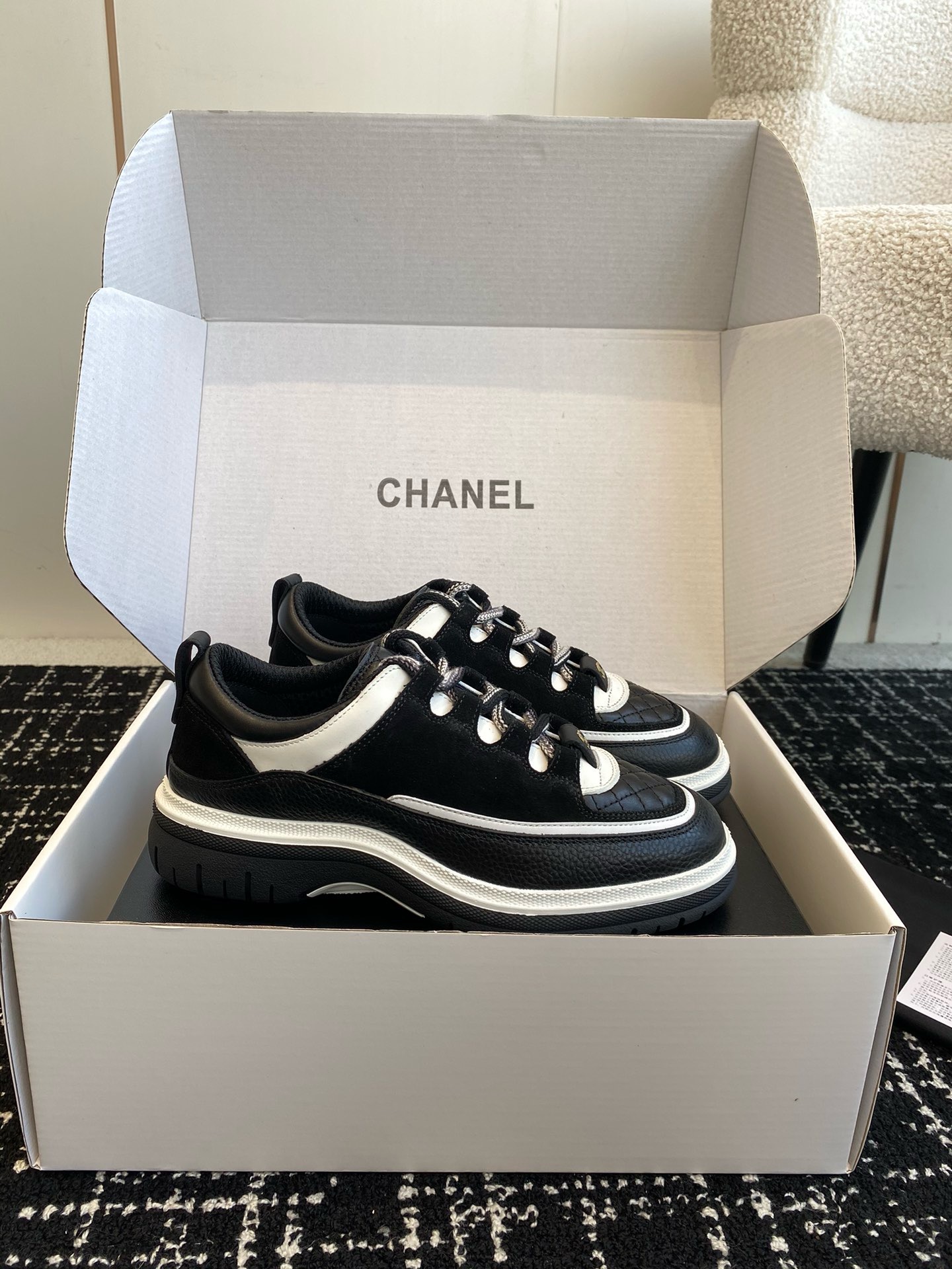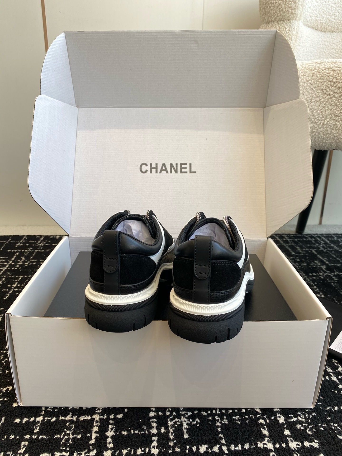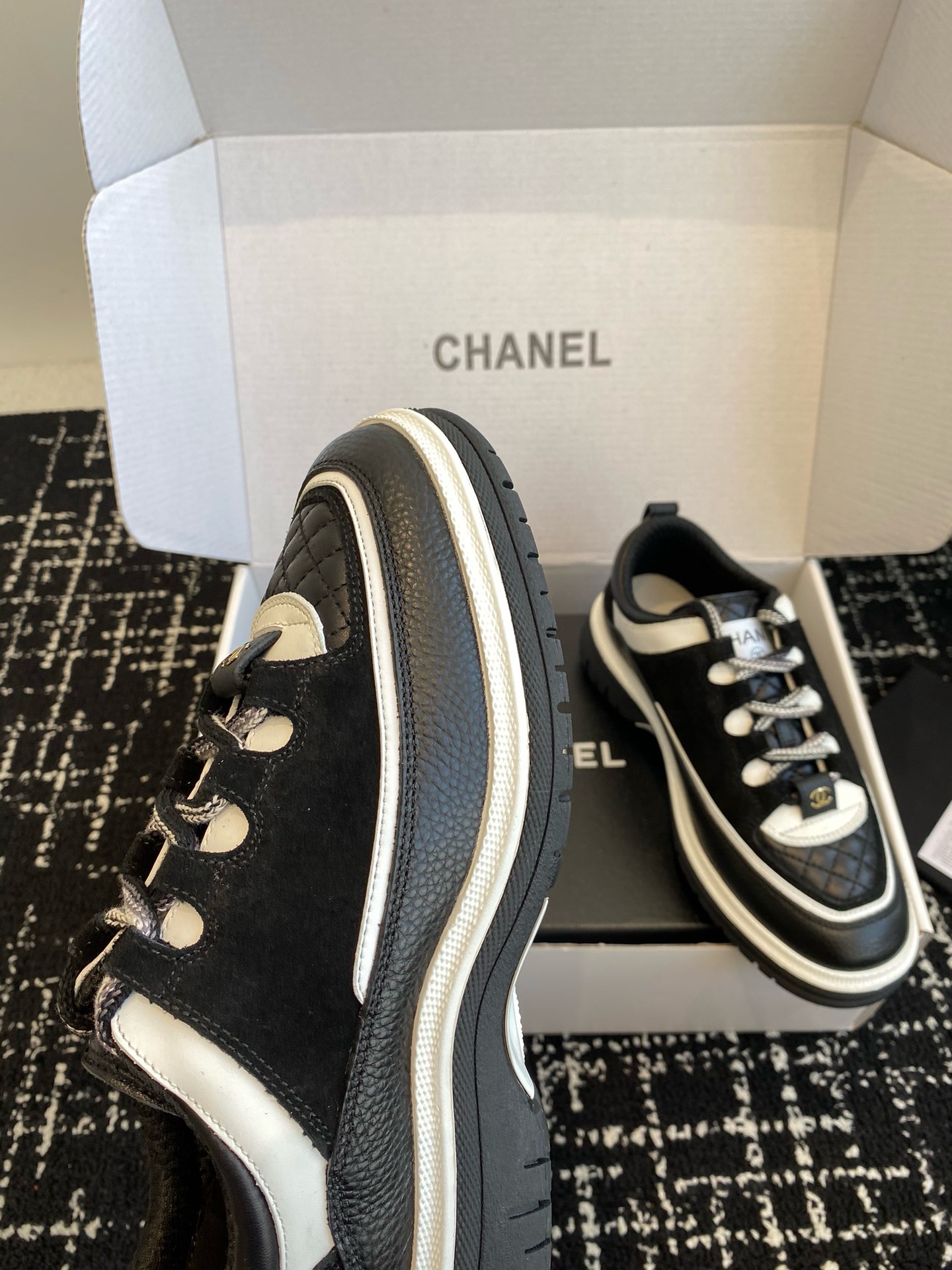 这款鞋子是AAAAA 1:1 质量 (非常棒). 使用了和原版一模一样的材料. 商标部分也保持了和香奈儿/Chanel一样. 图片拍摄是实物鞋子拍摄, 您所收到的实物保证和我们图片一模一样.