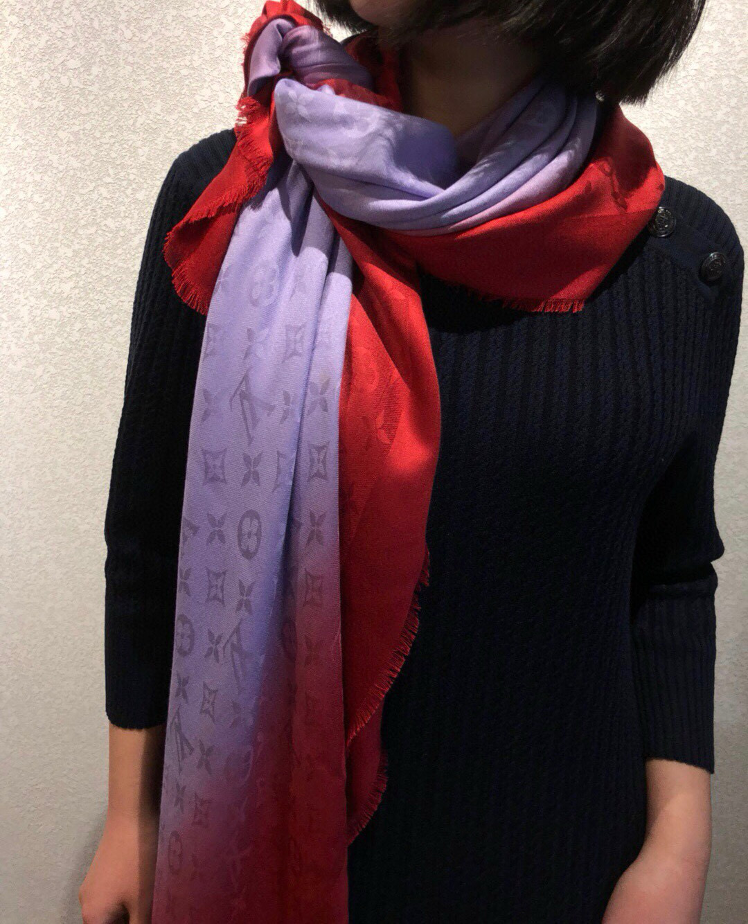 这款围巾是AAAAA 1:1 质量 (非常棒). 使用了和原版一模一样的材料. 商标部分也保持了和一样. 图片拍摄是实物围巾拍摄, 您所收到的实物保证和我们图片一模一样.