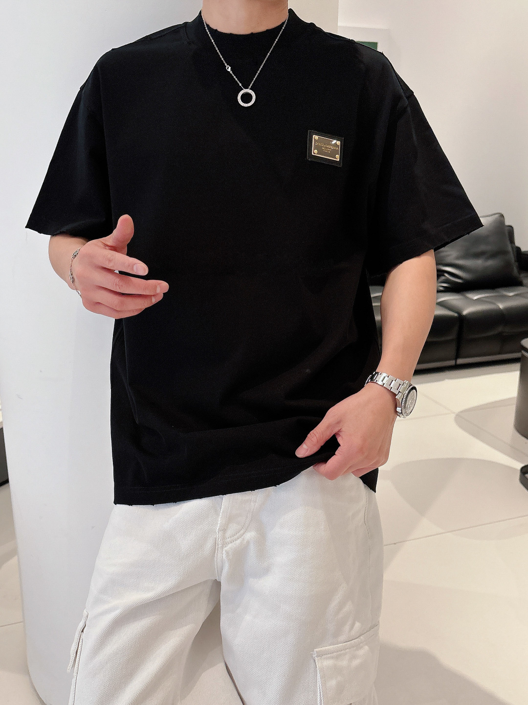 这款衣服是AAAAA 1:1 质量 (非常棒). 使用了和原版一模一样的材料. 商标部分也保持了和杜嘉班纳/Dolce&Gabbana一样. 图片拍摄是实物衣服拍摄, 您所收到的实物保证和我们图片一模一样.
