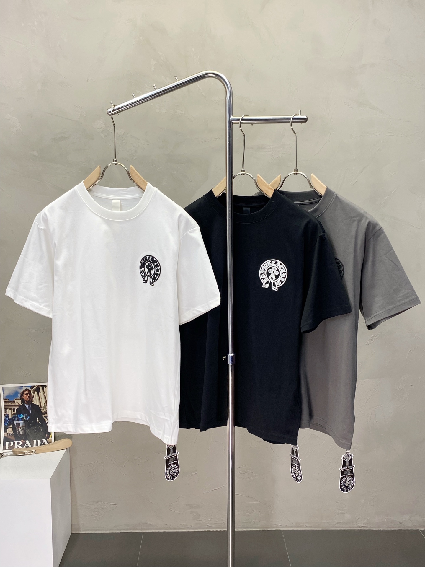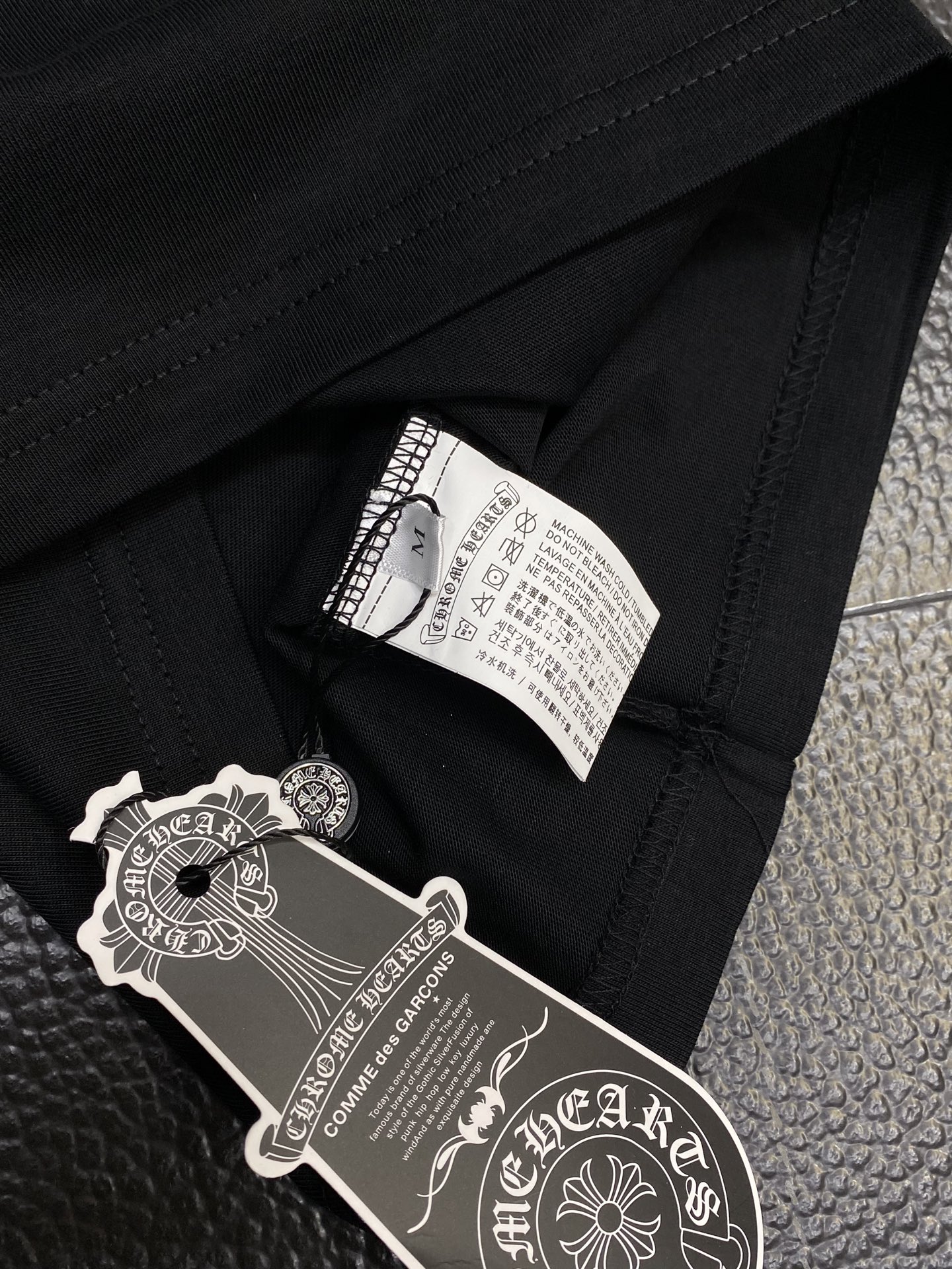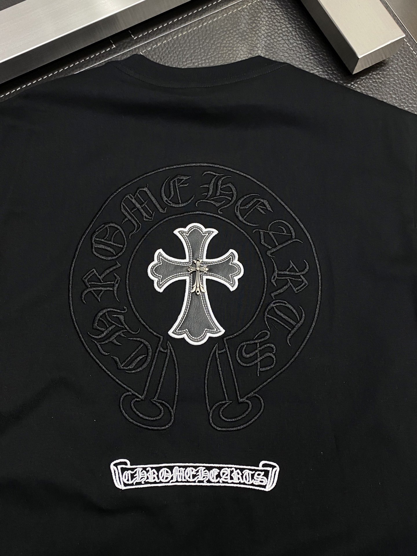 这款衣服是AAAAA 1:1 质量 (非常棒). 使用了和原版一模一样的材料. 商标部分也保持了和克罗心/Chrome Hearts一样. 图片拍摄是实物衣服拍摄, 您所收到的实物保证和我们图片一模一样.