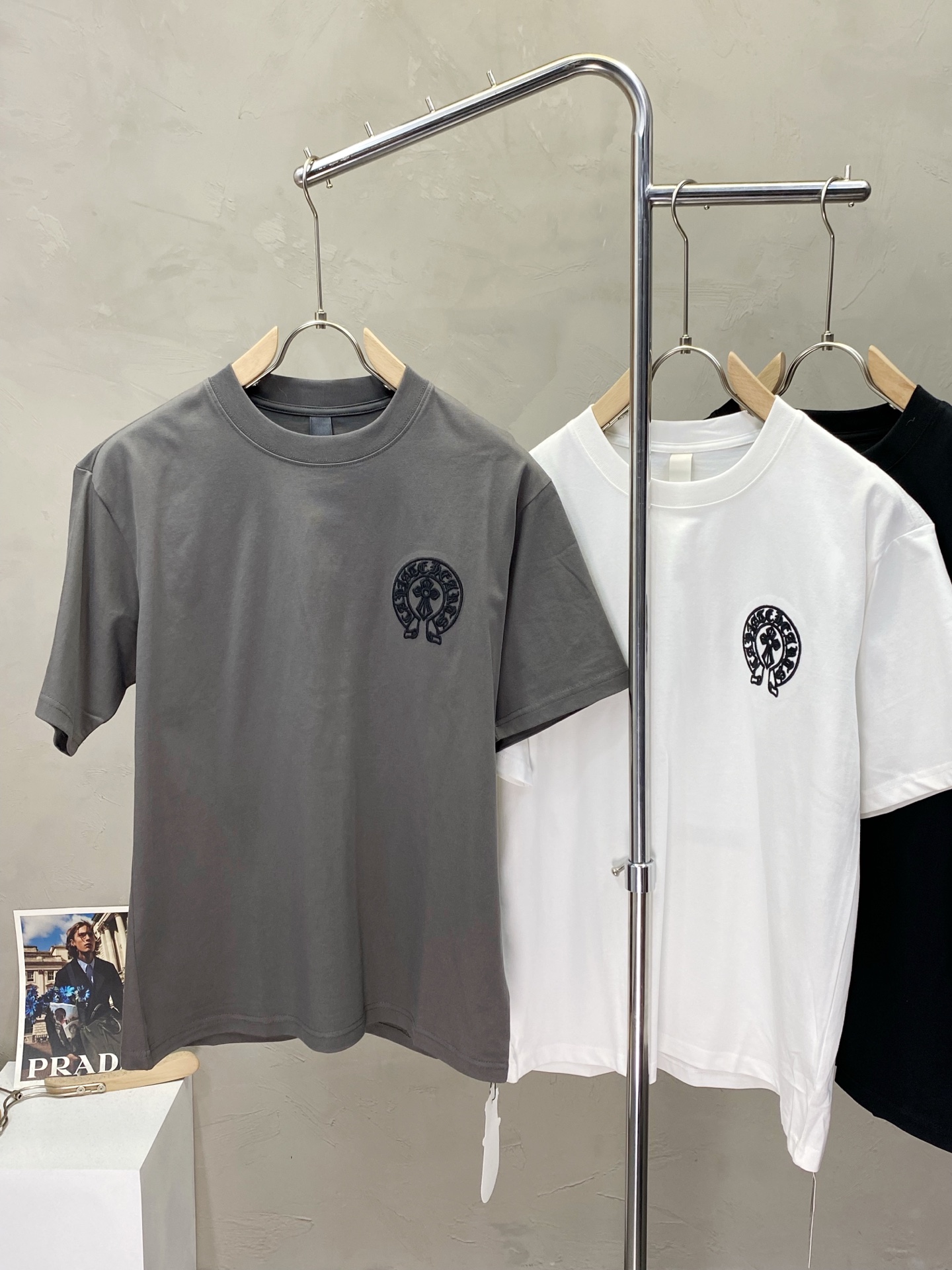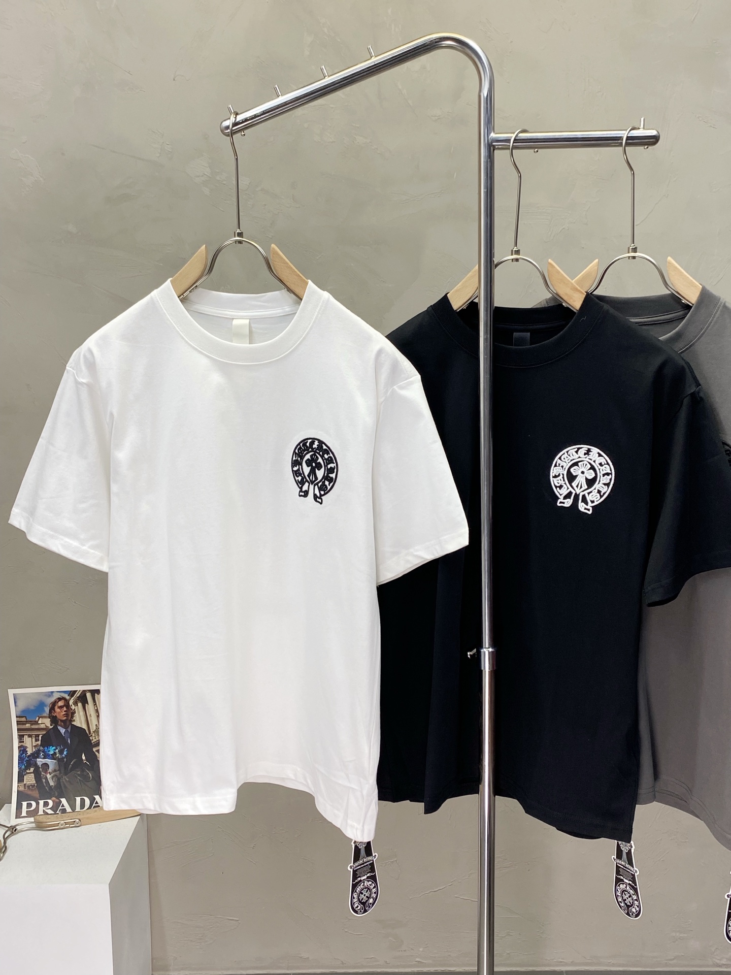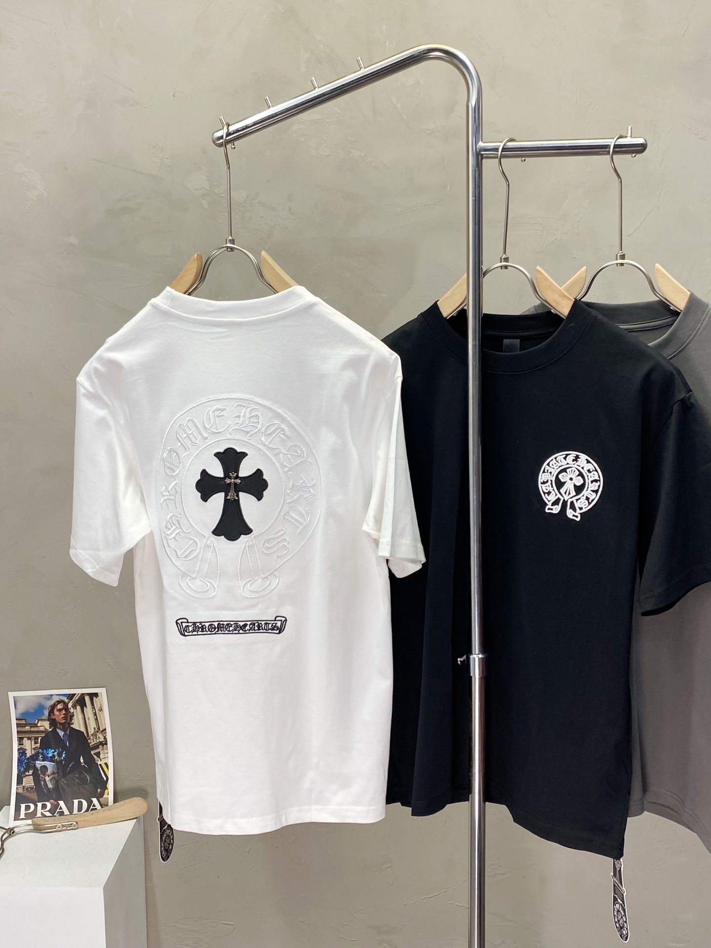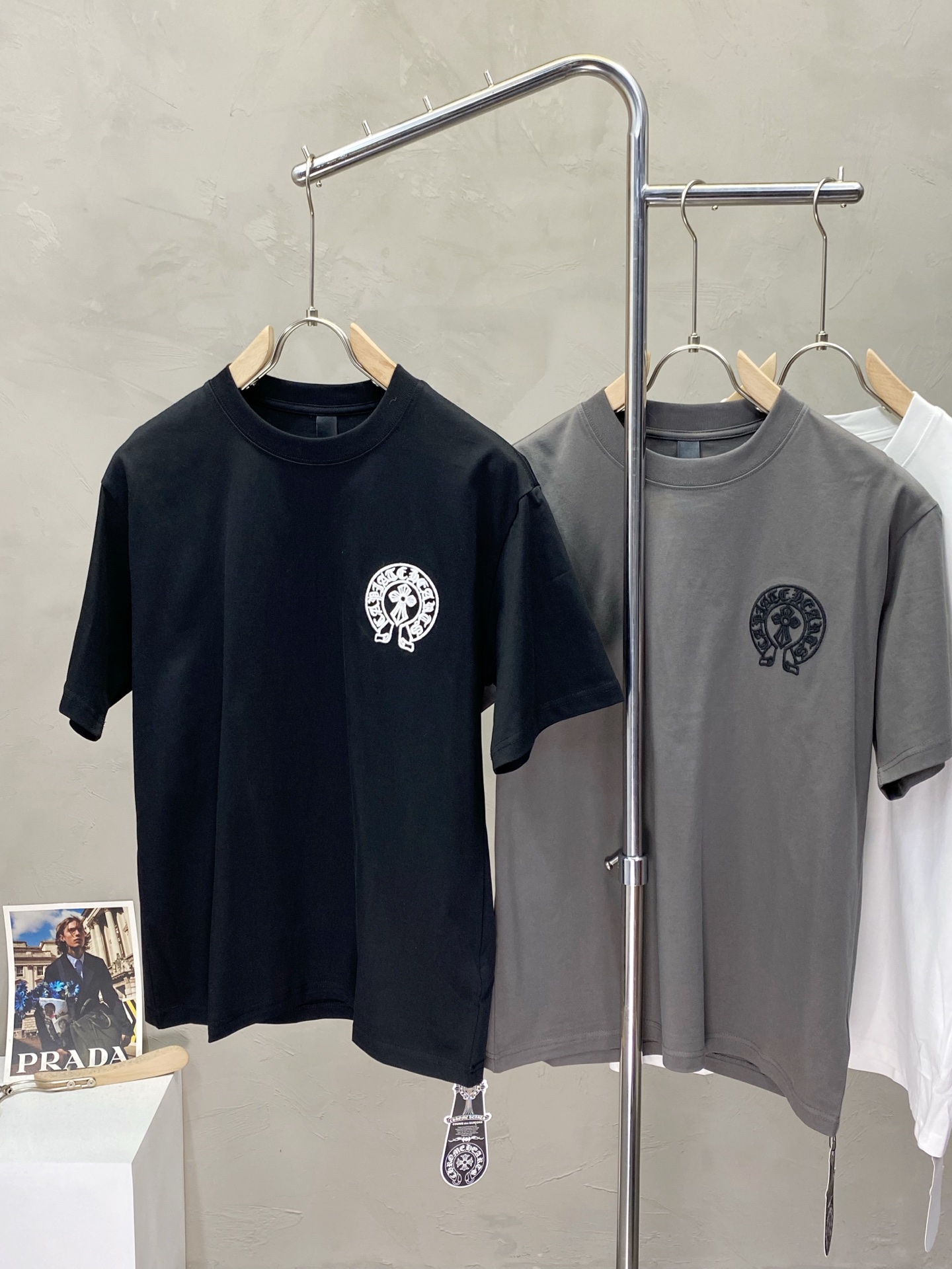 这款衣服是AAAAA 1:1 质量 (非常棒). 使用了和原版一模一样的材料. 商标部分也保持了和克罗心/Chrome Hearts一样. 图片拍摄是实物衣服拍摄, 您所收到的实物保证和我们图片一模一样.