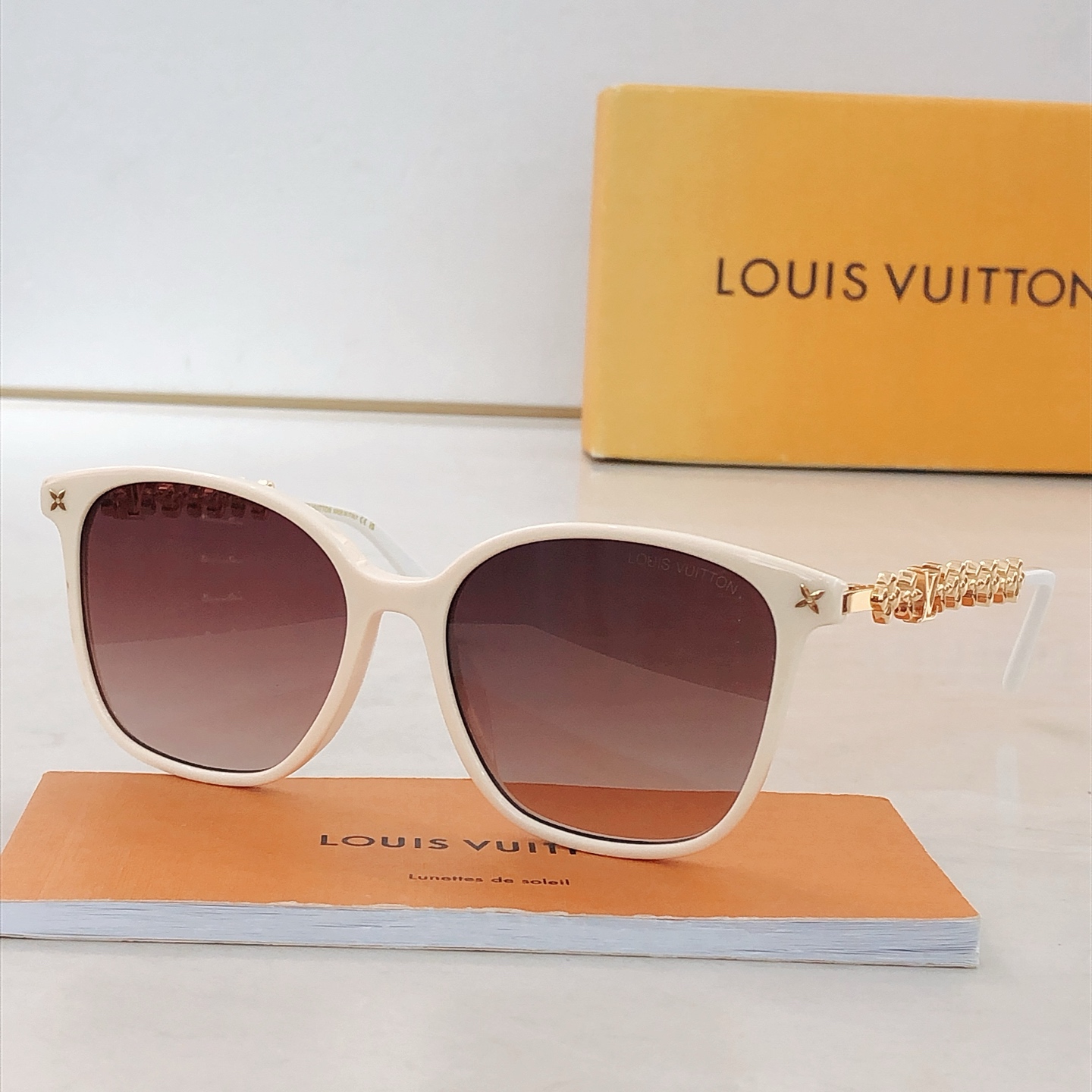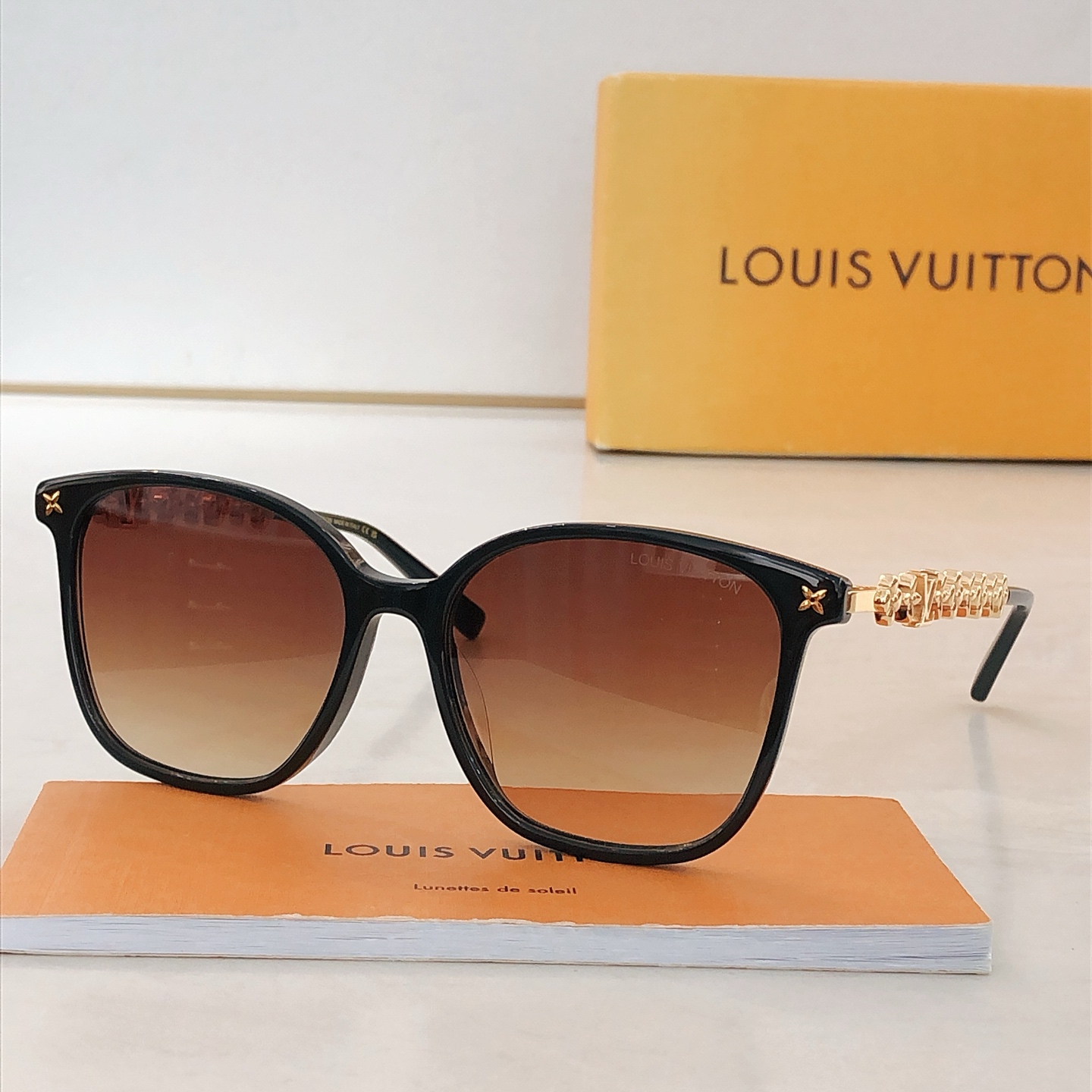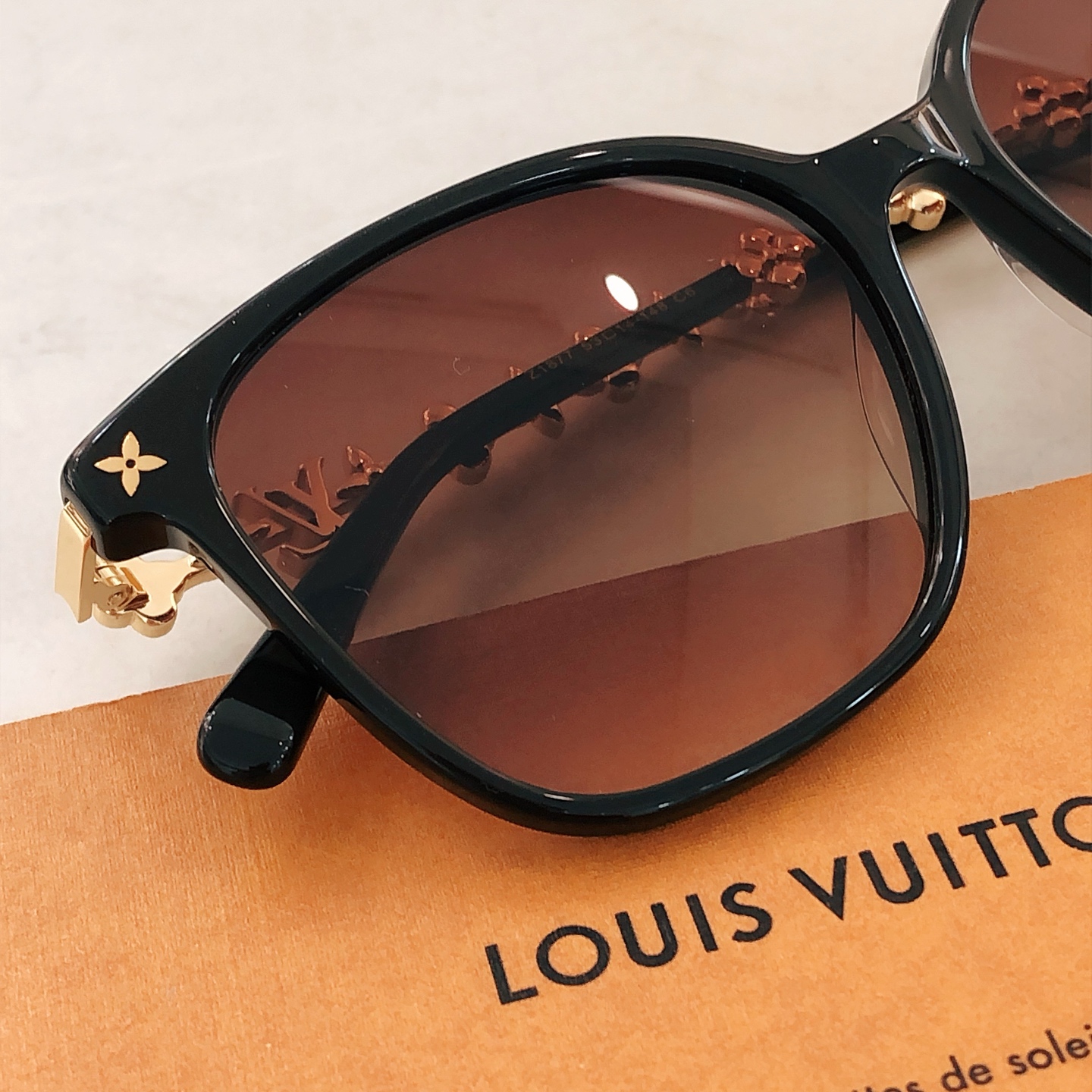 这款太阳眼镜是AAAAA 1:1 质量 (非常棒). 使用了和原版一模一样的材料. 商标部分也保持了和路易威登/Louis Vuitton一样. 图片拍摄是实物太阳眼镜拍摄, 您所收到的实物保证和我们图片一模一样.