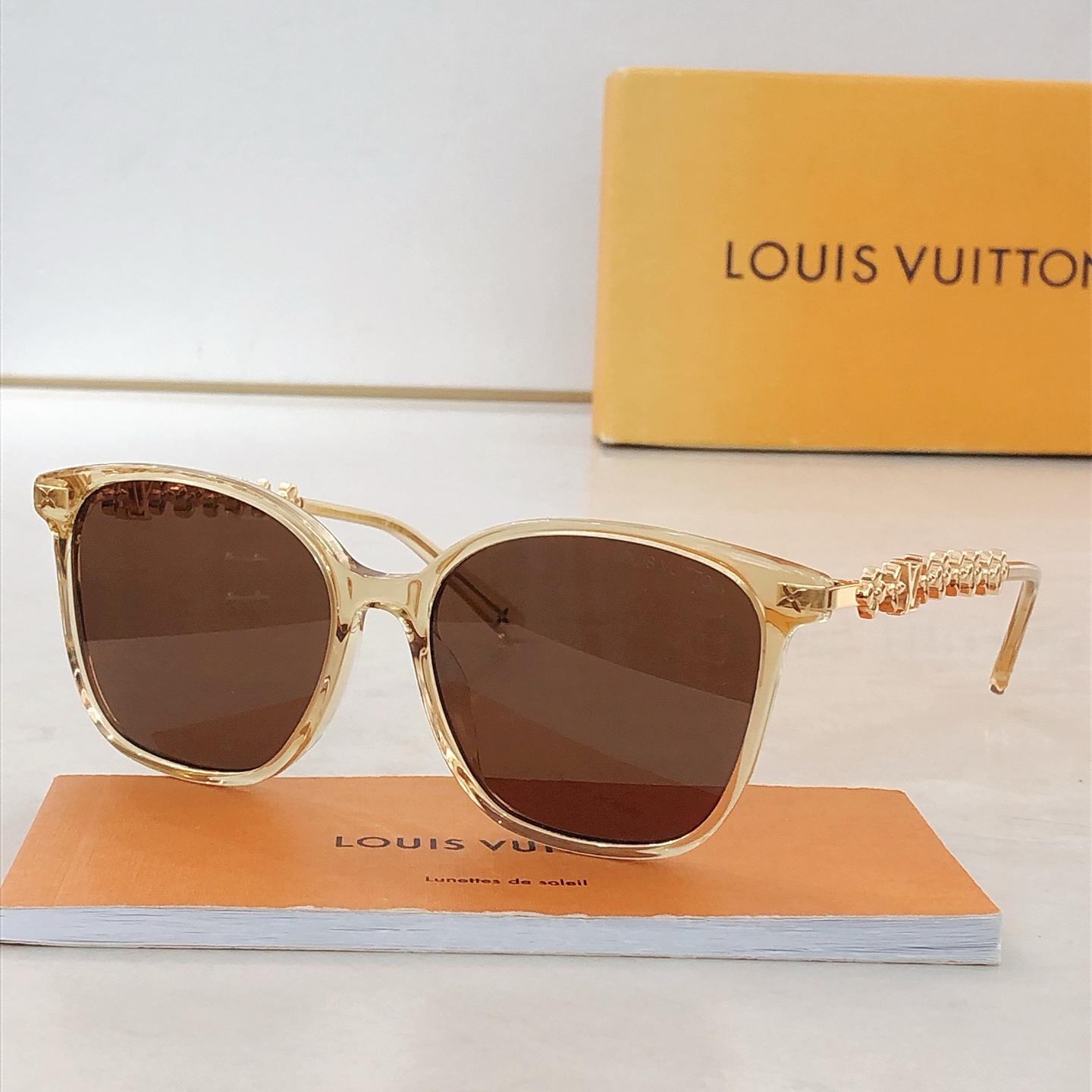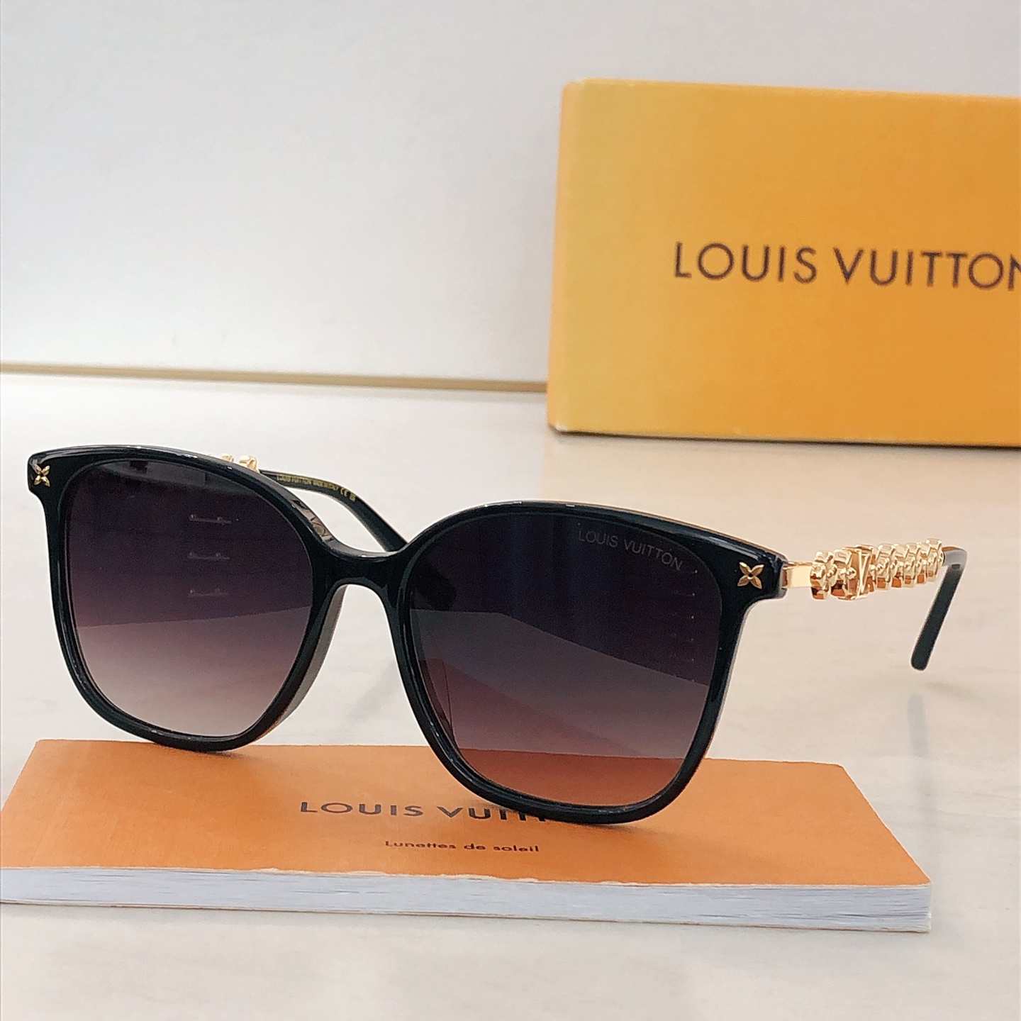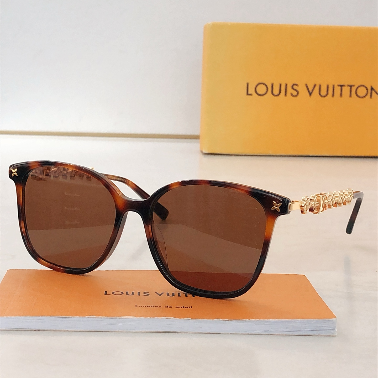 这款太阳眼镜是AAAAA 1:1 质量 (非常棒). 使用了和原版一模一样的材料. 商标部分也保持了和路易威登/Louis Vuitton一样. 图片拍摄是实物太阳眼镜拍摄, 您所收到的实物保证和我们图片一模一样.
