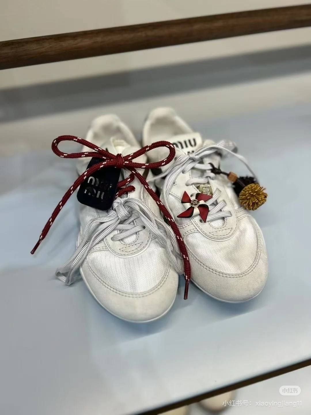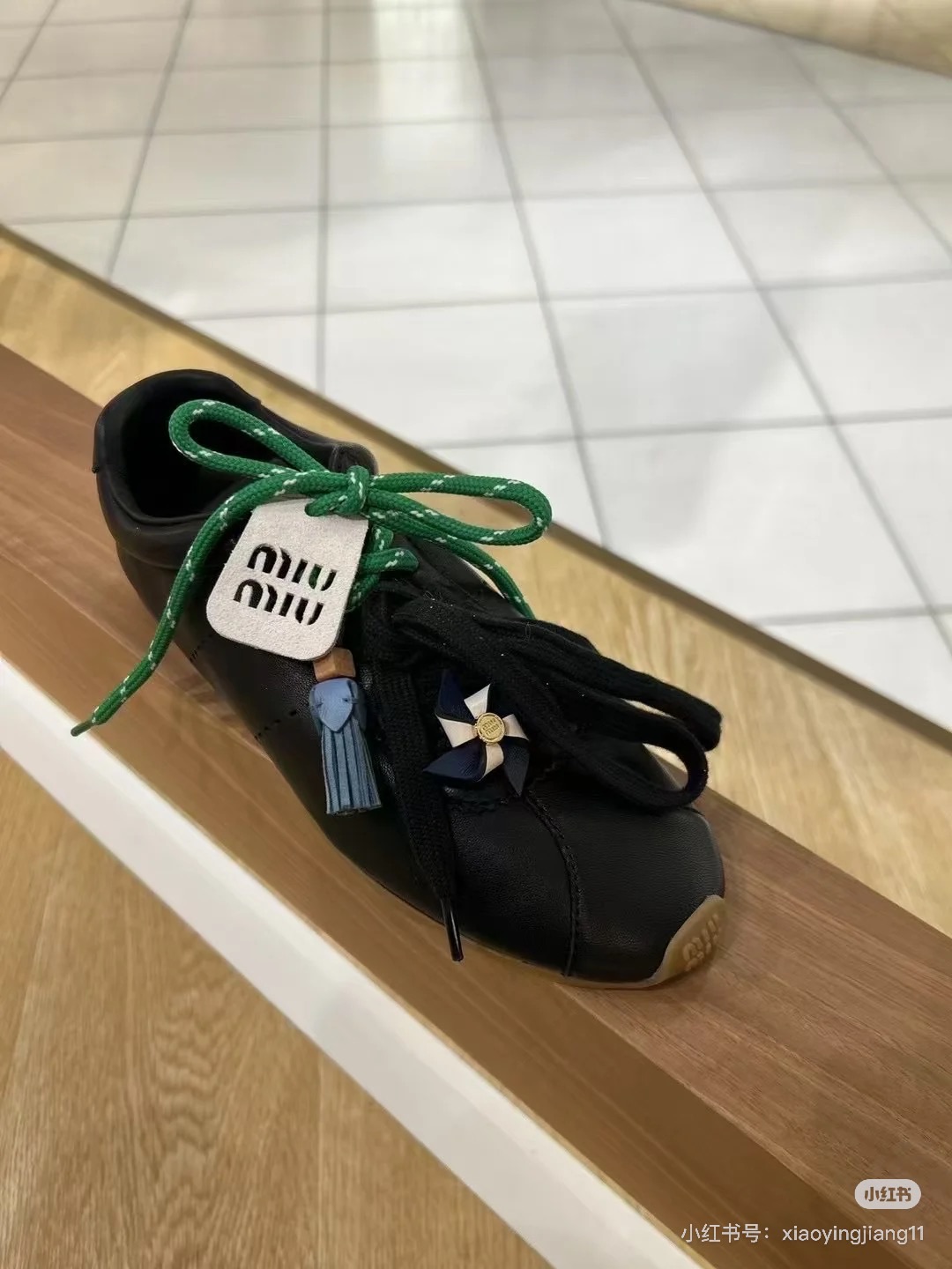 这款鞋子是AAAAA 1:1 质量 (非常棒). 使用了和原版一模一样的材料. 商标部分也保持了和缪缪/Miu Miu一样. 图片拍摄是实物鞋子拍摄, 您所收到的实物保证和我们图片一模一样.