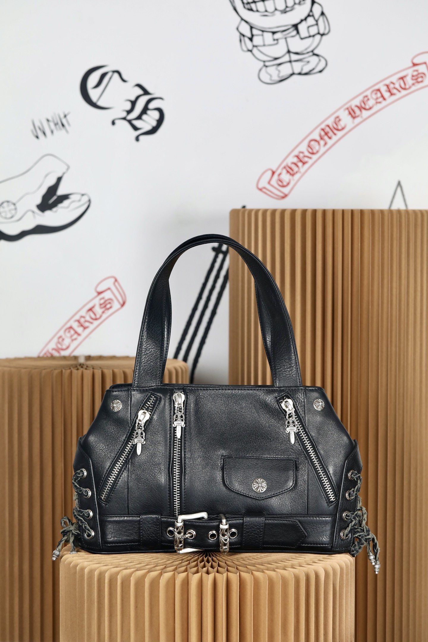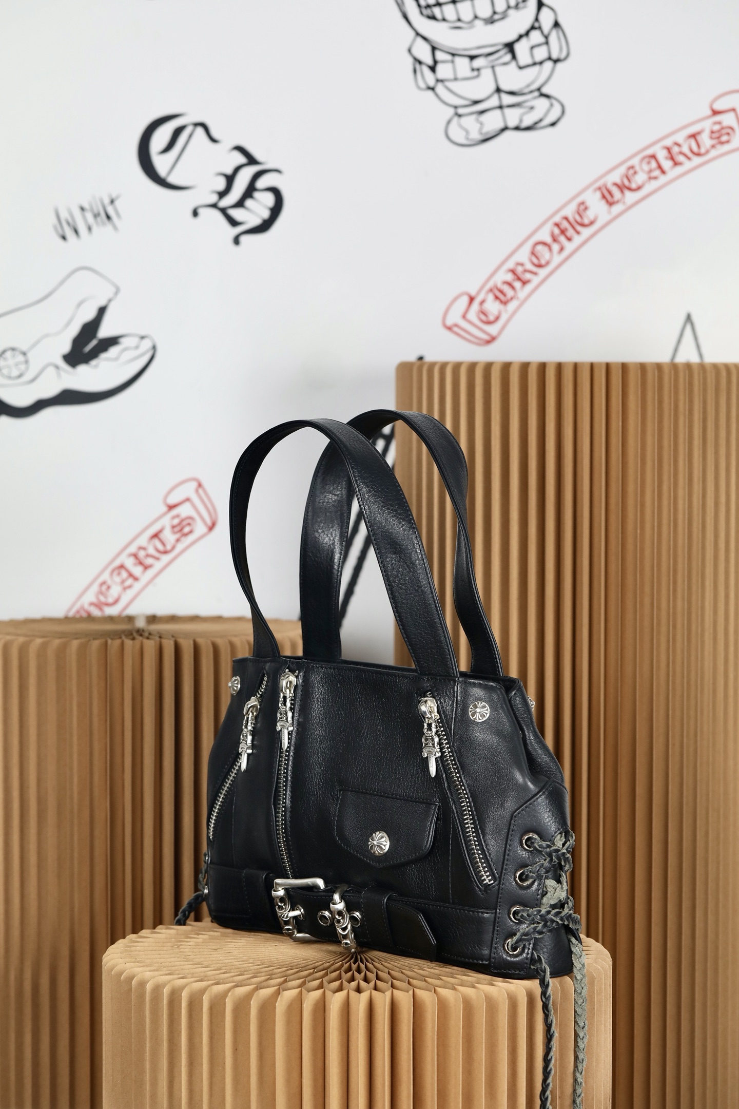 这款包包是AAAAA 1:1 质量 (非常棒). 使用了和原版一模一样的材料. 商标部分也保持了和克罗心/Chrome Hearts一样. 图片拍摄是实物包包拍摄, 您所收到的实物保证和我们图片一模一样.