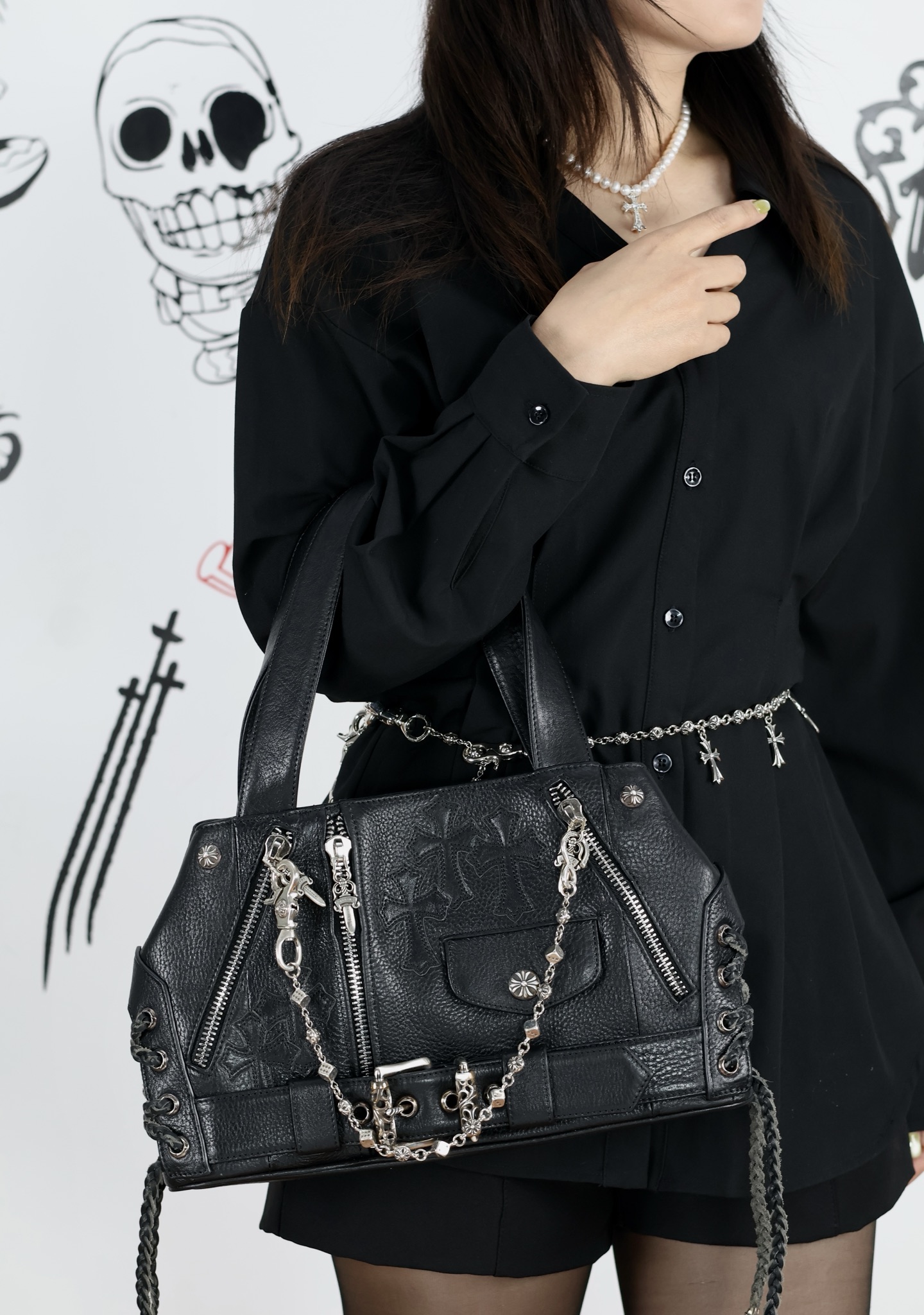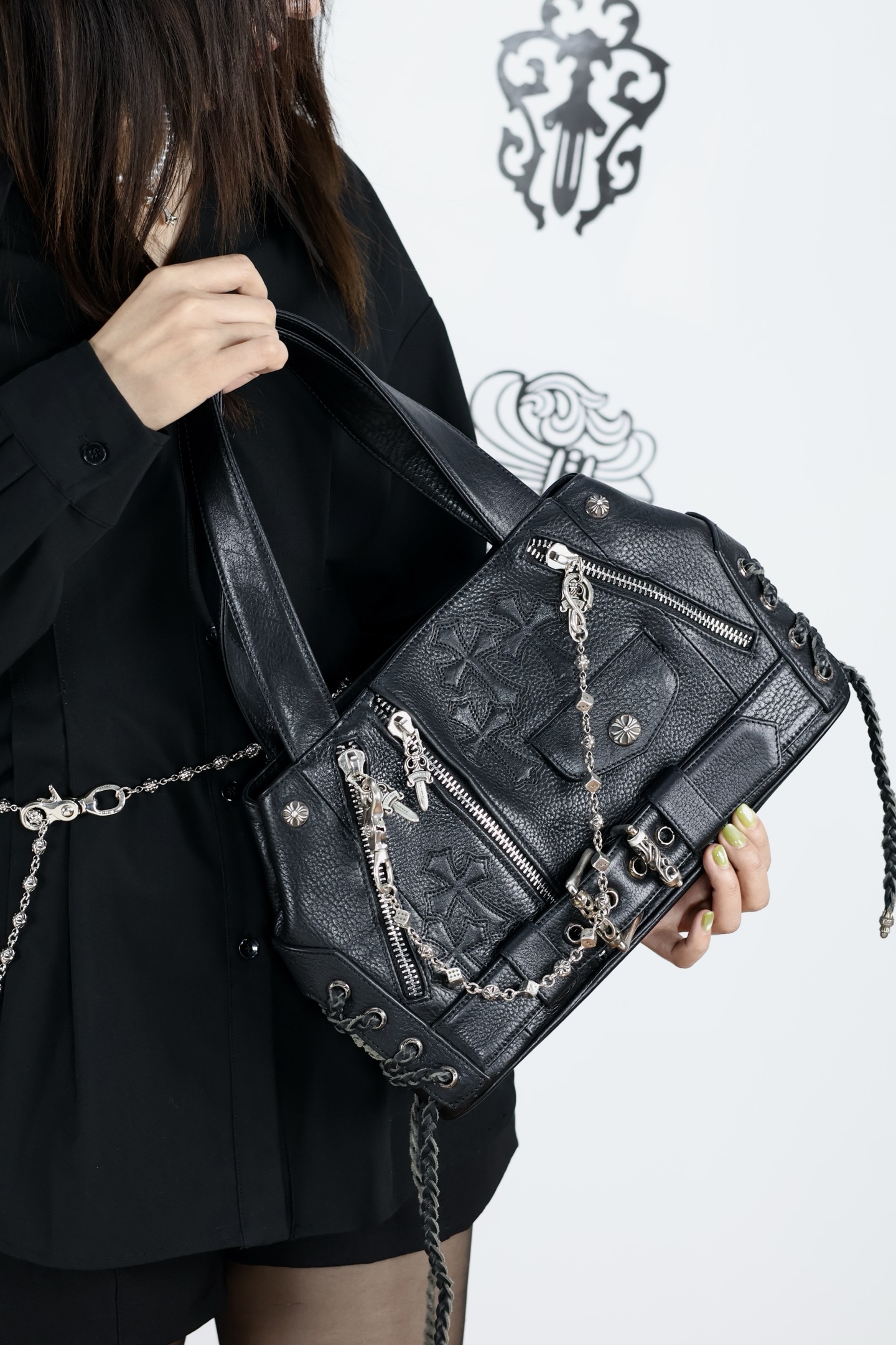 这款包包是AAAAA 1:1 质量 (非常棒). 使用了和原版一模一样的材料. 商标部分也保持了和克罗心/Chrome Hearts一样. 图片拍摄是实物包包拍摄, 您所收到的实物保证和我们图片一模一样.