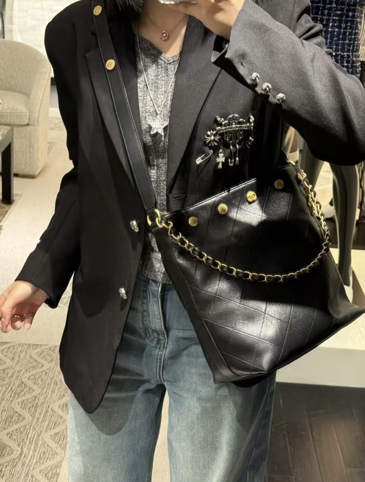 这款包包是AAAAA 1:1 质量 (非常棒). 使用了和原版一模一样的材料. 商标部分也保持了和香奈儿/Chanel一样. 图片拍摄是实物包包拍摄, 您所收到的实物保证和我们图片一模一样.