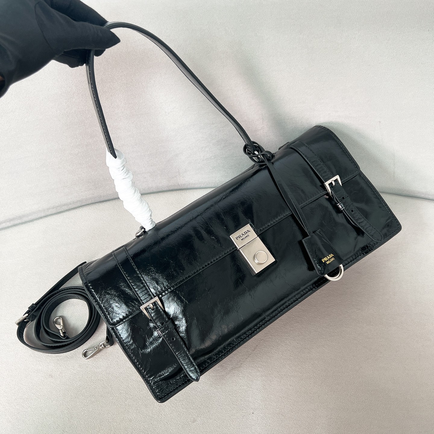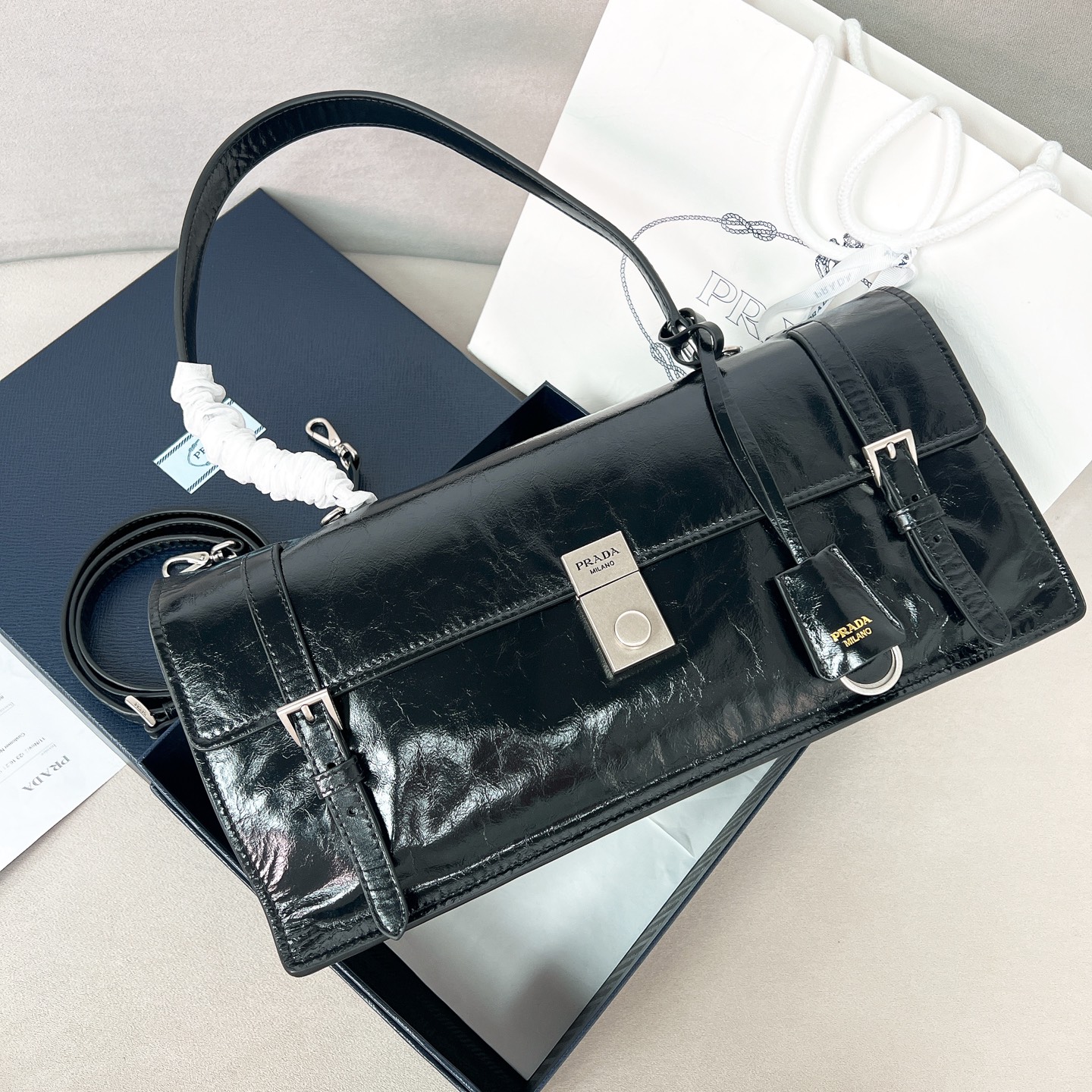 这款包包是AAAAA 1:1 质量 (非常棒). 使用了和原版一模一样的材料. 商标部分也保持了和普拉达/Prada一样. 图片拍摄是实物包包拍摄, 您所收到的实物保证和我们图片一模一样.