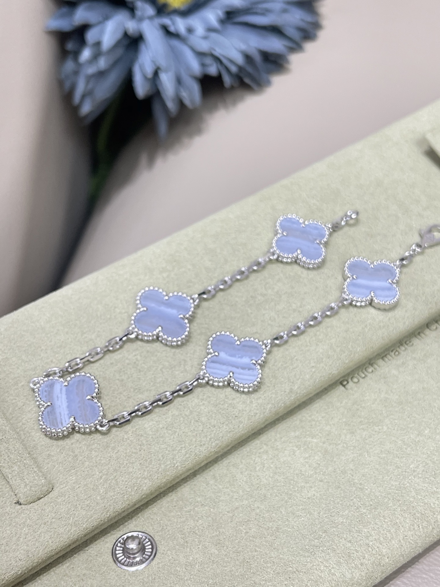 这款首饰是AAAAA 1:1 质量 (非常棒). 使用了和原版一模一样的材料. 商标部分也保持了和梵克雅宝/Van Cleef & Arpels一样. 图片拍摄是实物首饰拍摄, 您所收到的实物保证和我们图片一模一样.