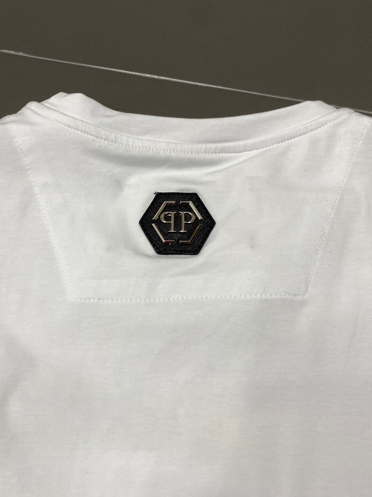 这款衣服是AAAAA 1:1 质量 (非常棒). 使用了和原版一模一样的材料. 商标部分也保持了和菲利普·普林/Philipp Plein一样. 图片拍摄是实物衣服拍摄, 您所收到的实物保证和我们图片一模一样.