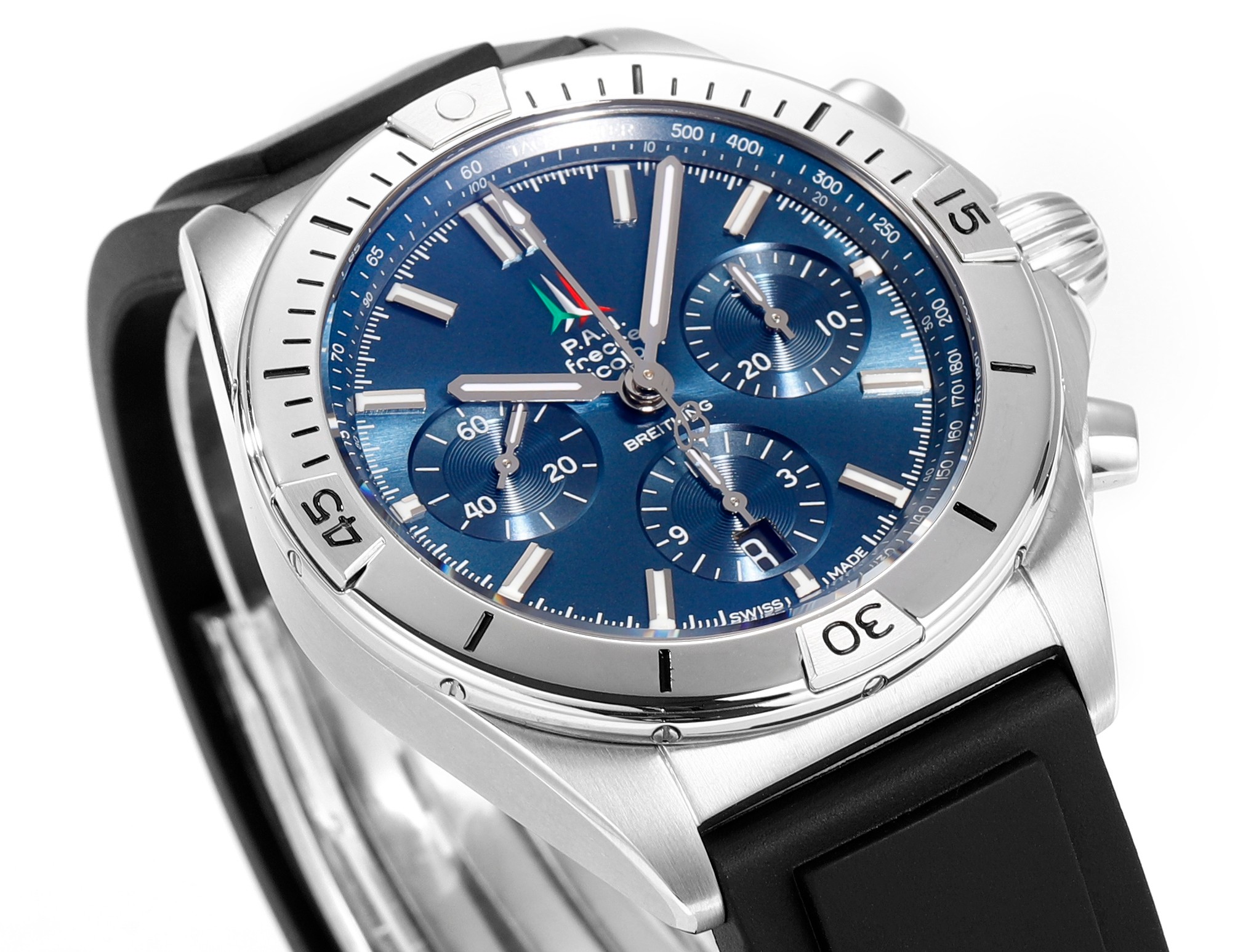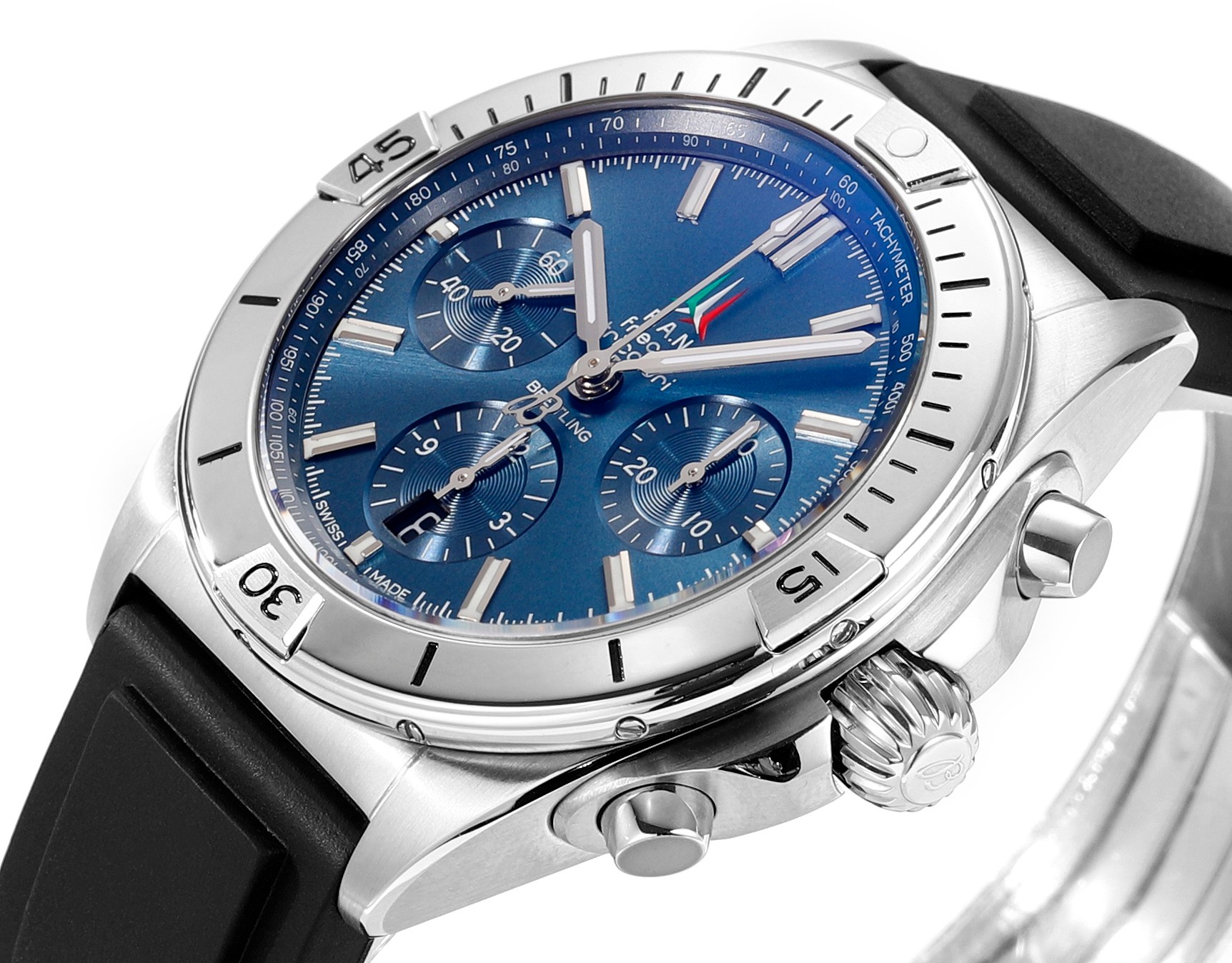 这款手表是AAAAA 1:1 质量 (非常棒). 使用了和原版一模一样的材料. 商标部分也保持了和Breitling一样. 图片拍摄是实物手表拍摄, 您所收到的实物保证和我们图片一模一样.
