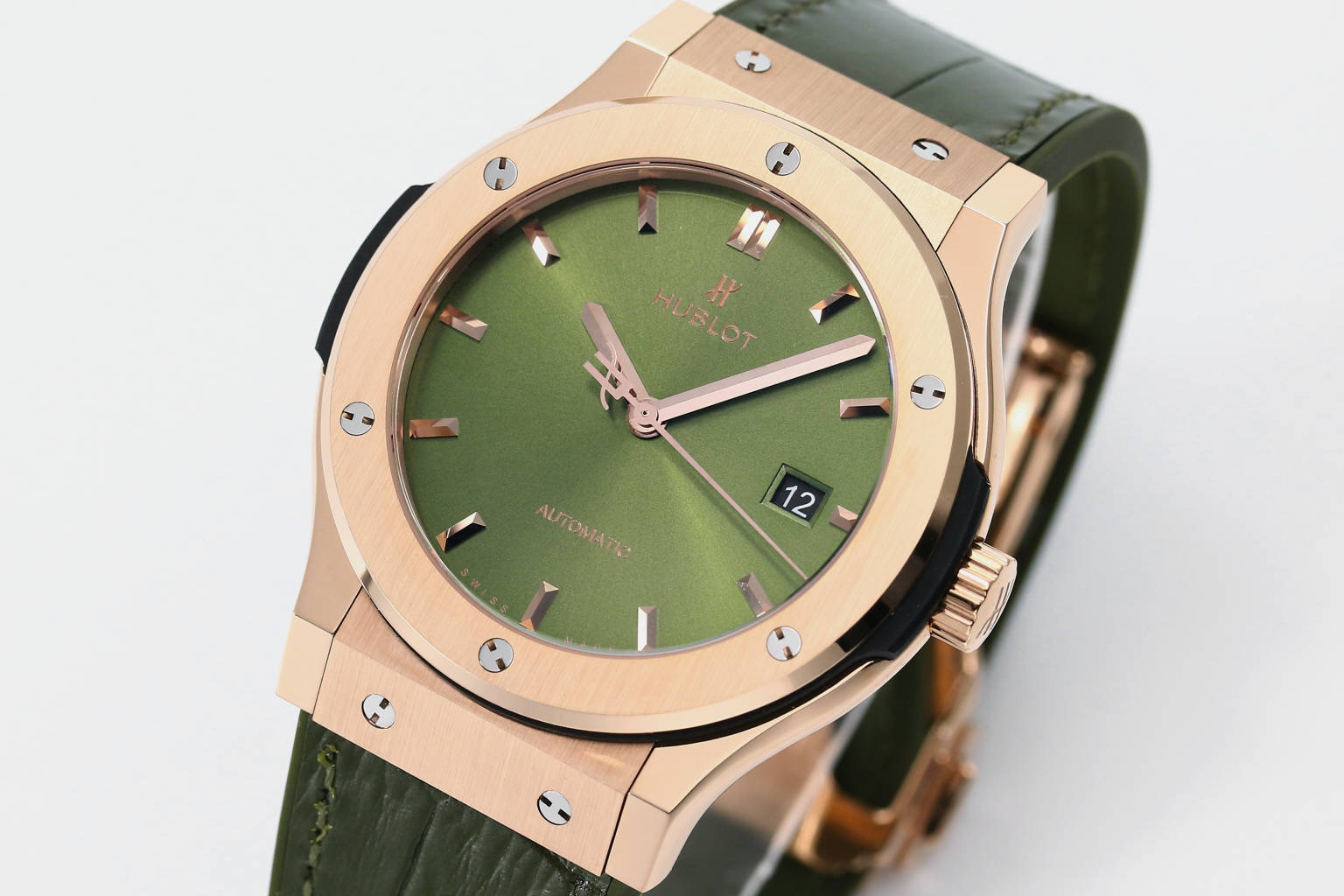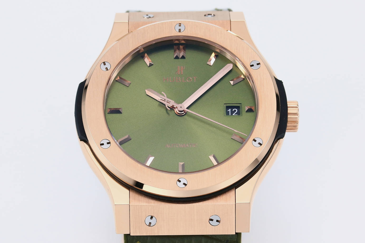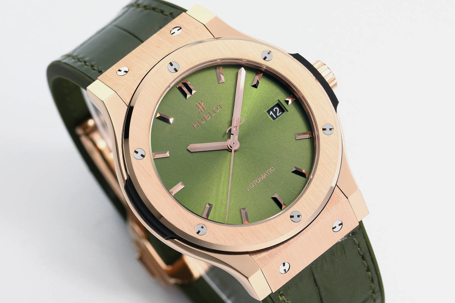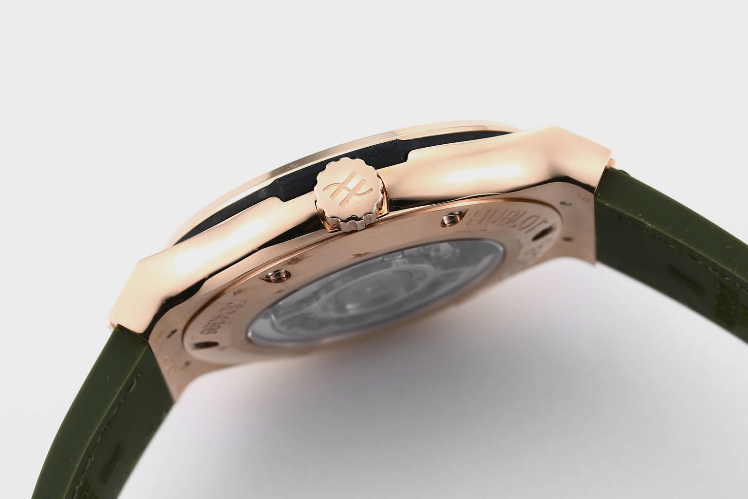 这款手表是AAAAA 1:1 质量 (非常棒). 使用了和原版一模一样的材料. 商标部分也保持了和Hublot一样. 图片拍摄是实物手表拍摄, 您所收到的实物保证和我们图片一模一样.