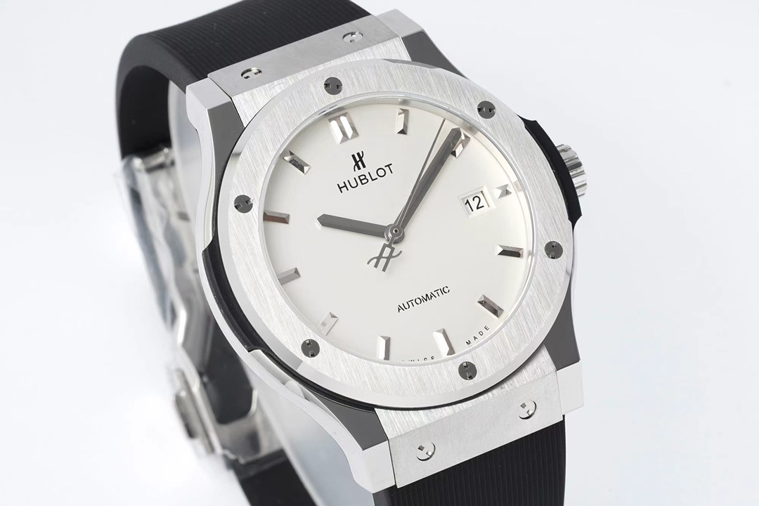 这款手表是AAAAA 1:1 质量 (非常棒). 使用了和原版一模一样的材料. 商标部分也保持了和Hublot一样. 图片拍摄是实物手表拍摄, 您所收到的实物保证和我们图片一模一样.