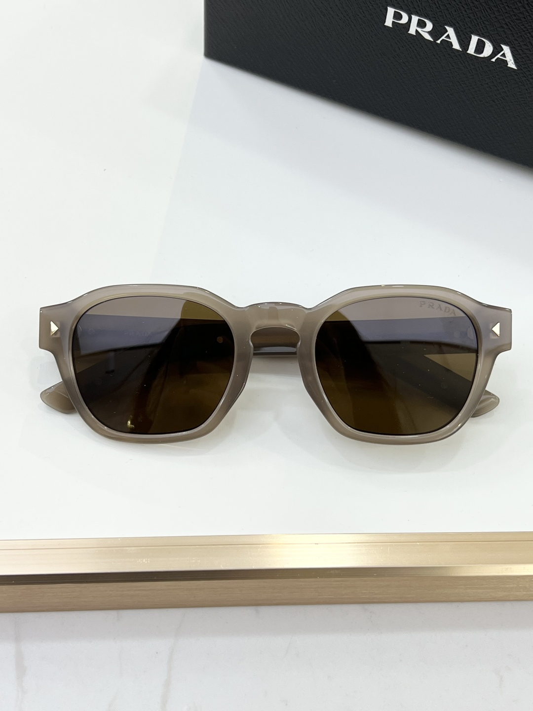 这款太阳眼镜是AAAAA 1:1 质量 (非常棒). 使用了和原版一模一样的材料. 商标部分也保持了和普拉达/Prada一样. 图片拍摄是实物太阳眼镜拍摄, 您所收到的实物保证和我们图片一模一样.