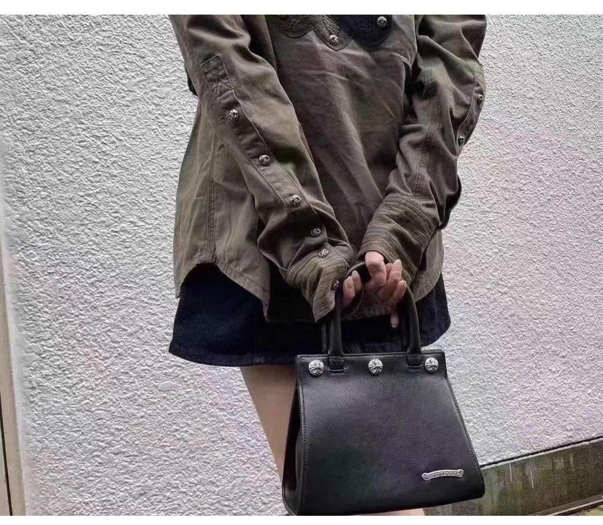 这款包包是AAAAA 1:1 质量 (非常棒). 使用了和原版一模一样的材料. 商标部分也保持了和克罗心/Chrome Hearts一样. 图片拍摄是实物包包拍摄, 您所收到的实物保证和我们图片一模一样.