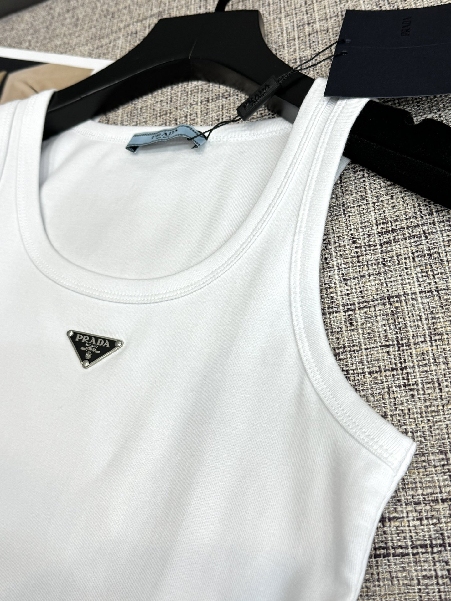 这款衣服是AAAAA 1:1 质量 (非常棒). 使用了和原版一模一样的材料. 商标部分也保持了和普拉达/Prada一样. 图片拍摄是实物衣服拍摄, 您所收到的实物保证和我们图片一模一样.