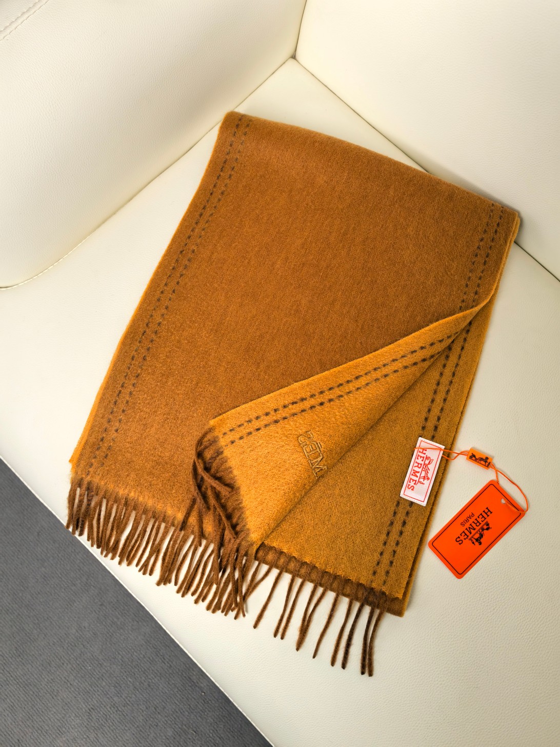 这款围巾是AAAAA 1:1 质量 (非常棒). 使用了和原版一模一样的材料. 商标部分也保持了和爱马仕/Hermes一样. 图片拍摄是实物围巾拍摄, 您所收到的实物保证和我们图片一模一样.