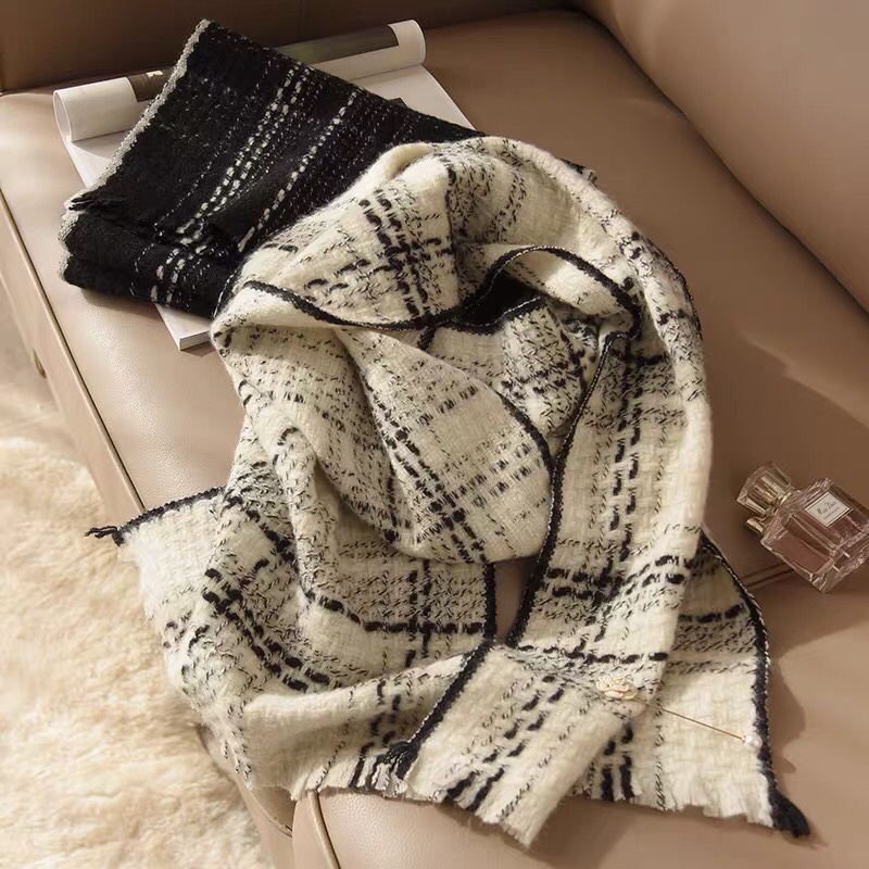这款围巾是AAAAA 1:1 质量 (非常棒). 使用了和原版一模一样的材料. 商标部分也保持了和香奈儿/Chanel一样. 图片拍摄是实物围巾拍摄, 您所收到的实物保证和我们图片一模一样.