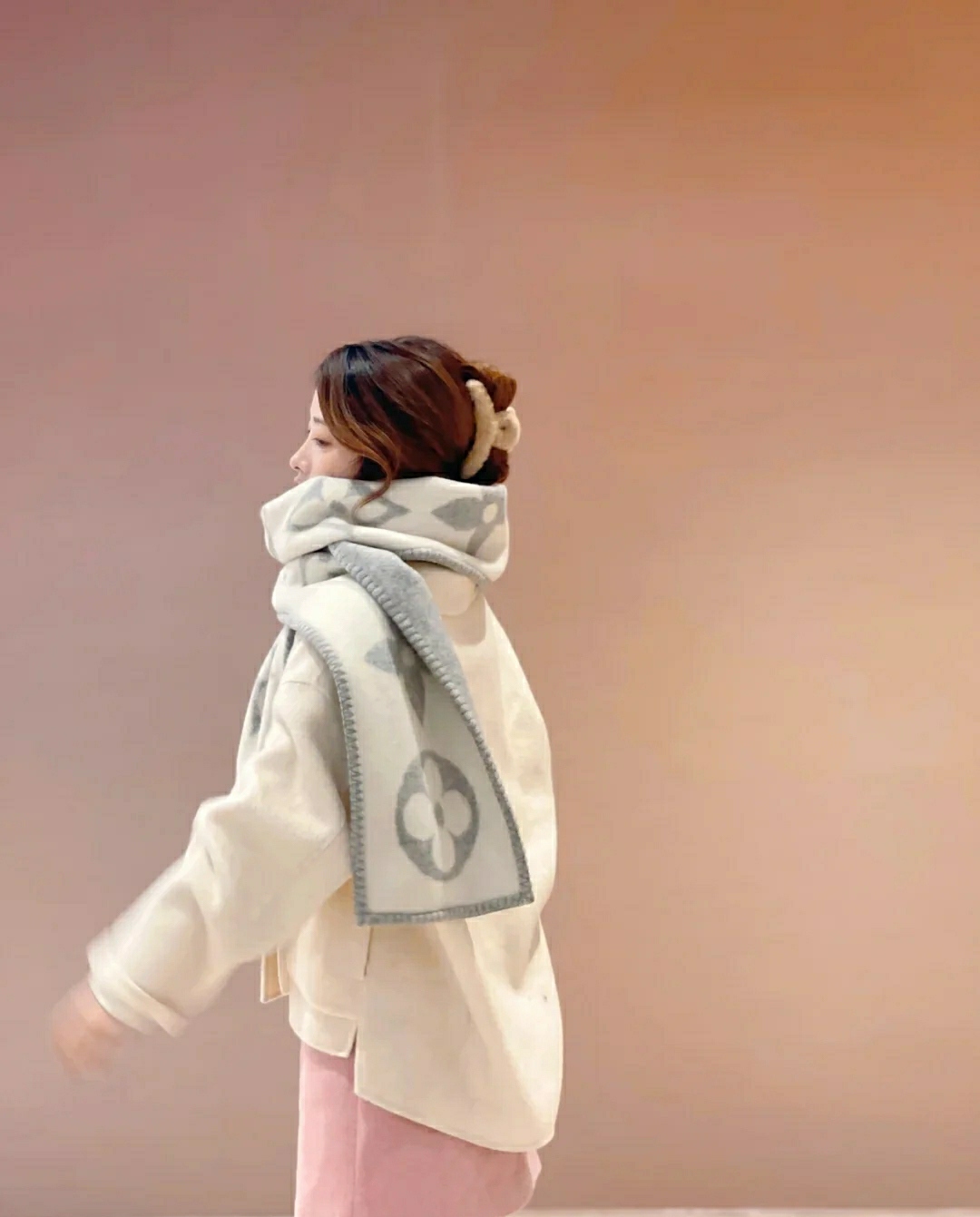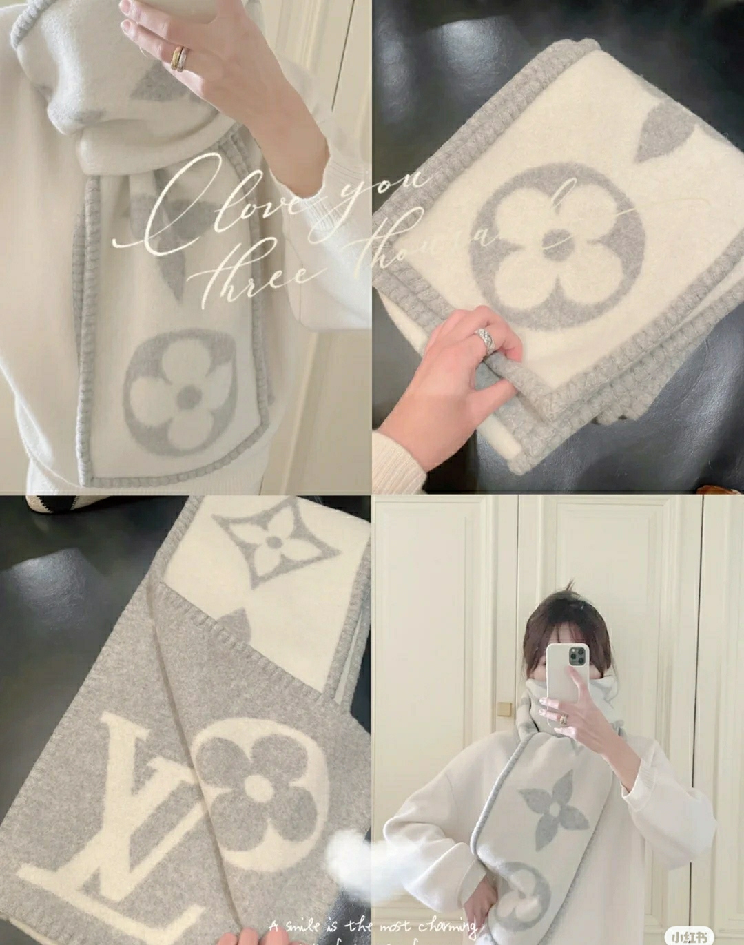 这款围巾是AAAAA 1:1 质量 (非常棒). 使用了和原版一模一样的材料. 商标部分也保持了和路易威登/Louis Vuitton一样. 图片拍摄是实物围巾拍摄, 您所收到的实物保证和我们图片一模一样.