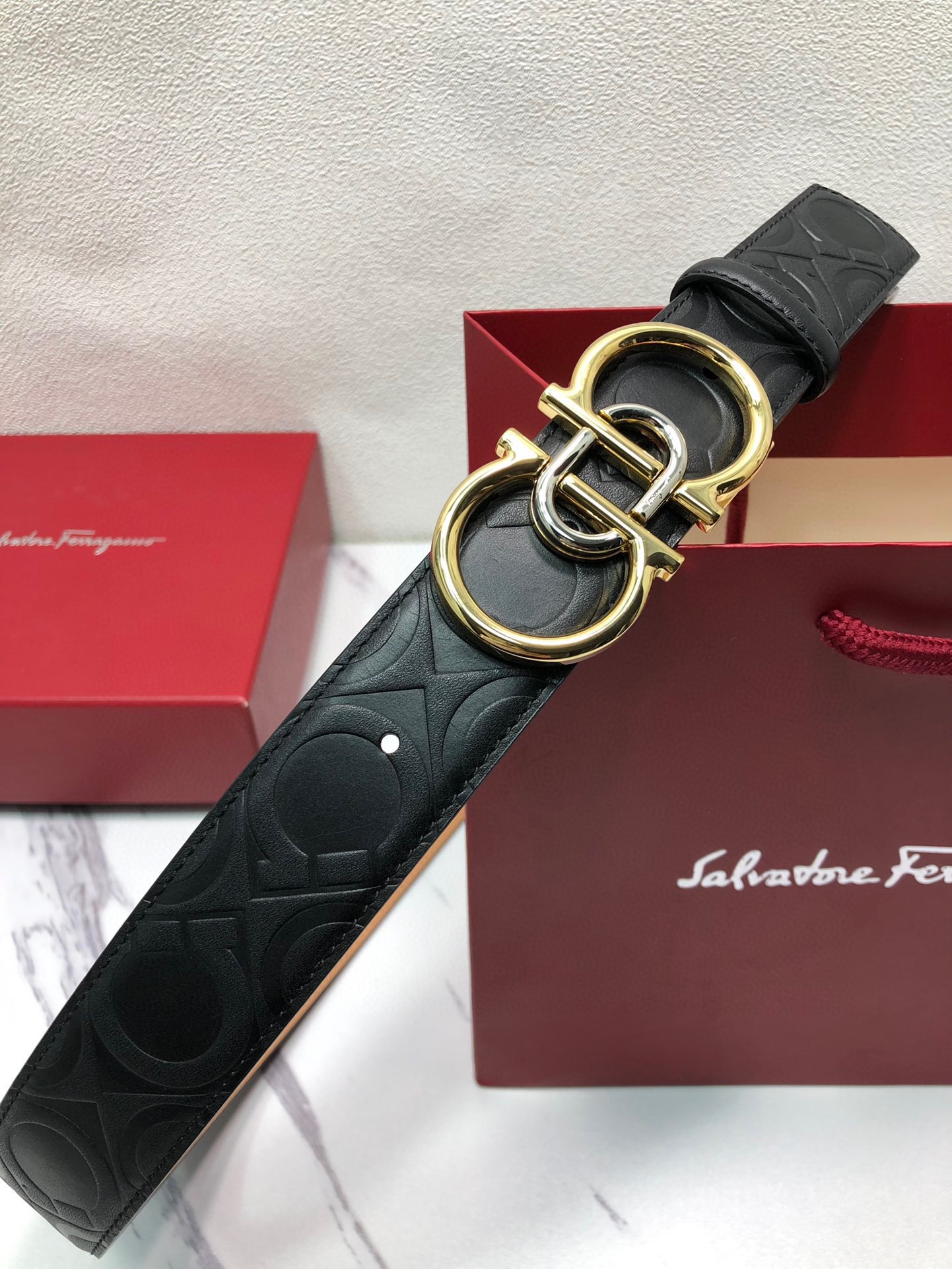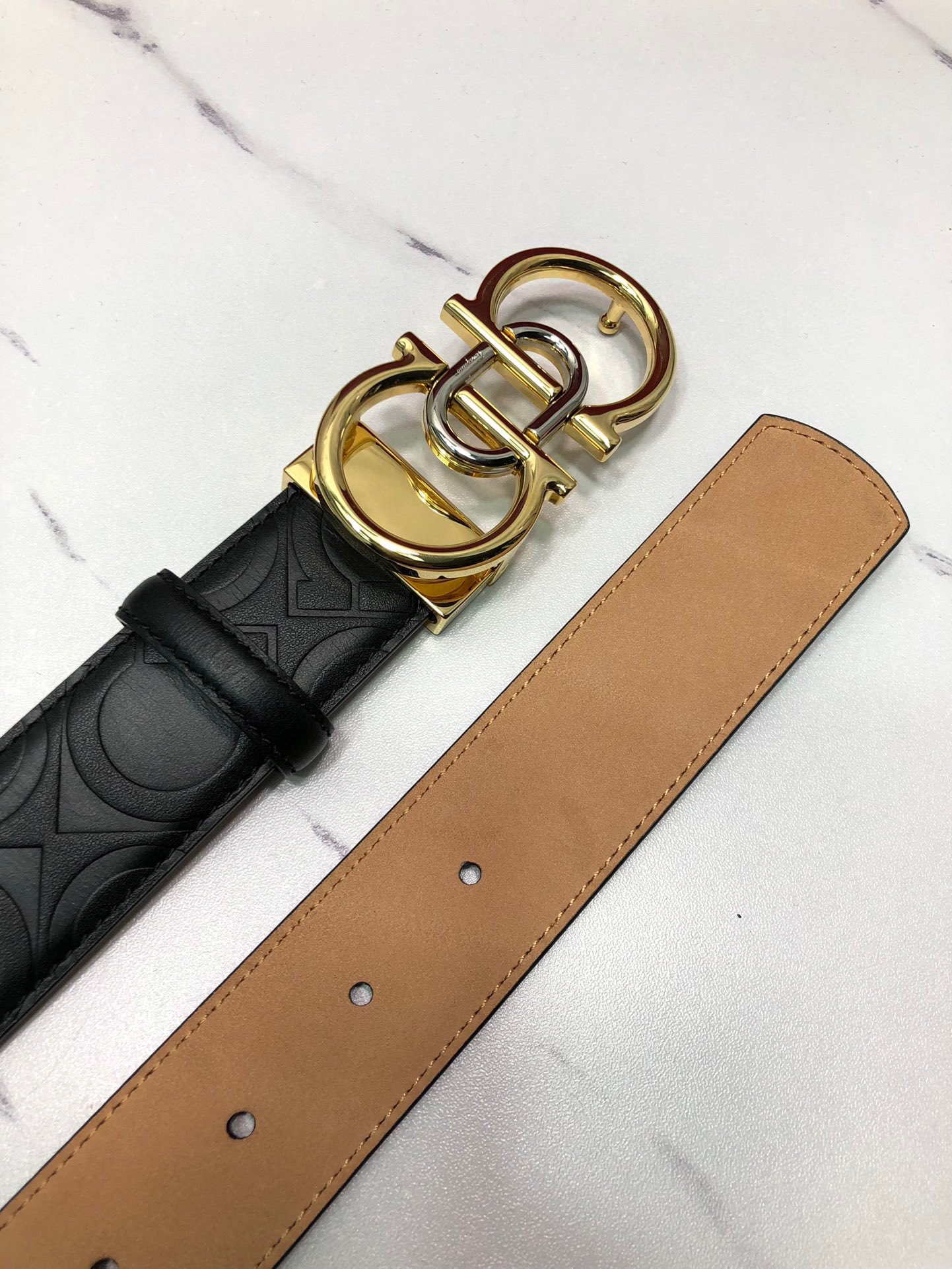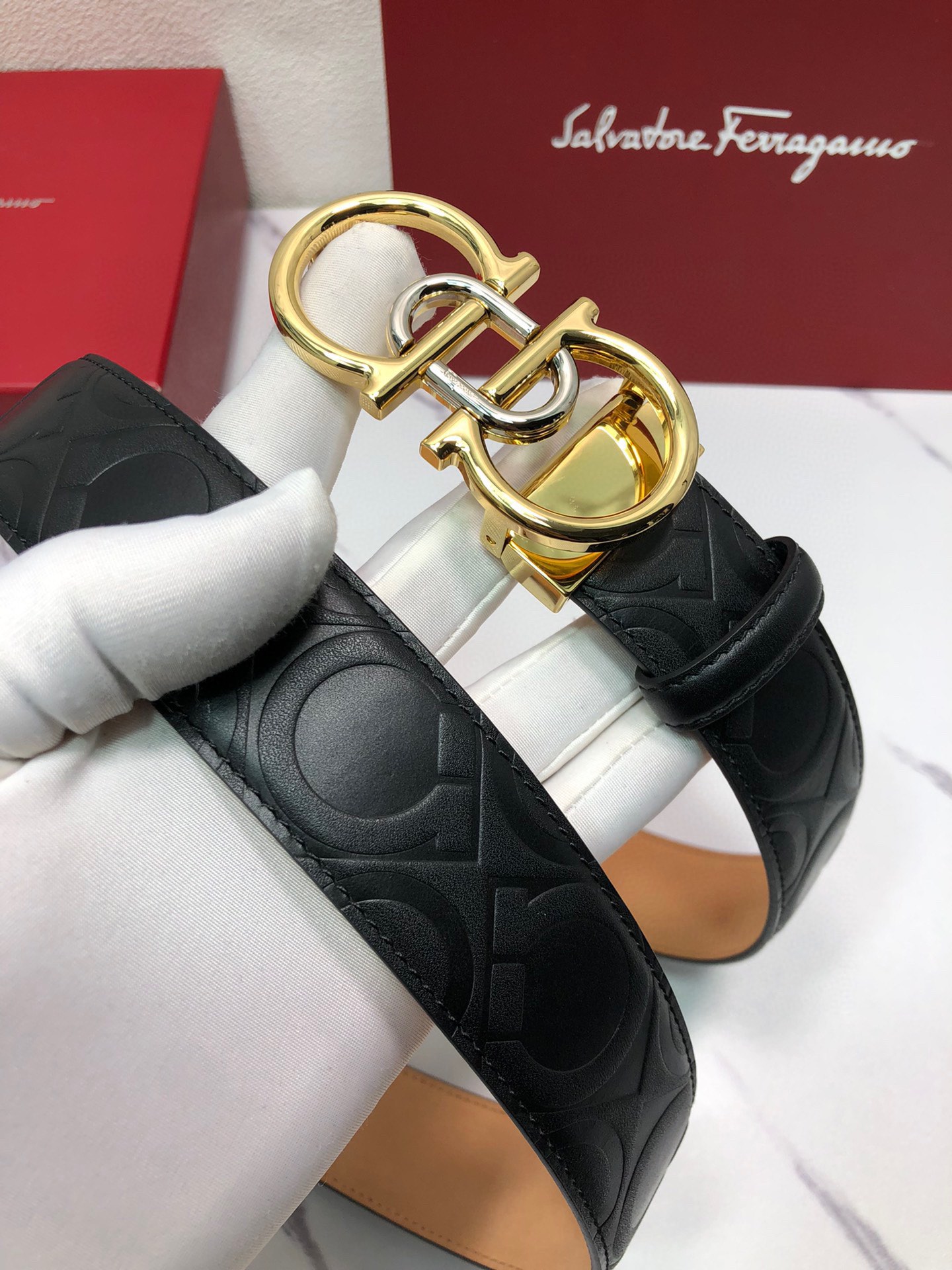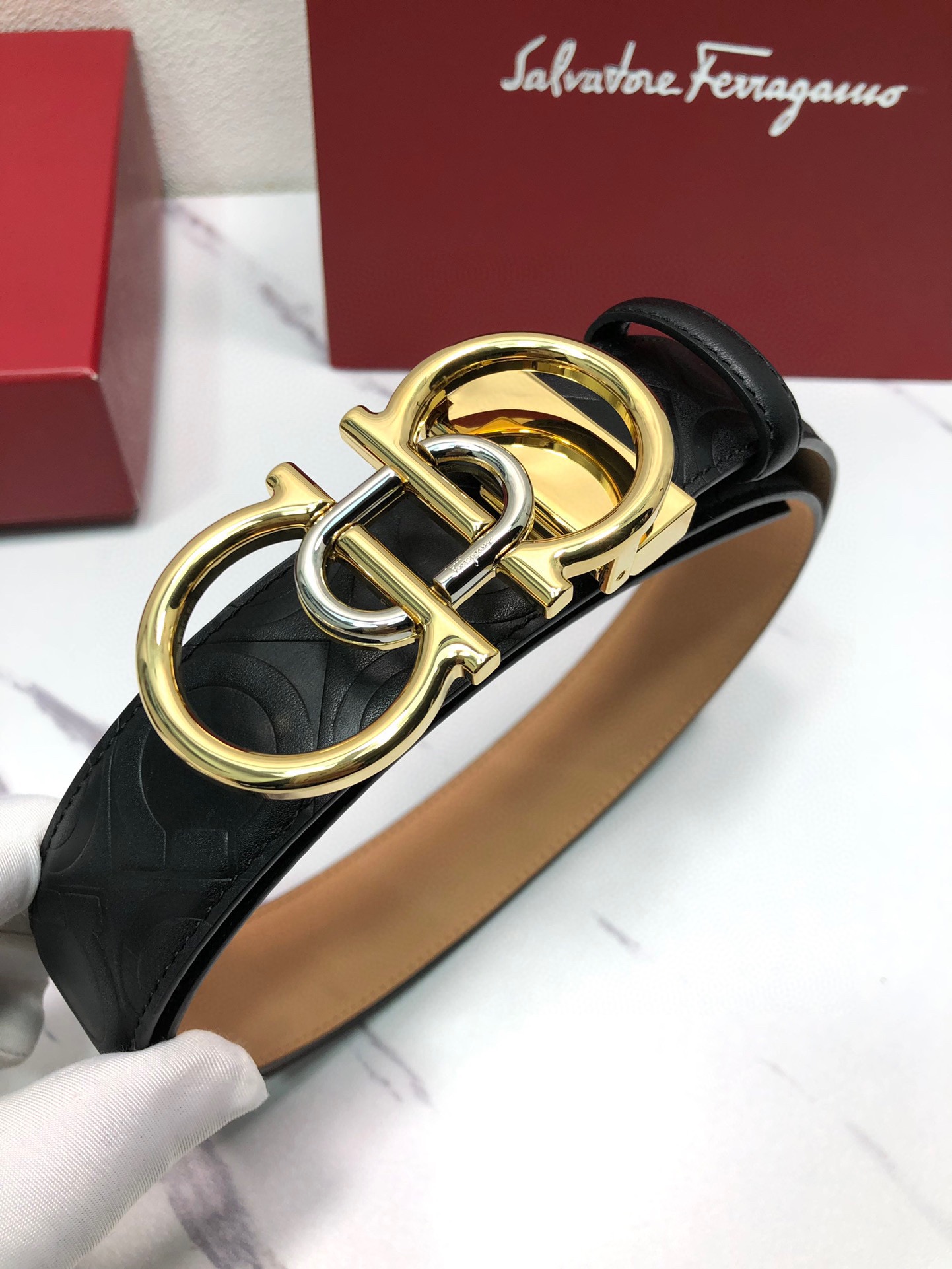 这款皮带是AAAAA 1:1 质量 (非常棒). 使用了和原版一模一样的材料. 商标部分也保持了和菲拉格慕/Salvatore Ferragamo一样. 图片拍摄是实物皮带拍摄, 您所收到的实物保证和我们图片一模一样.