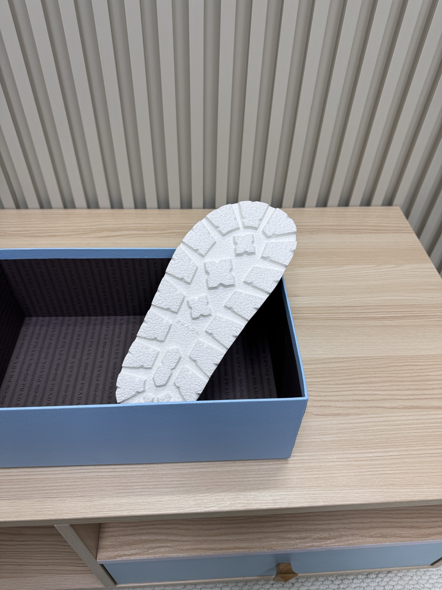 这款鞋子是AAAAA 1:1 质量 (非常棒). 使用了和原版一模一样的材料. 商标部分也保持了和普拉达/Prada一样. 图片拍摄是实物鞋子拍摄, 您所收到的实物保证和我们图片一模一样.